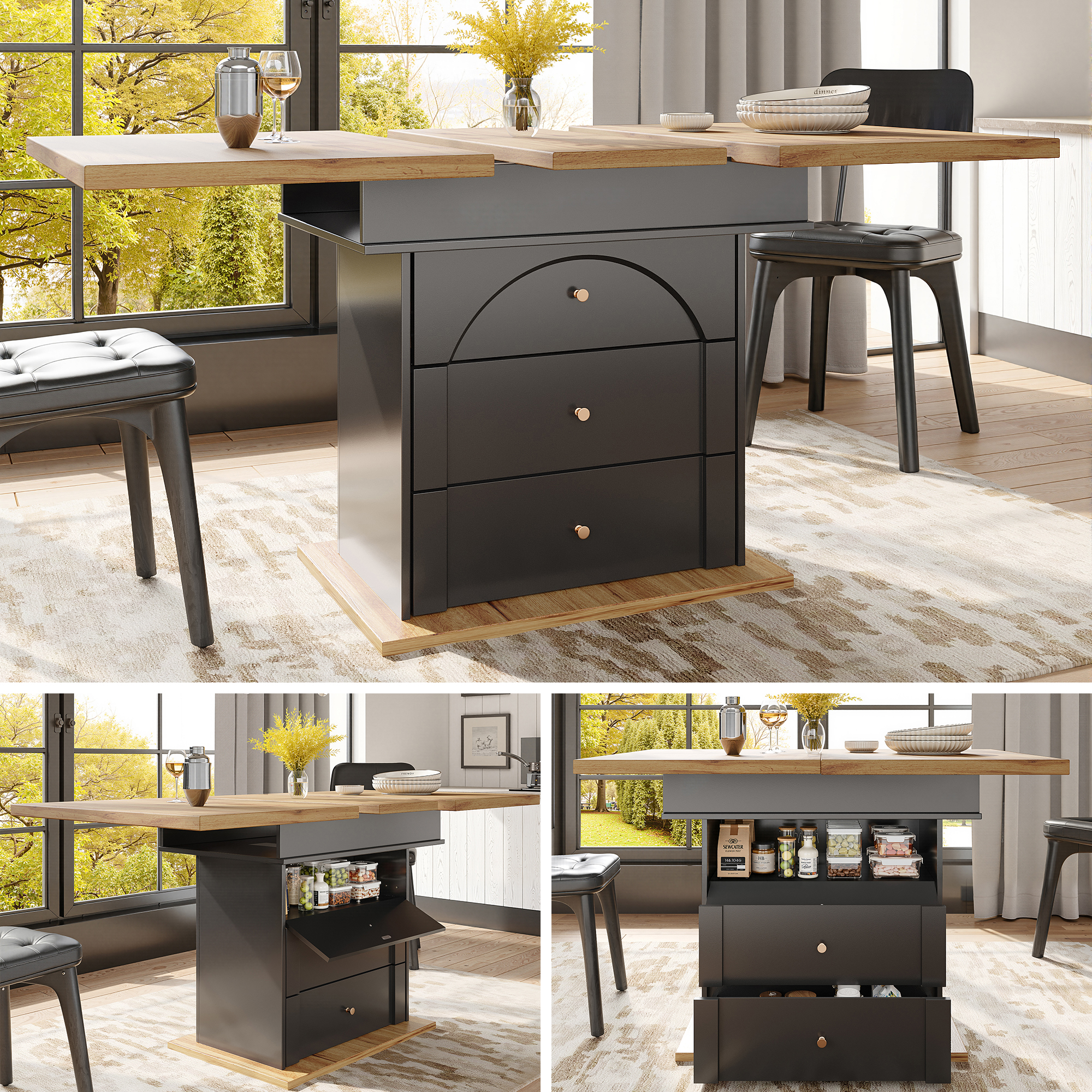 伸缩折叠餐桌可伸缩110-140cm 小户型家用折叠门饭桌 带隐藏式储物空间 节省空间厨房桌 咖啡桌工作桌 适用4-6人 黑色