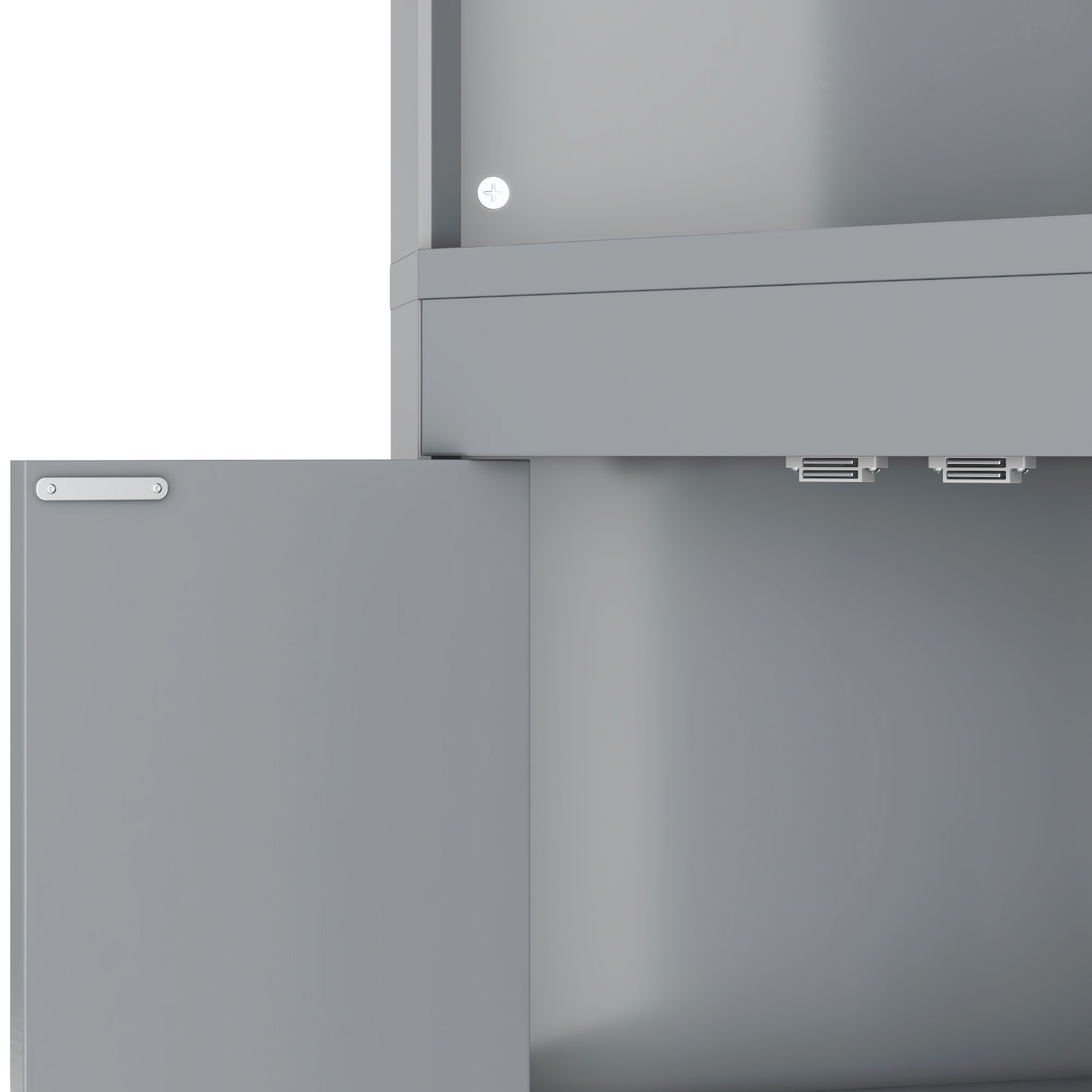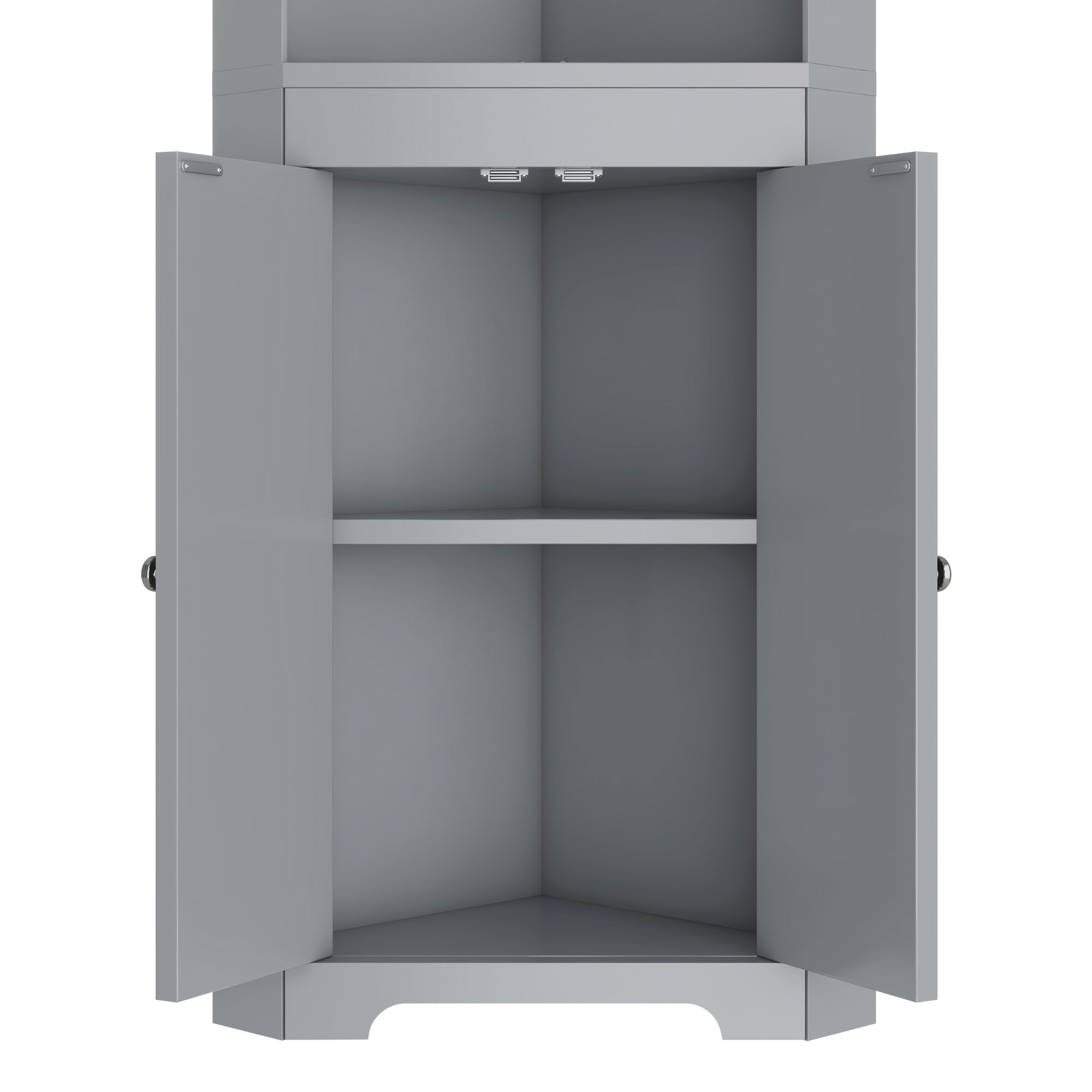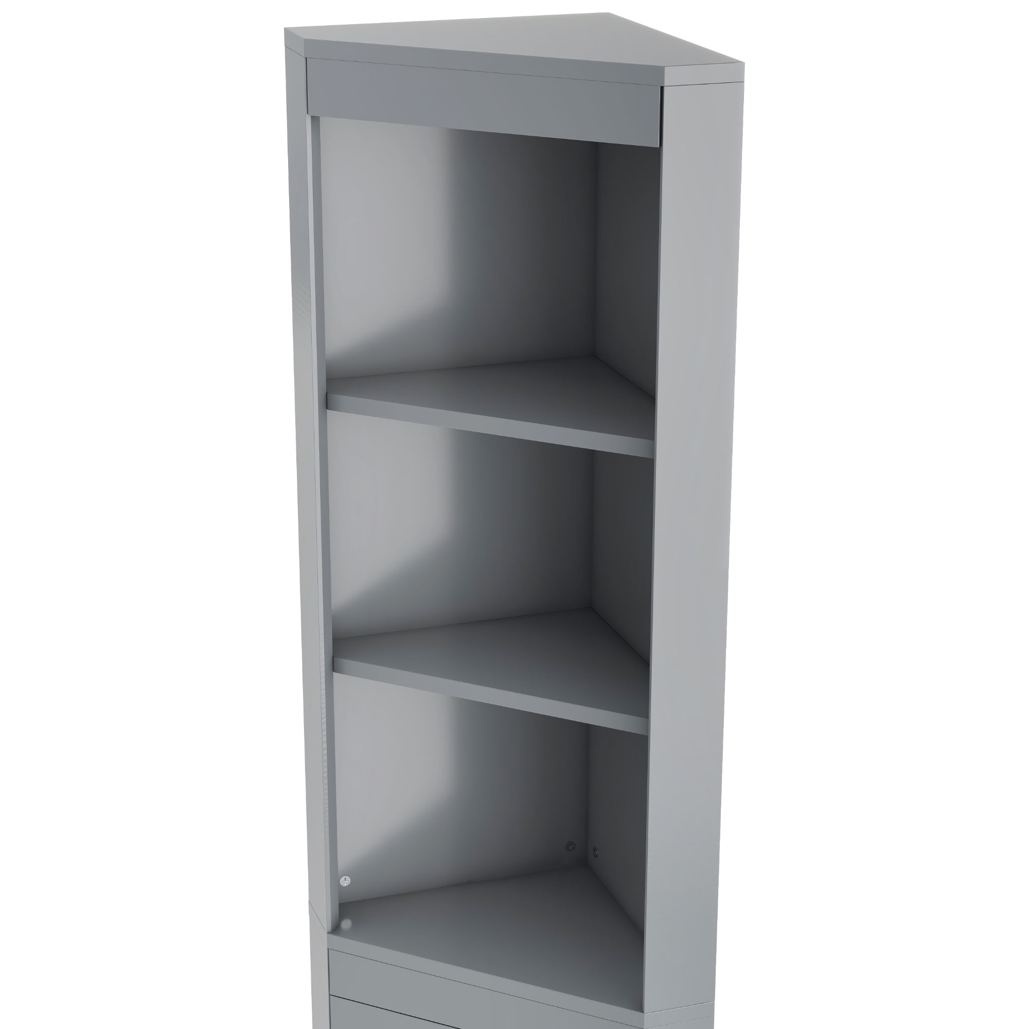 三角角落浴室高柜 灰色 带开放格防潮门 可调节层板 夹缝置物架 节省空间