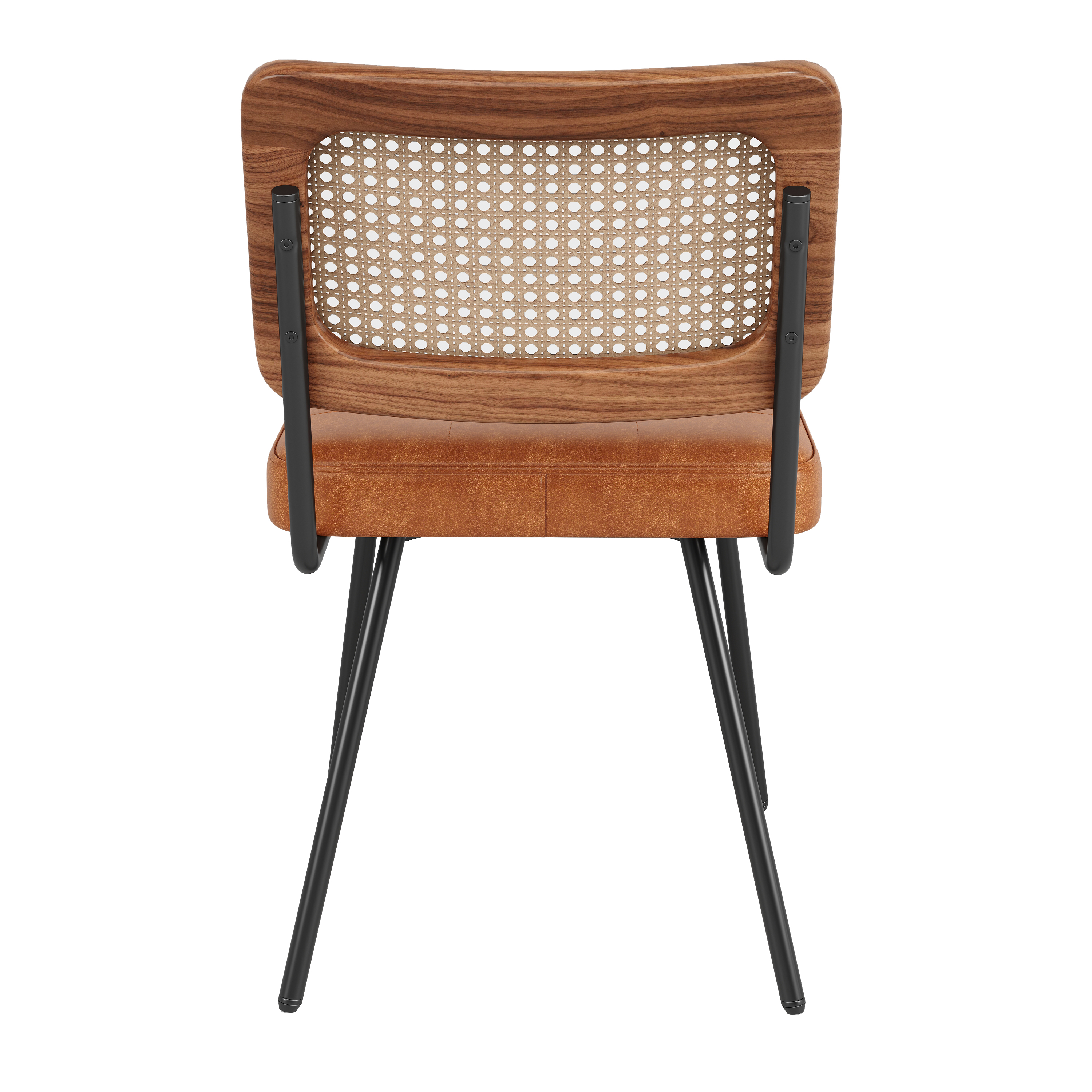 4把 餐椅 人造皮革加藤编椅背 人体工学书桌椅 可调节脚垫 软包坐垫 棕色
