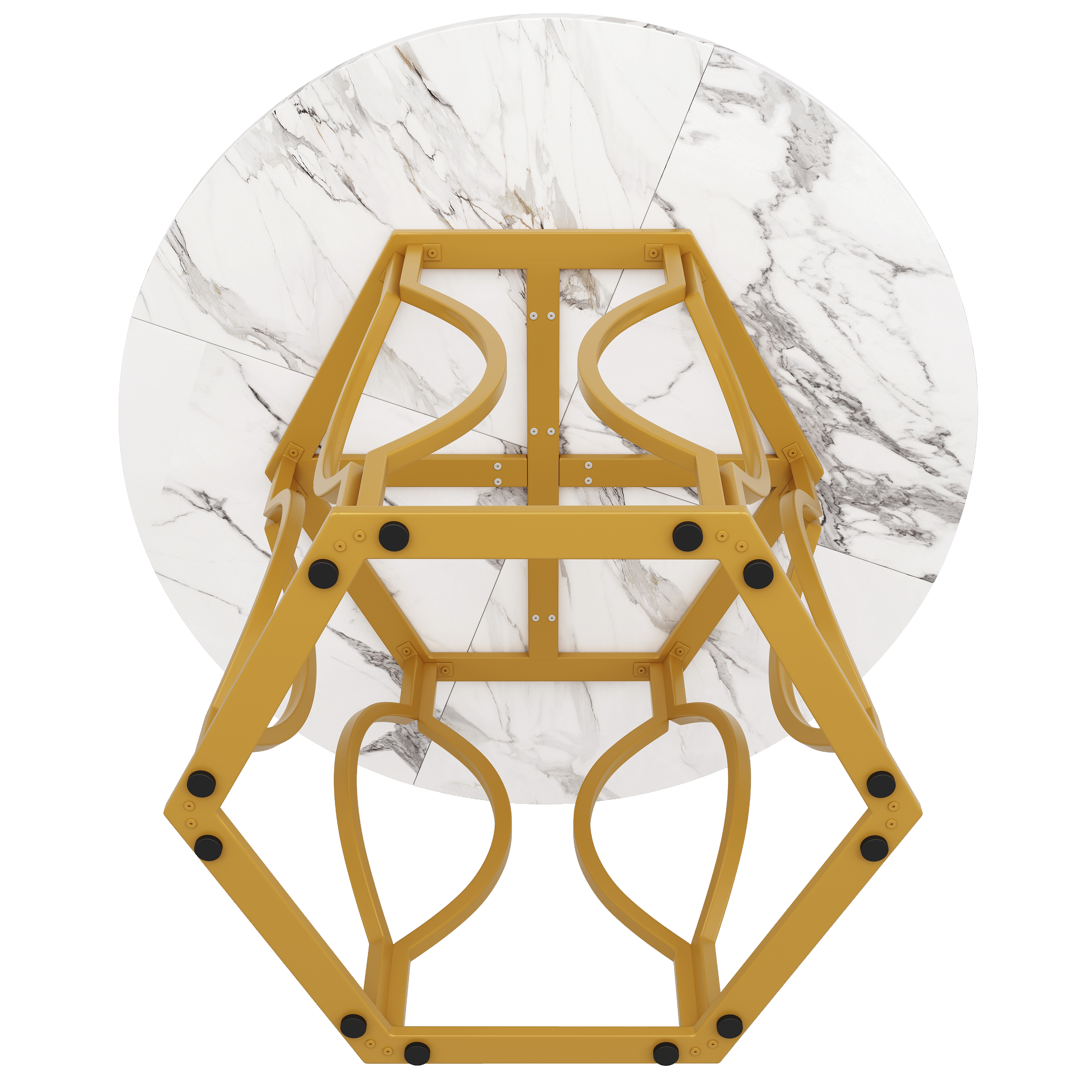 5件套轻奢餐桌组合:100cm圆形白色岩板餐桌+4把墨绿丝绒餐椅,金色金属脚架,现代简约小户型餐厅家具