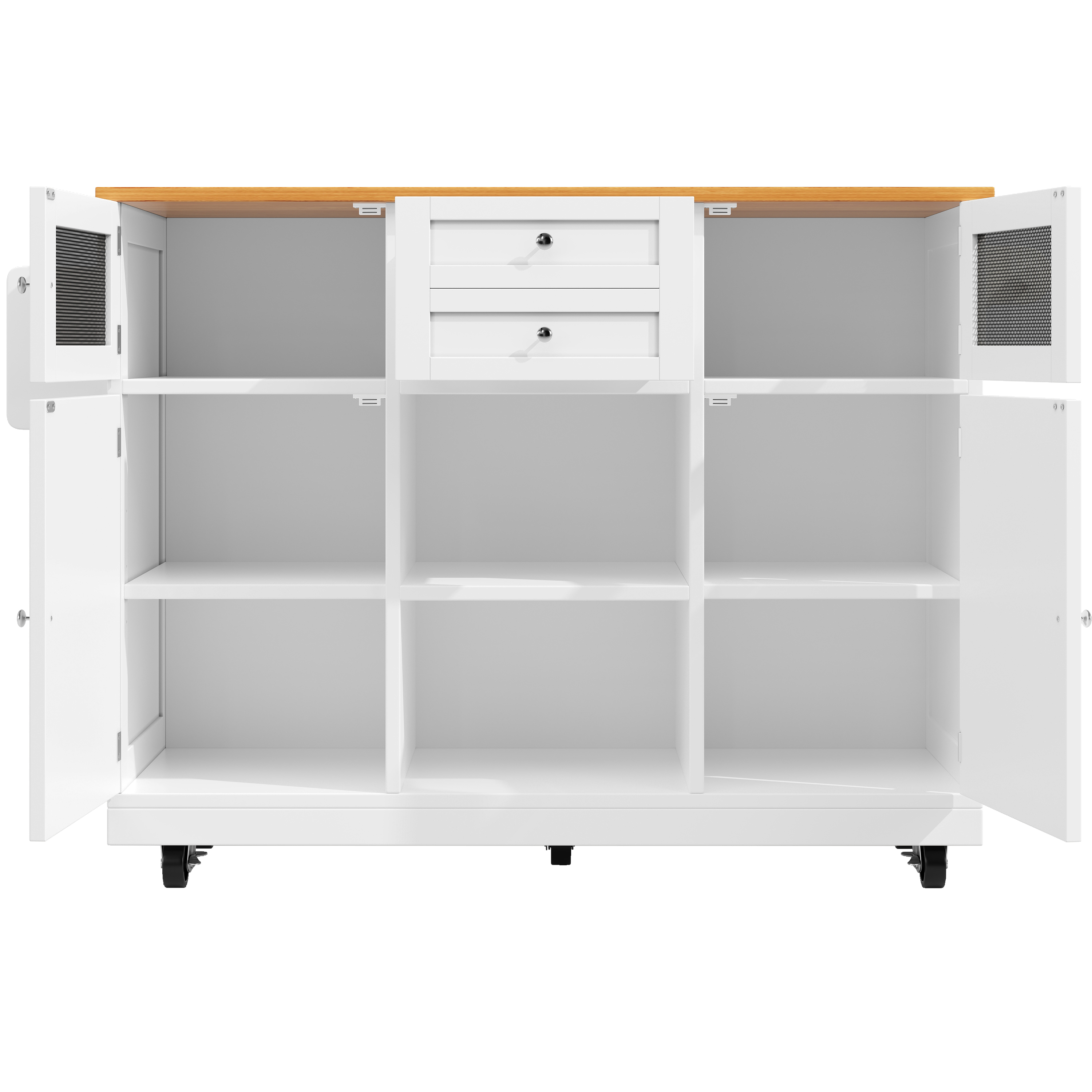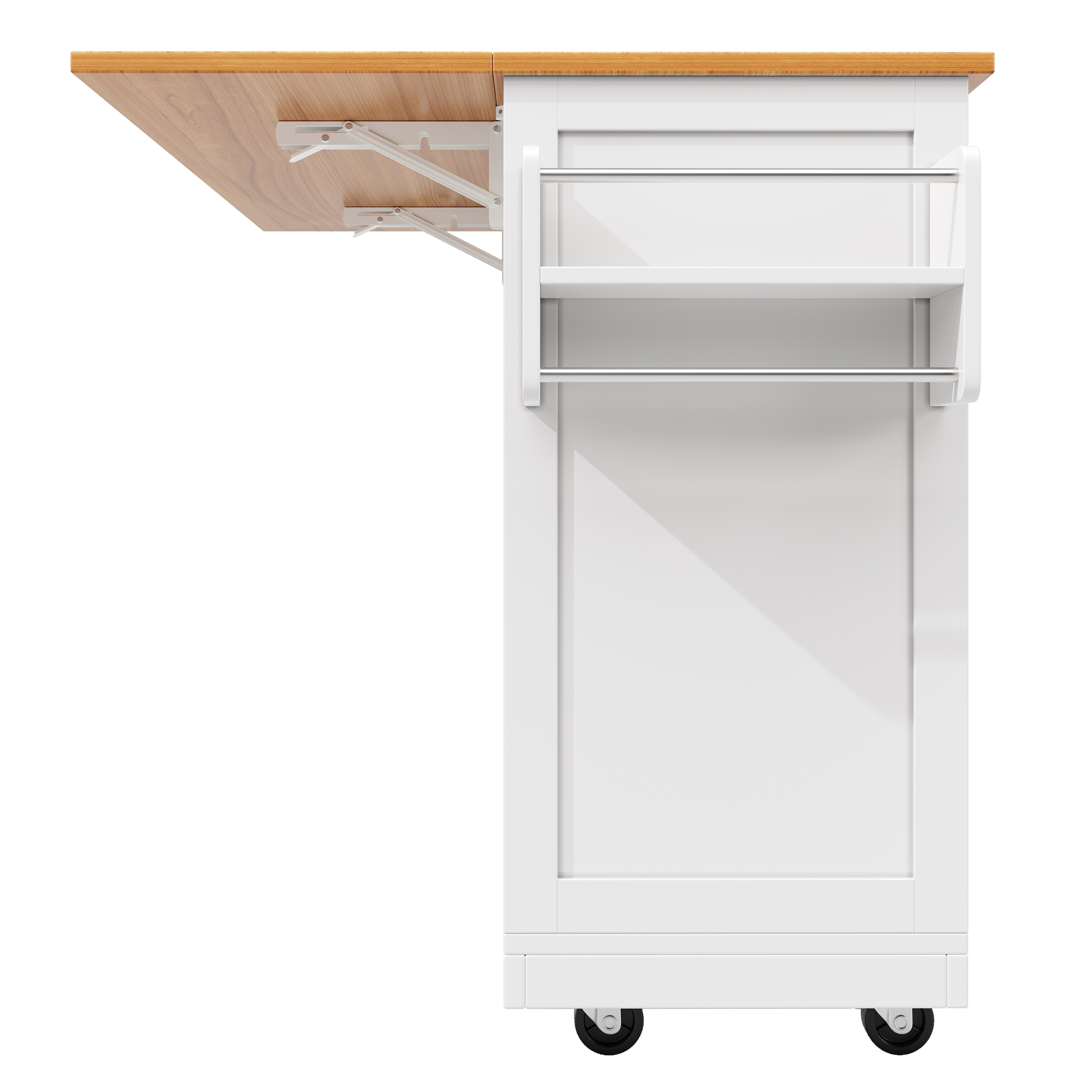 伸缩折叠厨房岛台 可扩展餐桌 带3D立体门餐边柜 移动酒吧柜 白色岩板纹 带锁万向轮 毛巾架 140x40(70)x93.5cm