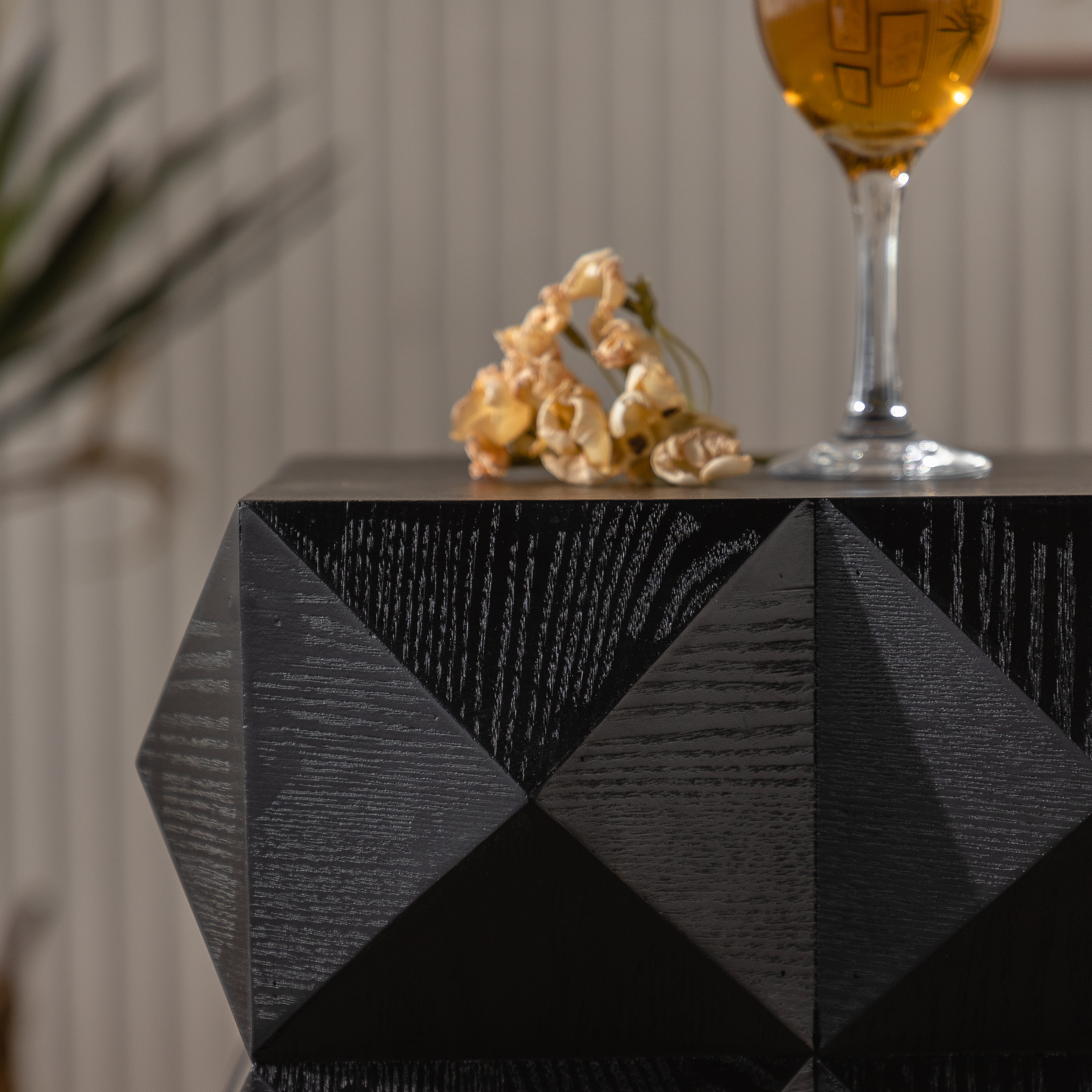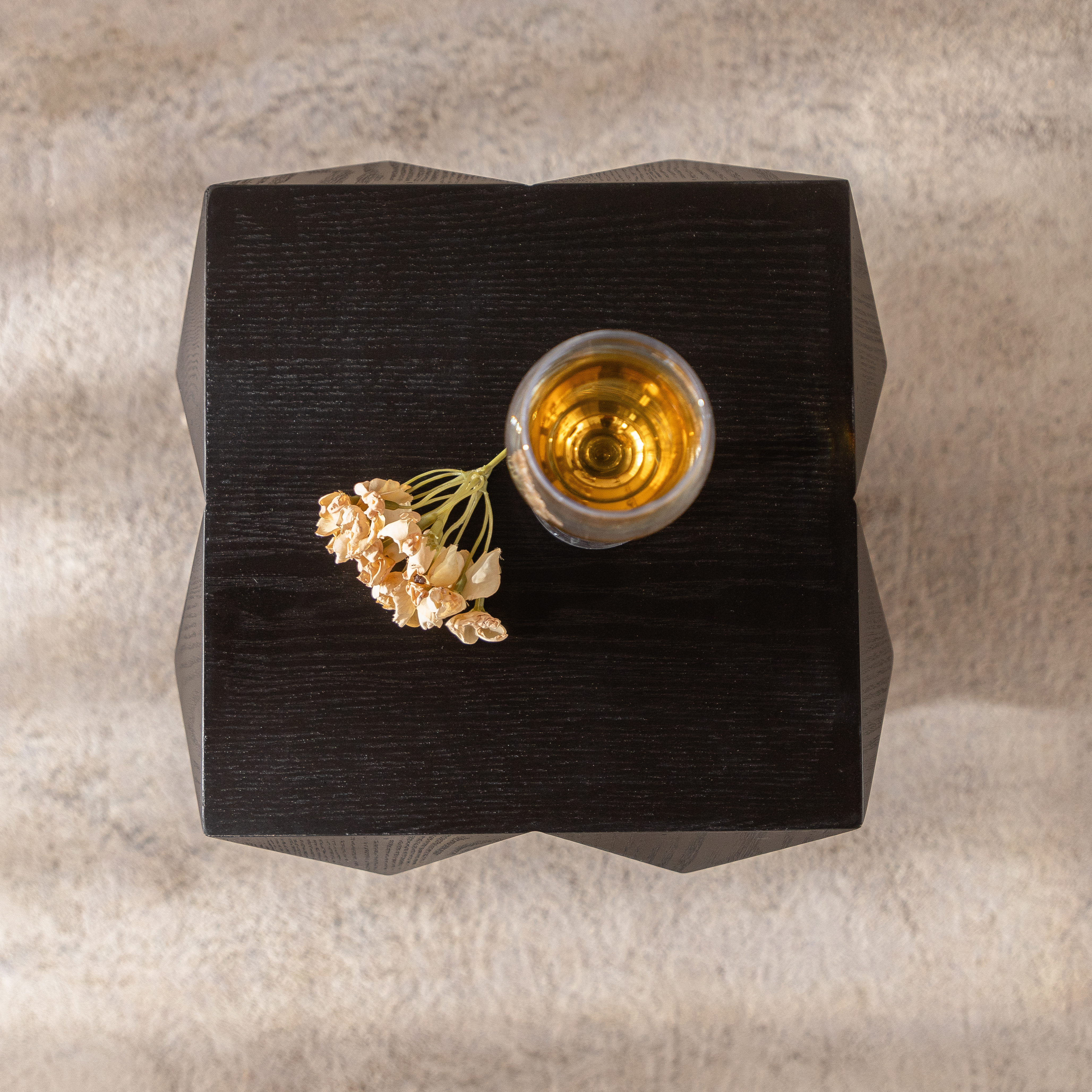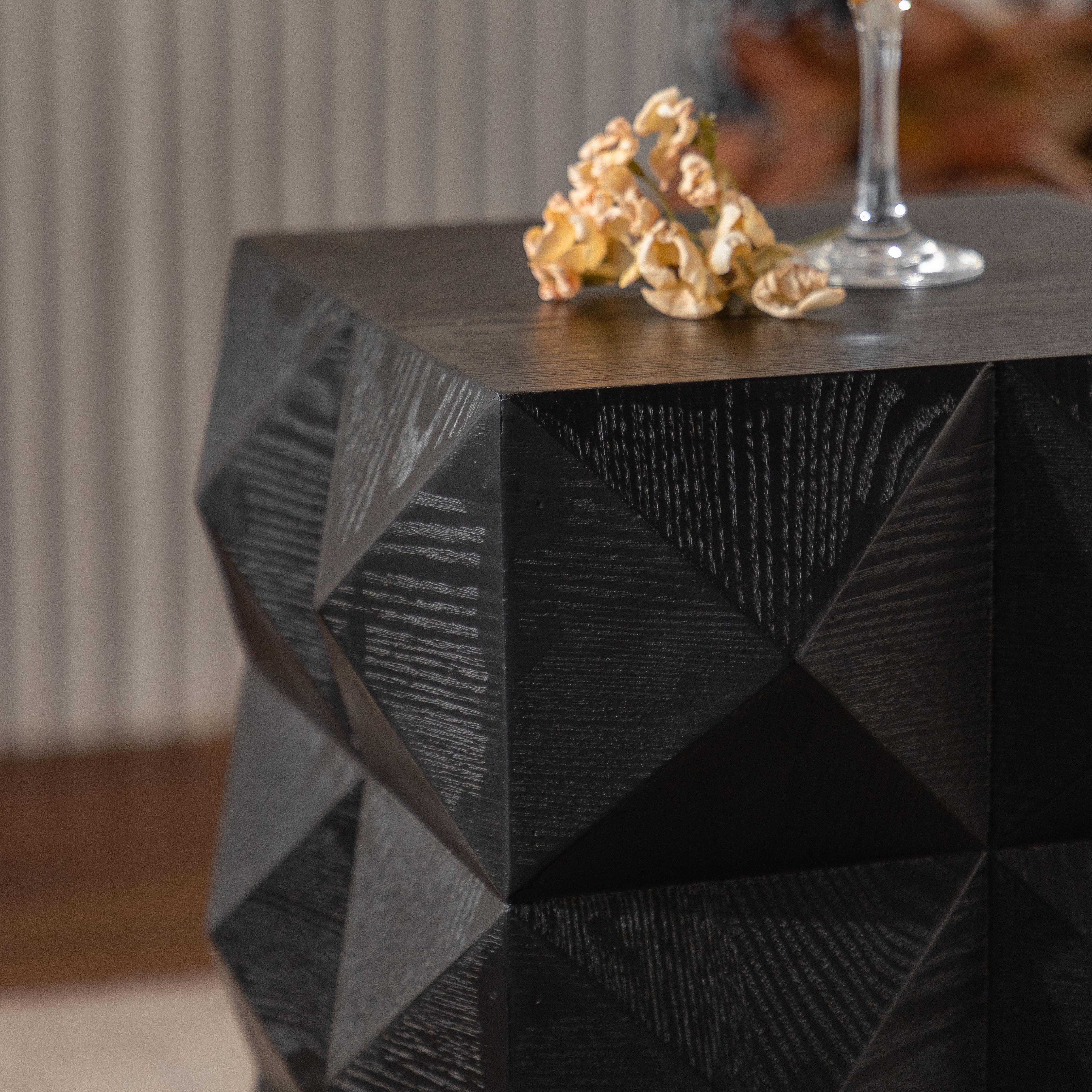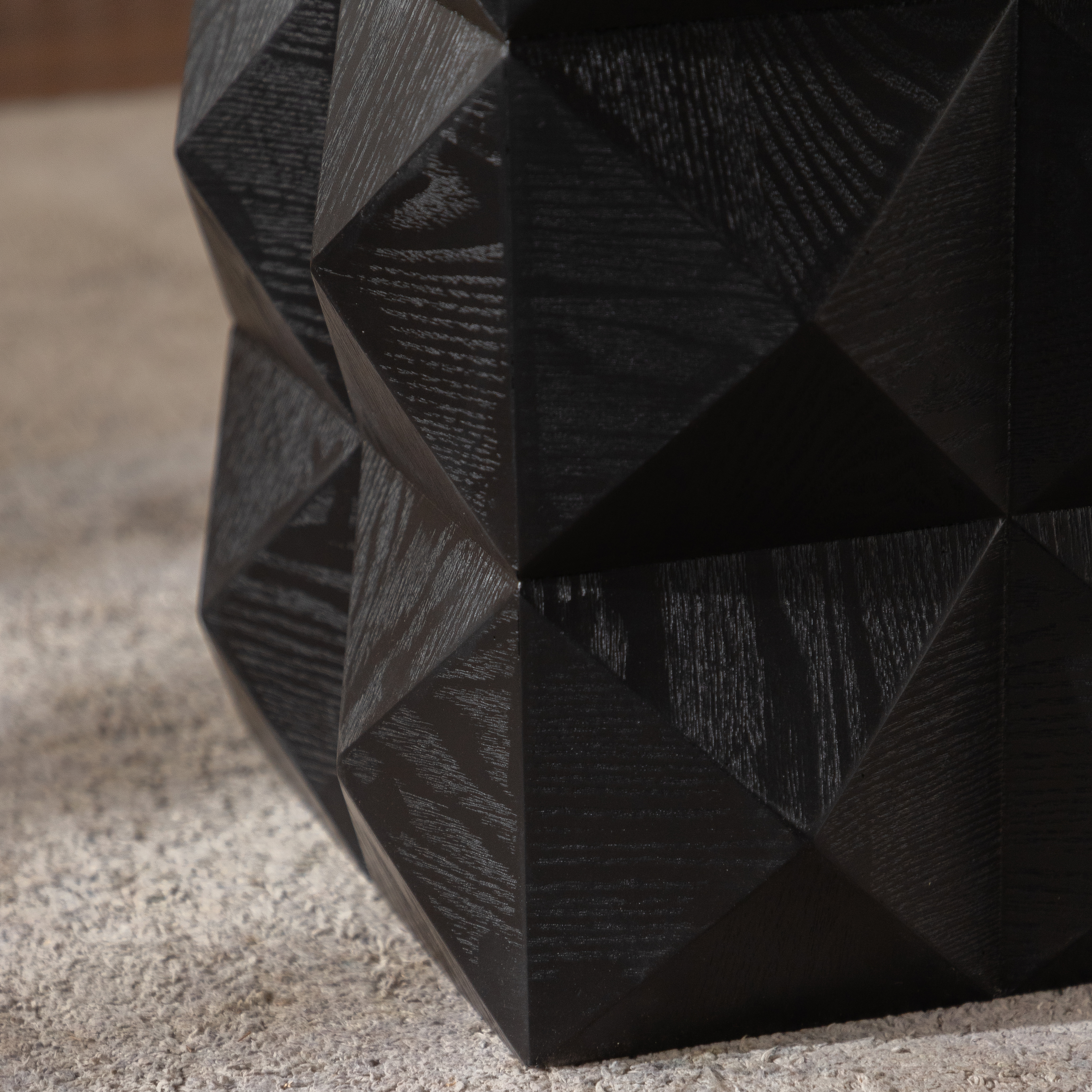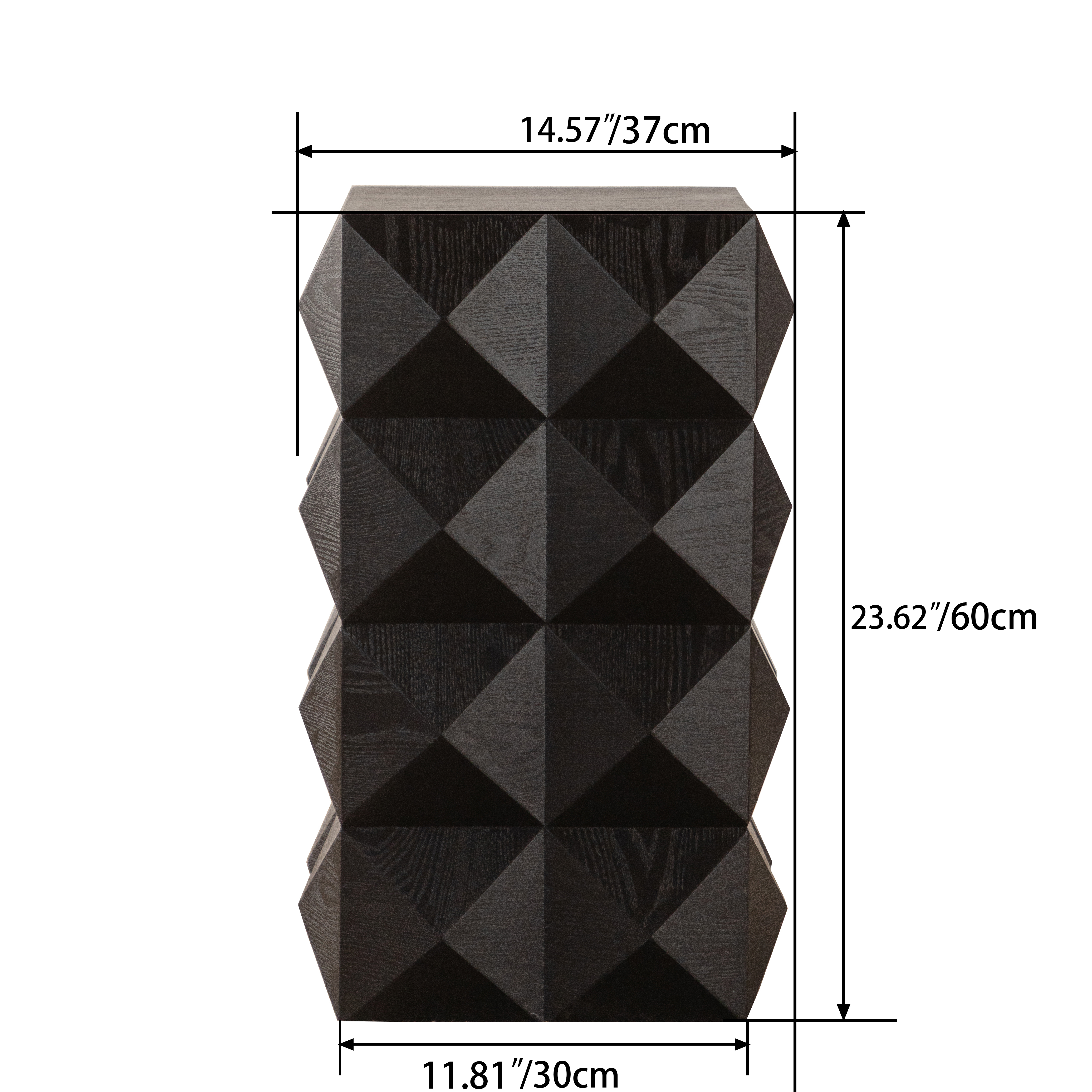 60厘米复古实木边桌 免安装即用 立体浮雕设计床头柜 客厅卧室小型茶几 承重220磅(黑色)