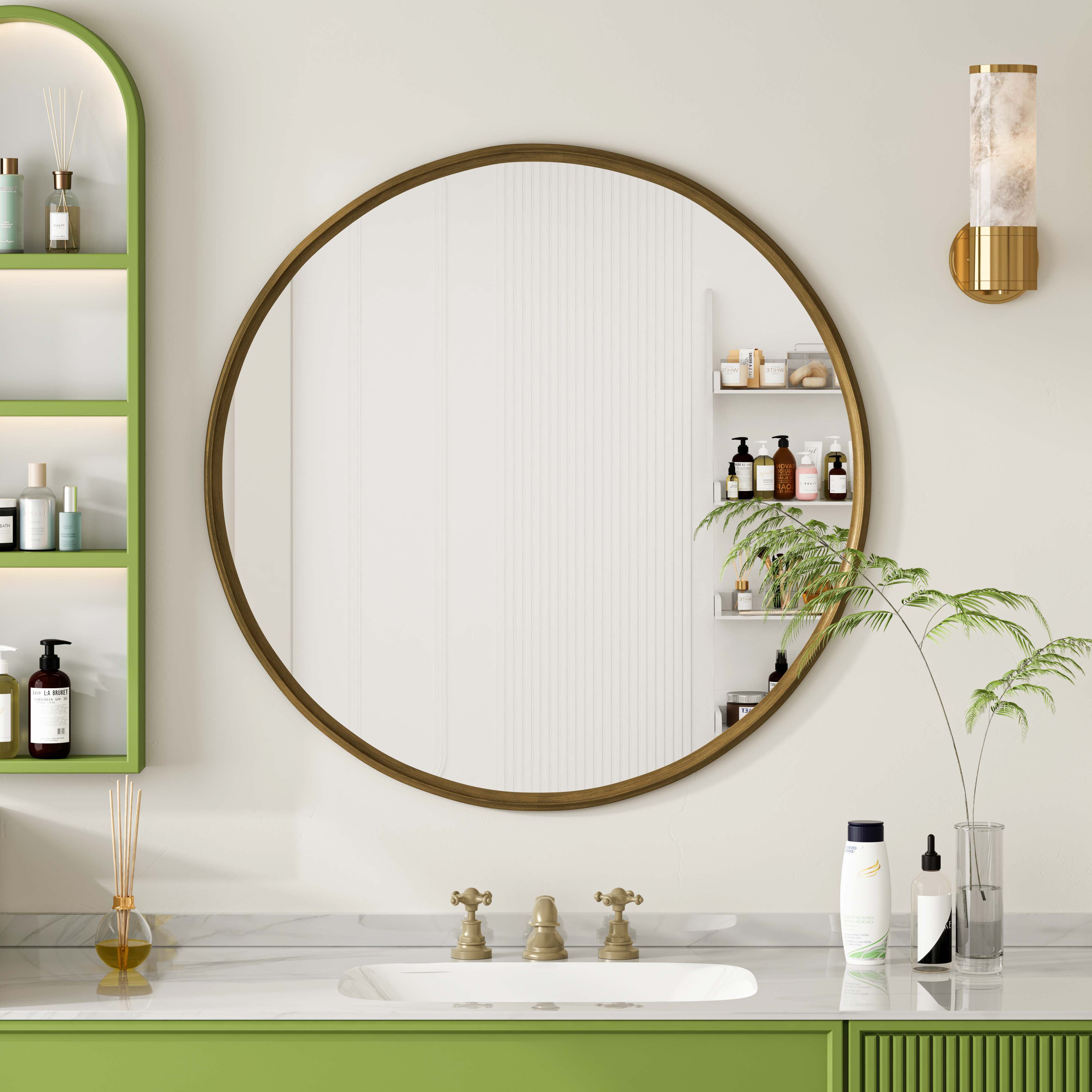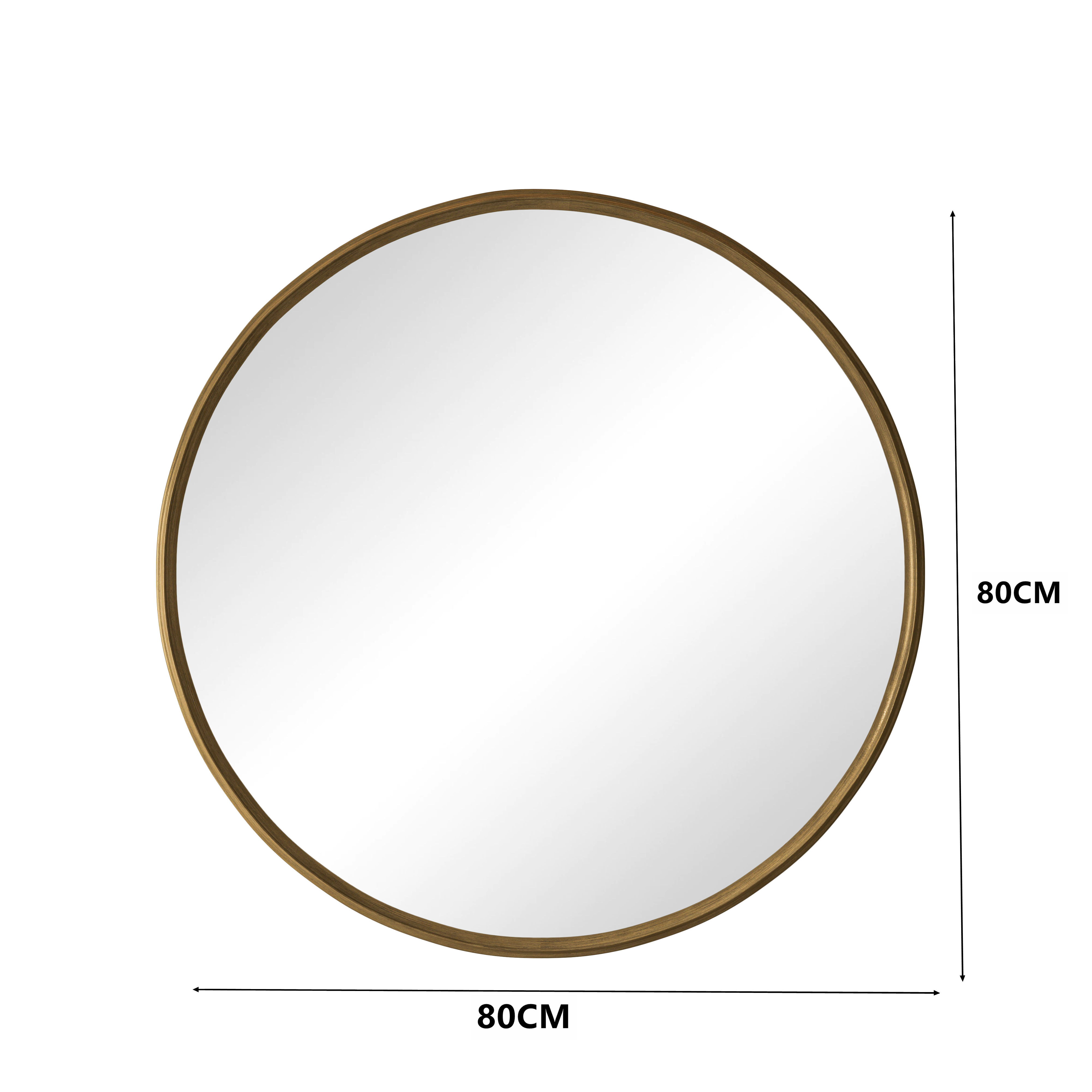80厘米圆形青铜色壁挂镜 免打孔可立式挂墙 浴室客厅玄关装饰镜 金属边框防爆镜