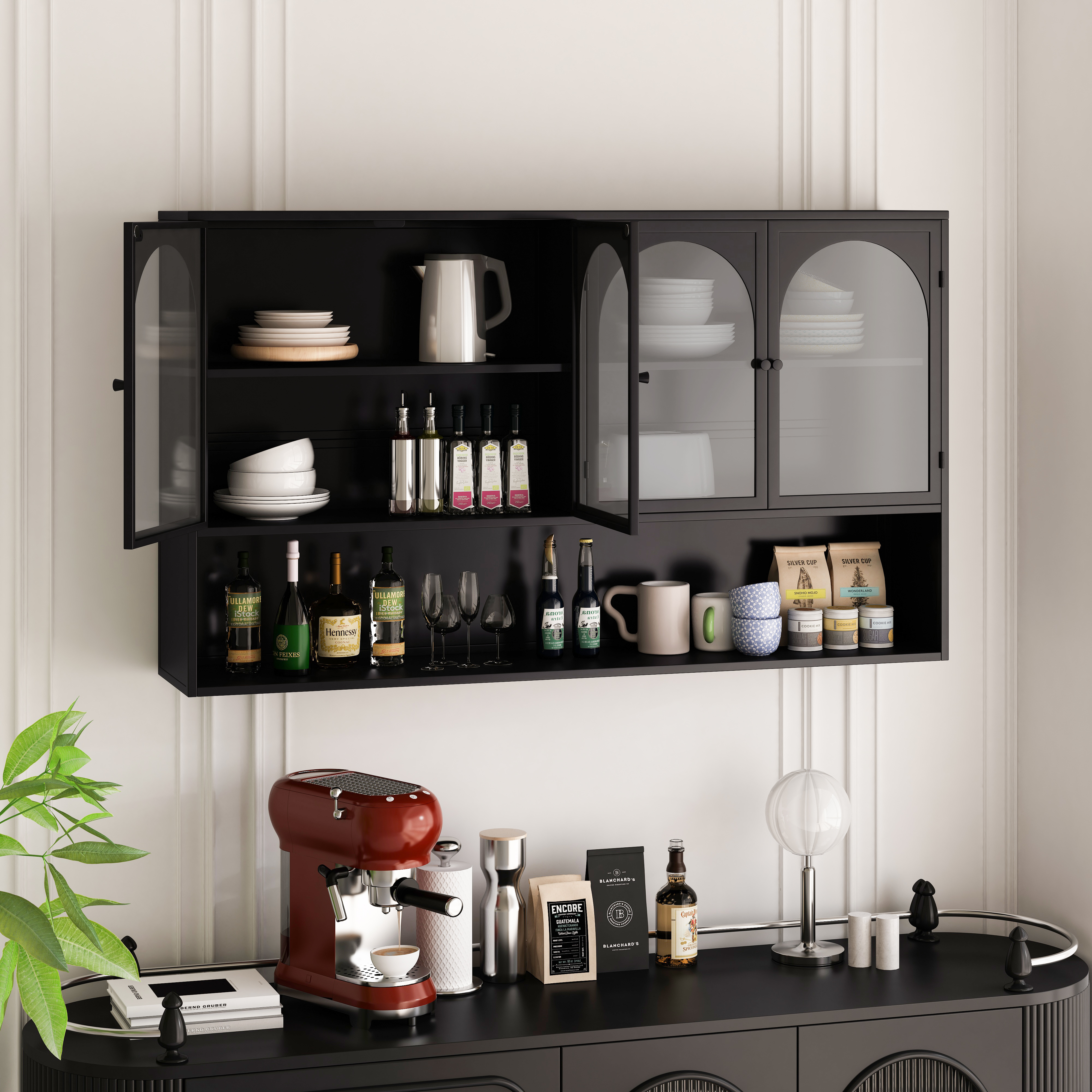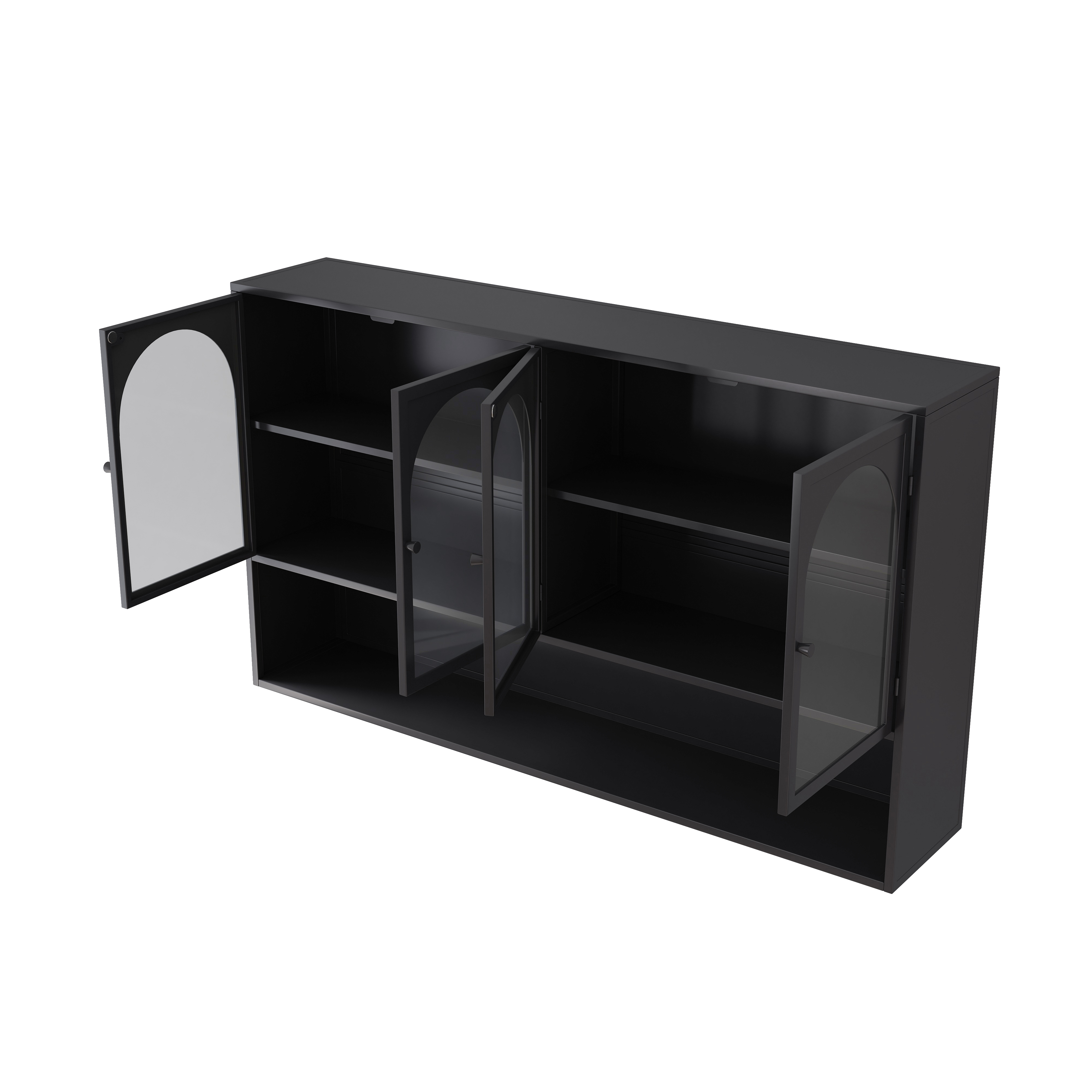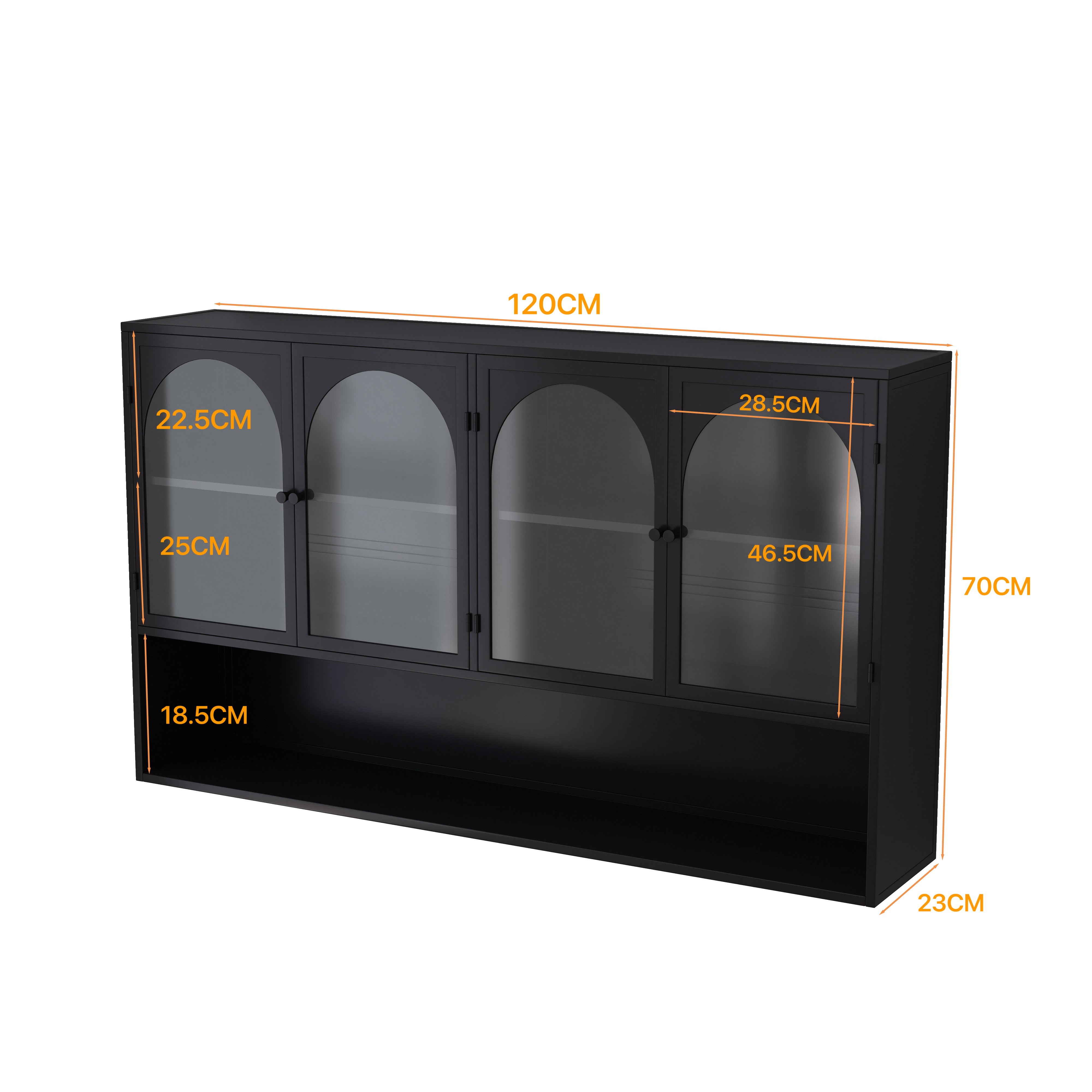 120厘米四门工业风玻璃壁挂柜 带层板强承重橱柜 厨房浴室客厅储物柜(黑色)