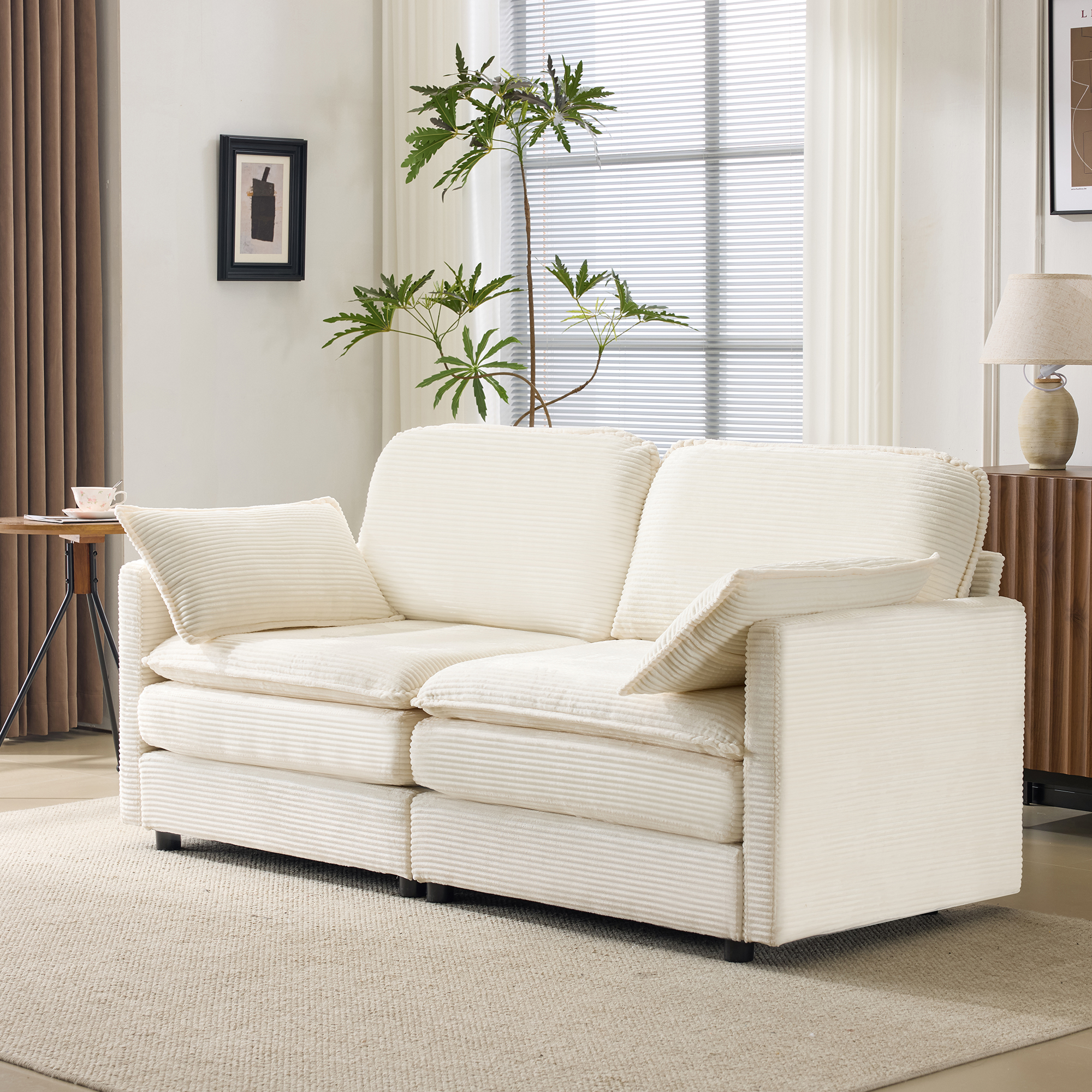 现代简约双人小沙发北欧风 | 公寓小户型客厅卧室两用懒人沙发 | 灯芯绒面料舒适软包单人椅 | 白色 可定制