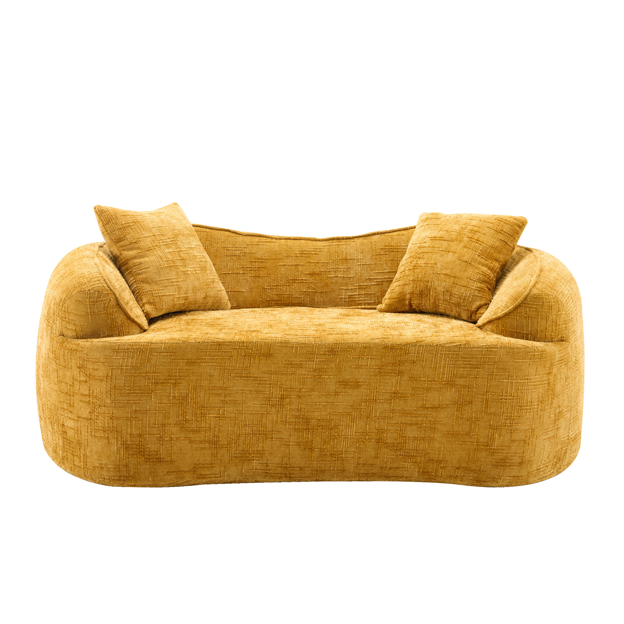 弧形双人小沙发奶油黄 | 免安装可压缩包裹整装入户 | 高回弹海绵弹簧底座客厅卧室两用懒人沙发 | 奶油黄色