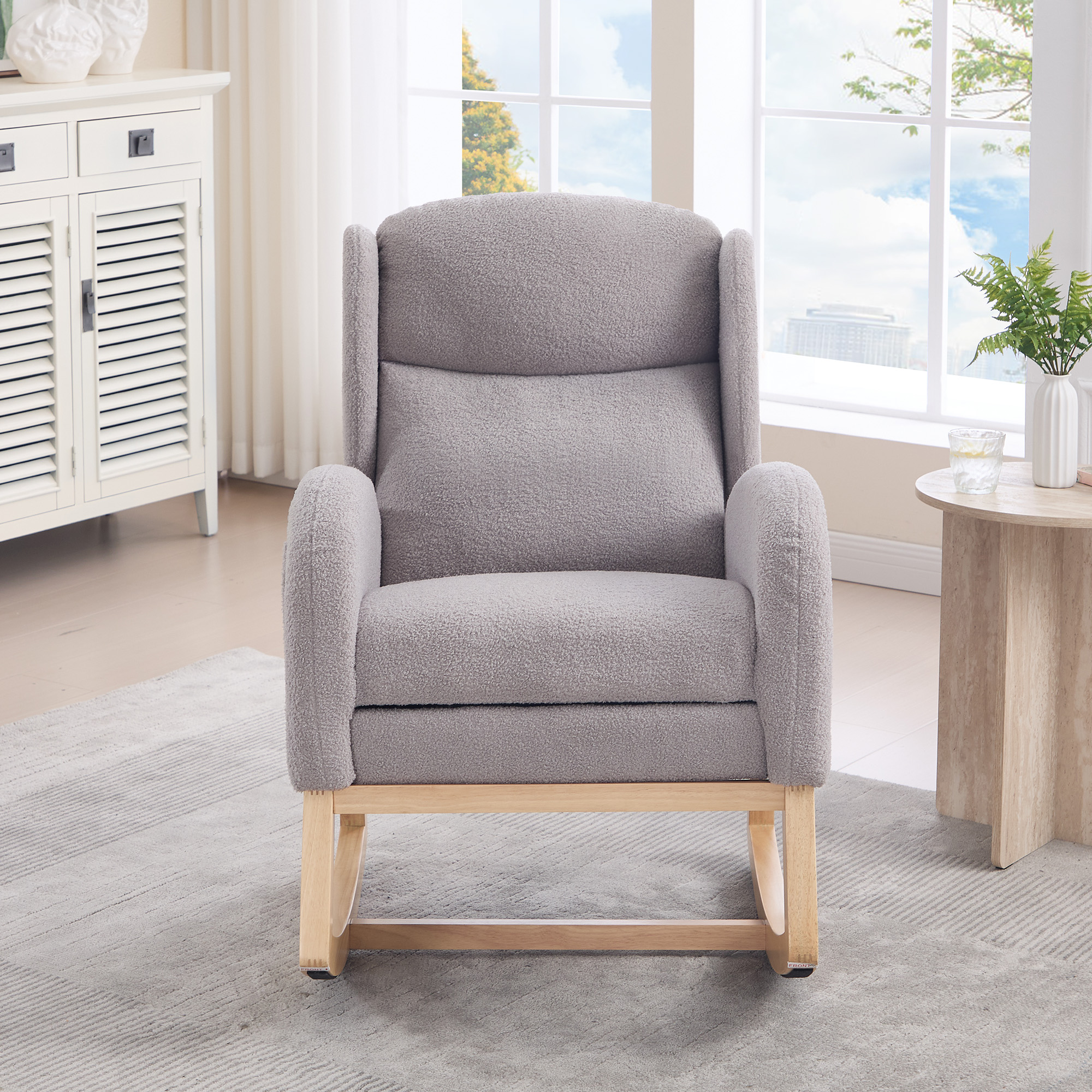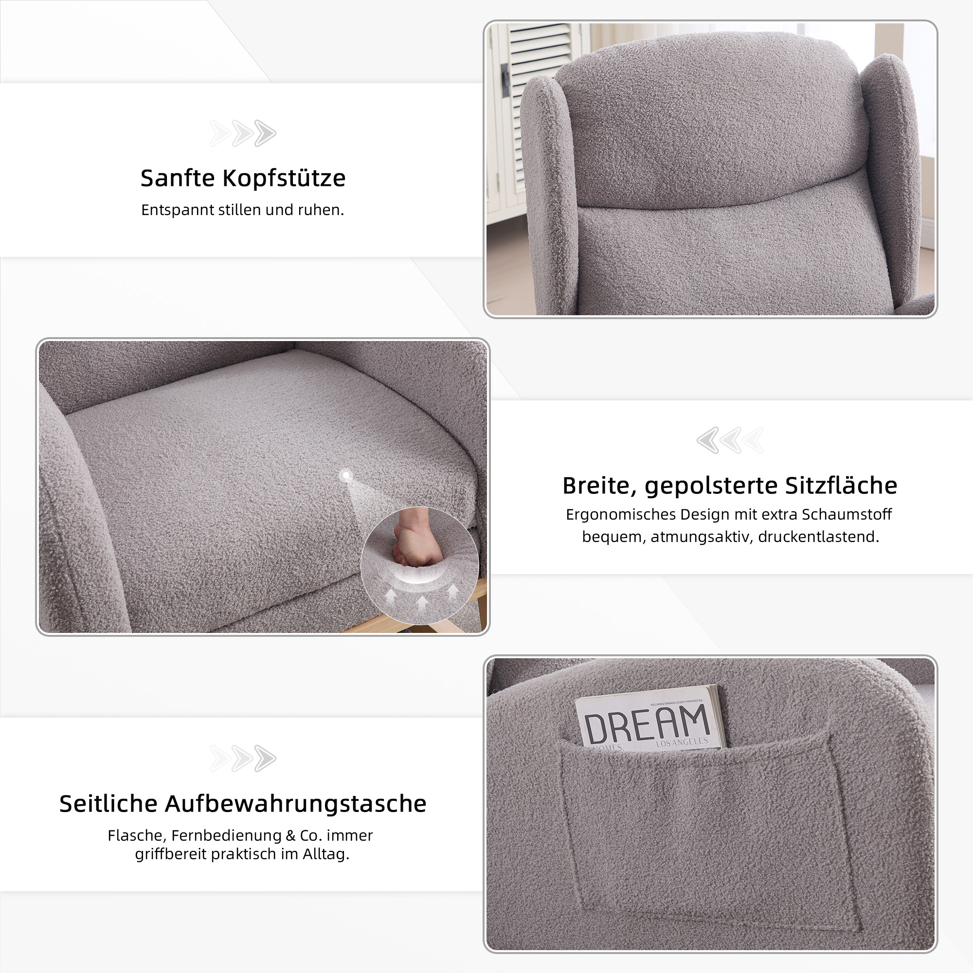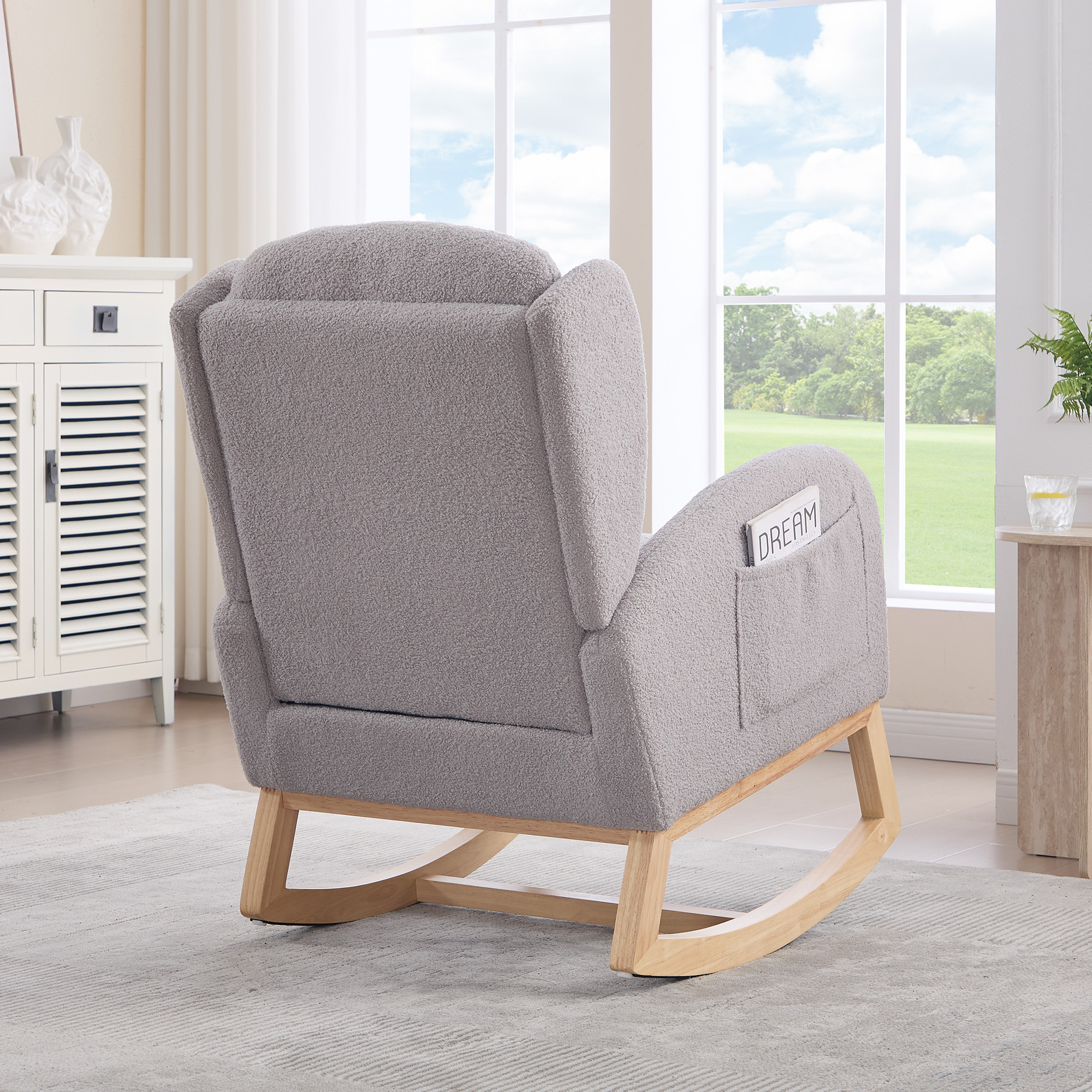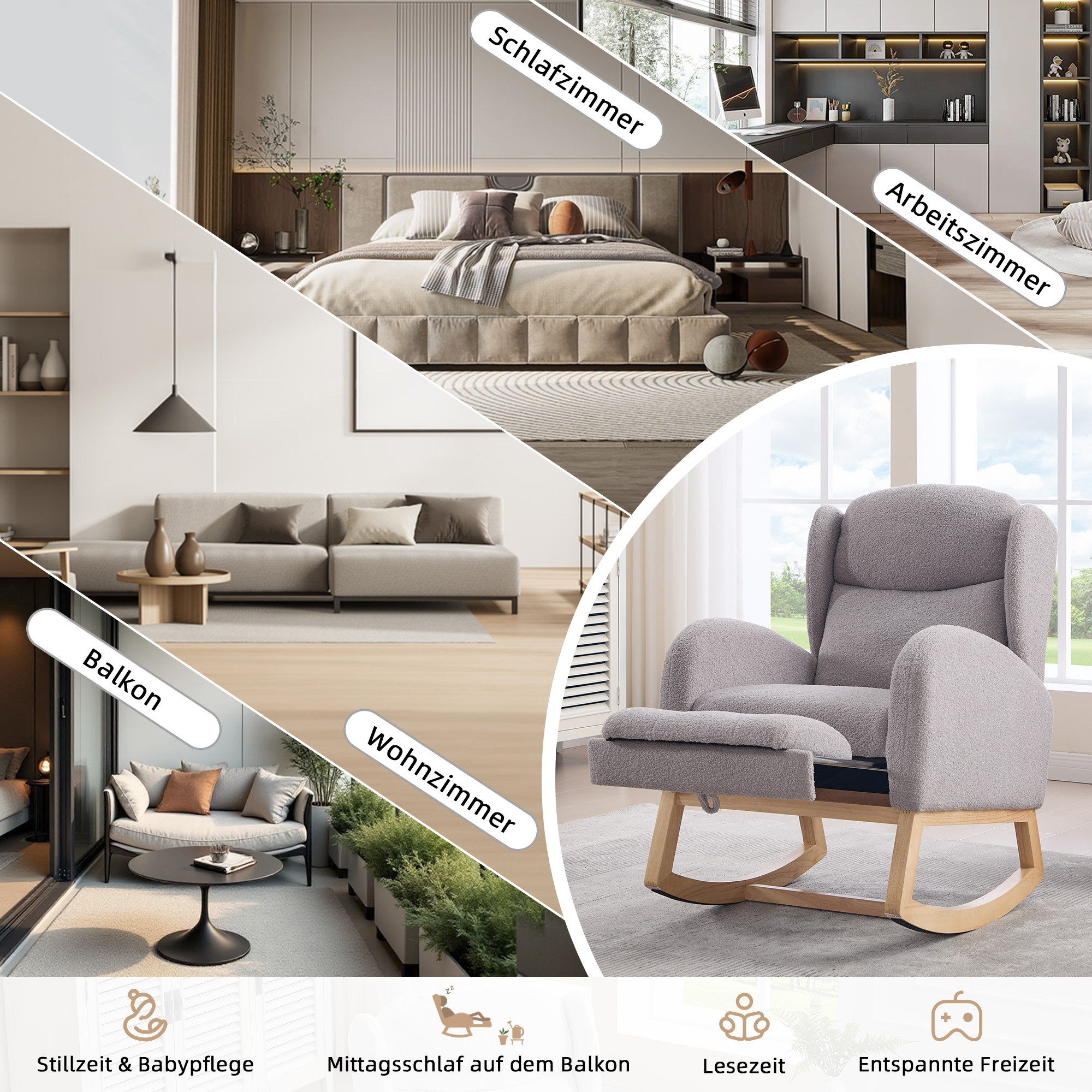 摇椅哺乳椅一体带脚踏凳 | 免安装泰迪绒可躺休闲懒人椅子 | 卧室客厅阳台单人沙发躺椅 带储物袋 | 灰色