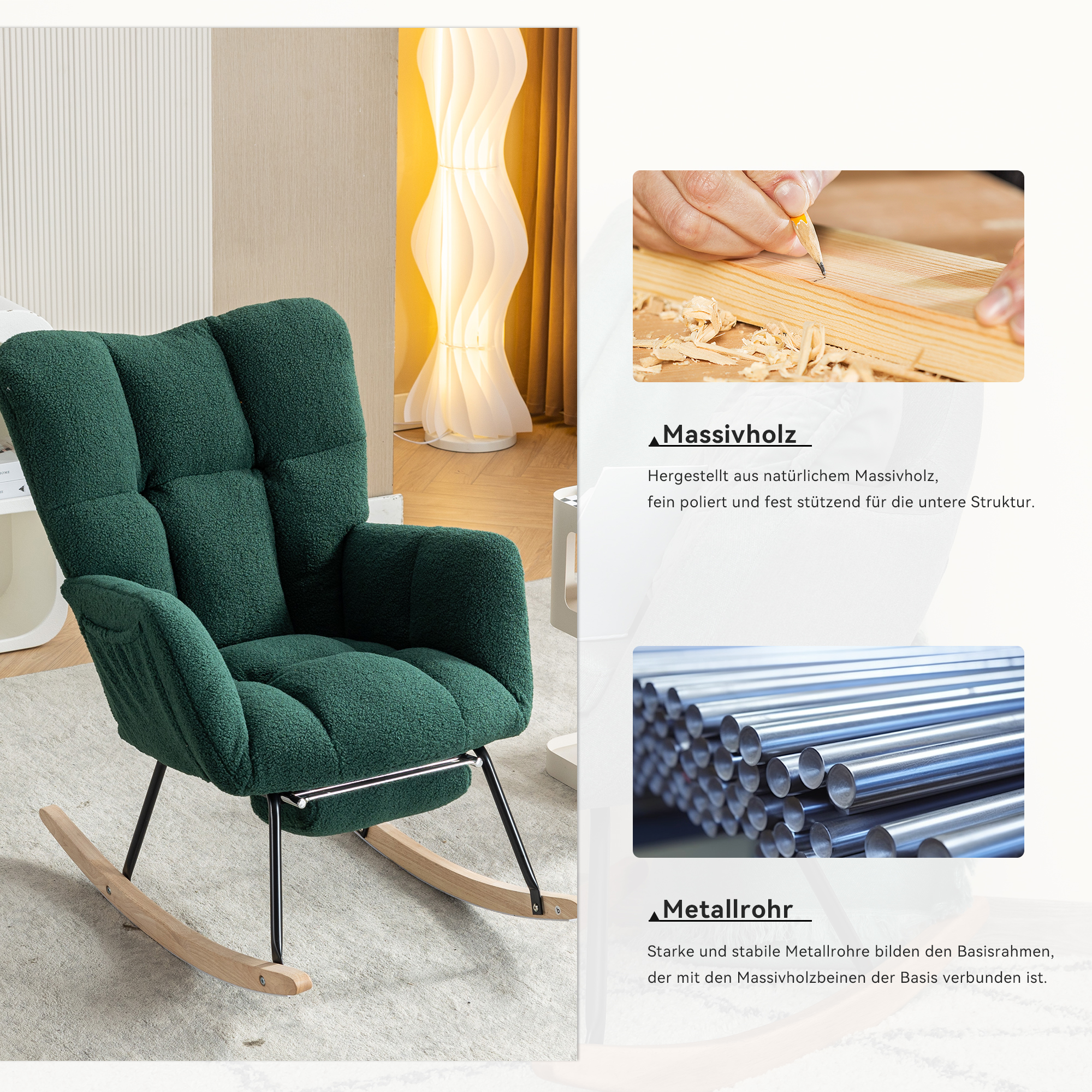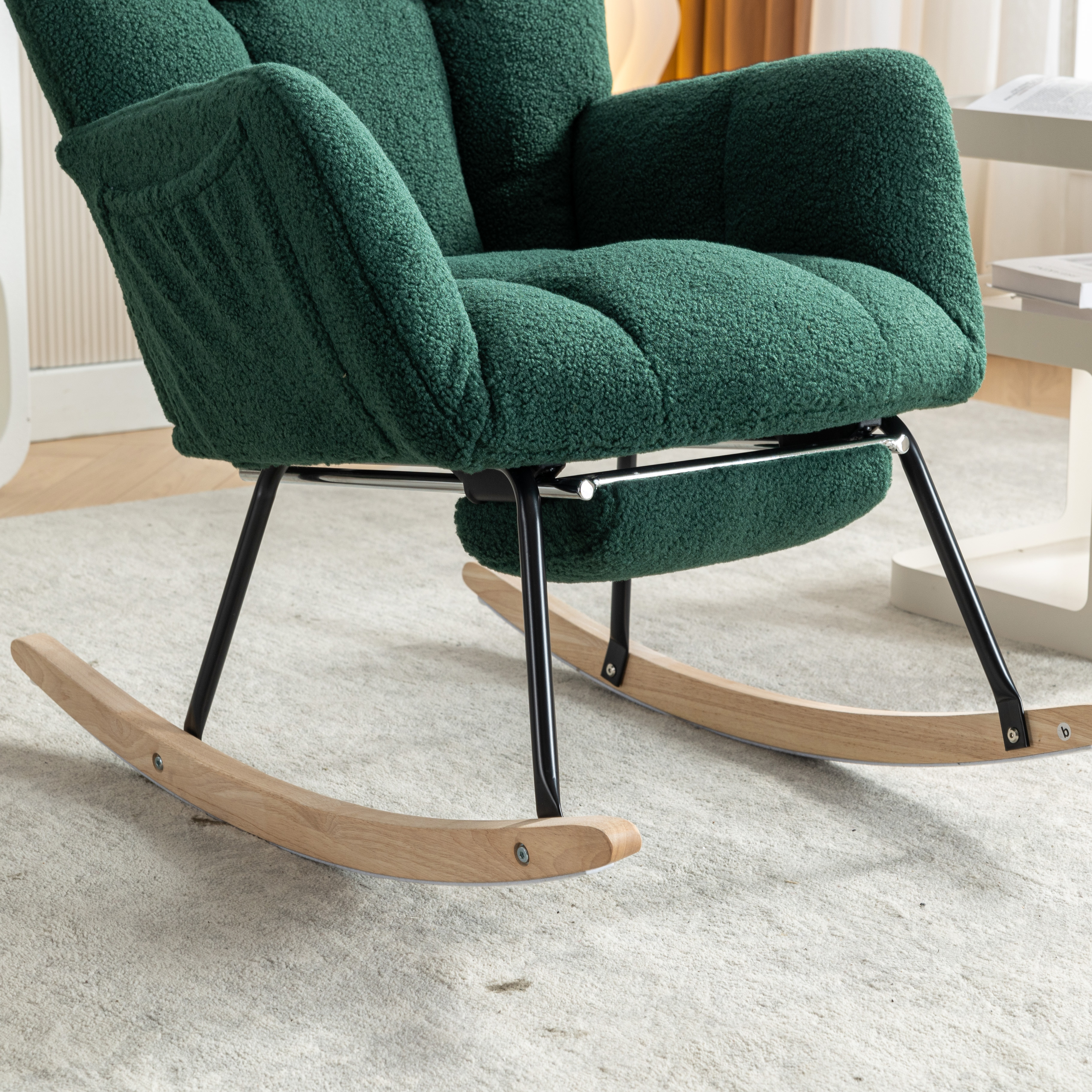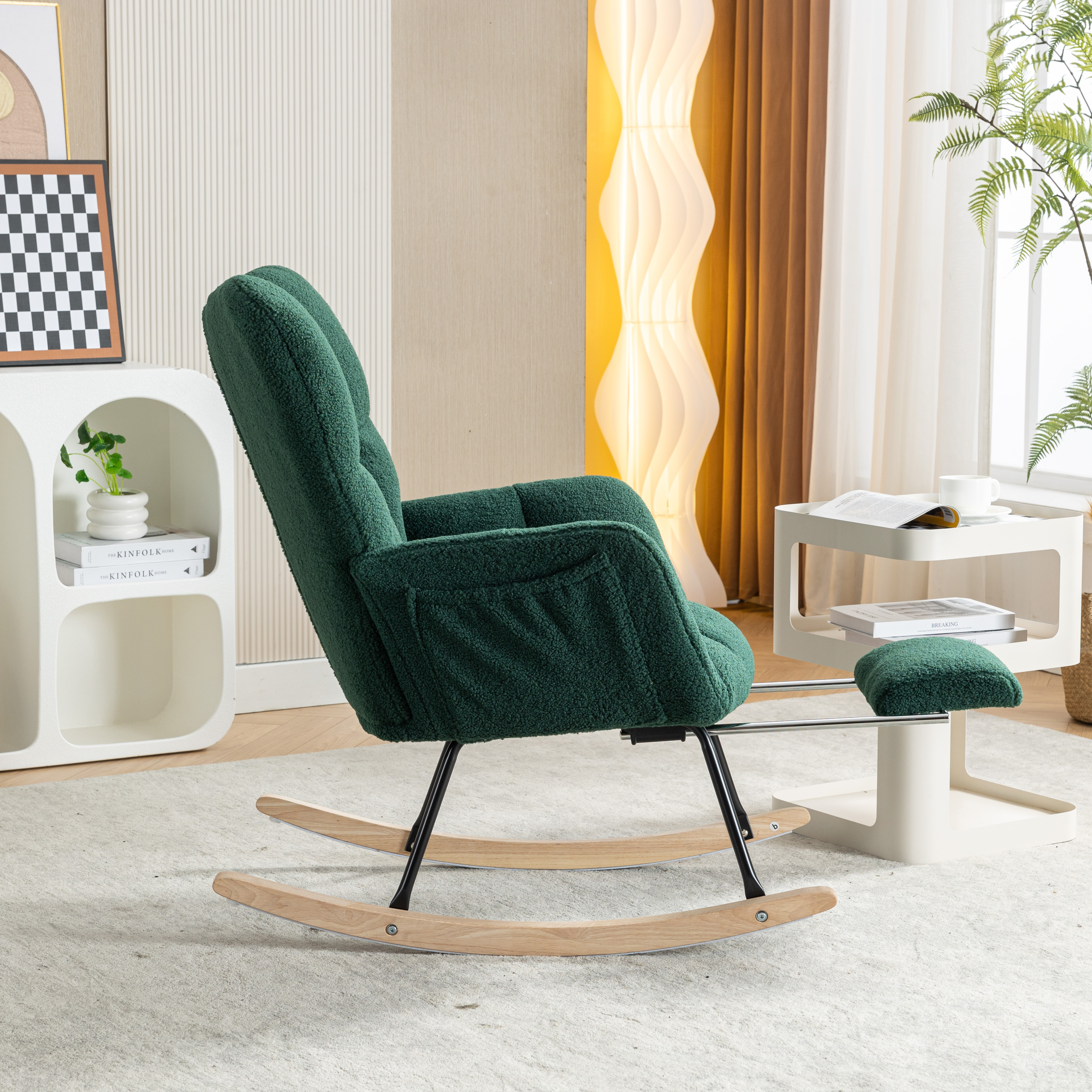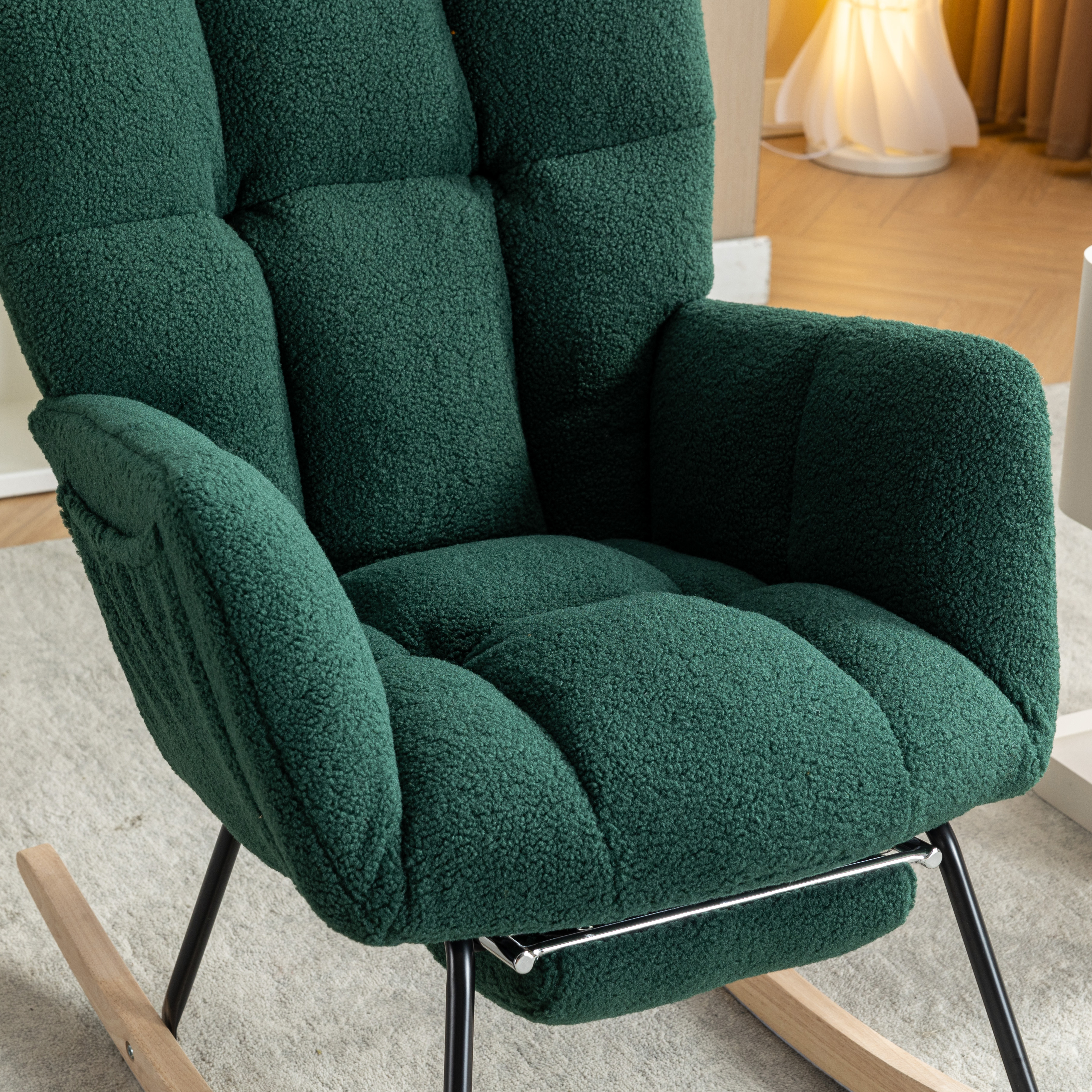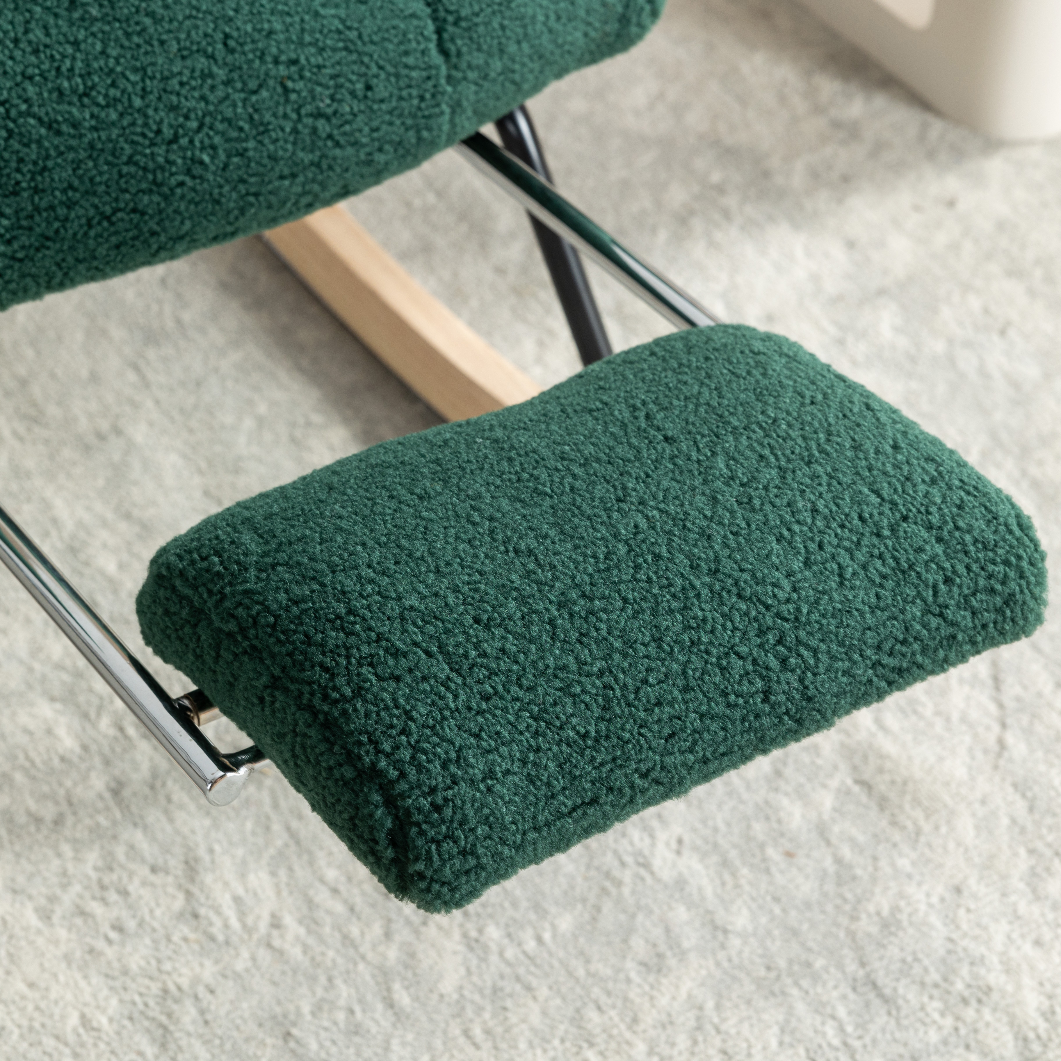 网红摇椅懒人沙发可伸缩脚踏 | 泰迪绒软包阳台休闲躺椅 免安装 | 静音摇动客厅卧室单人沙发 承重300斤 | 绿色