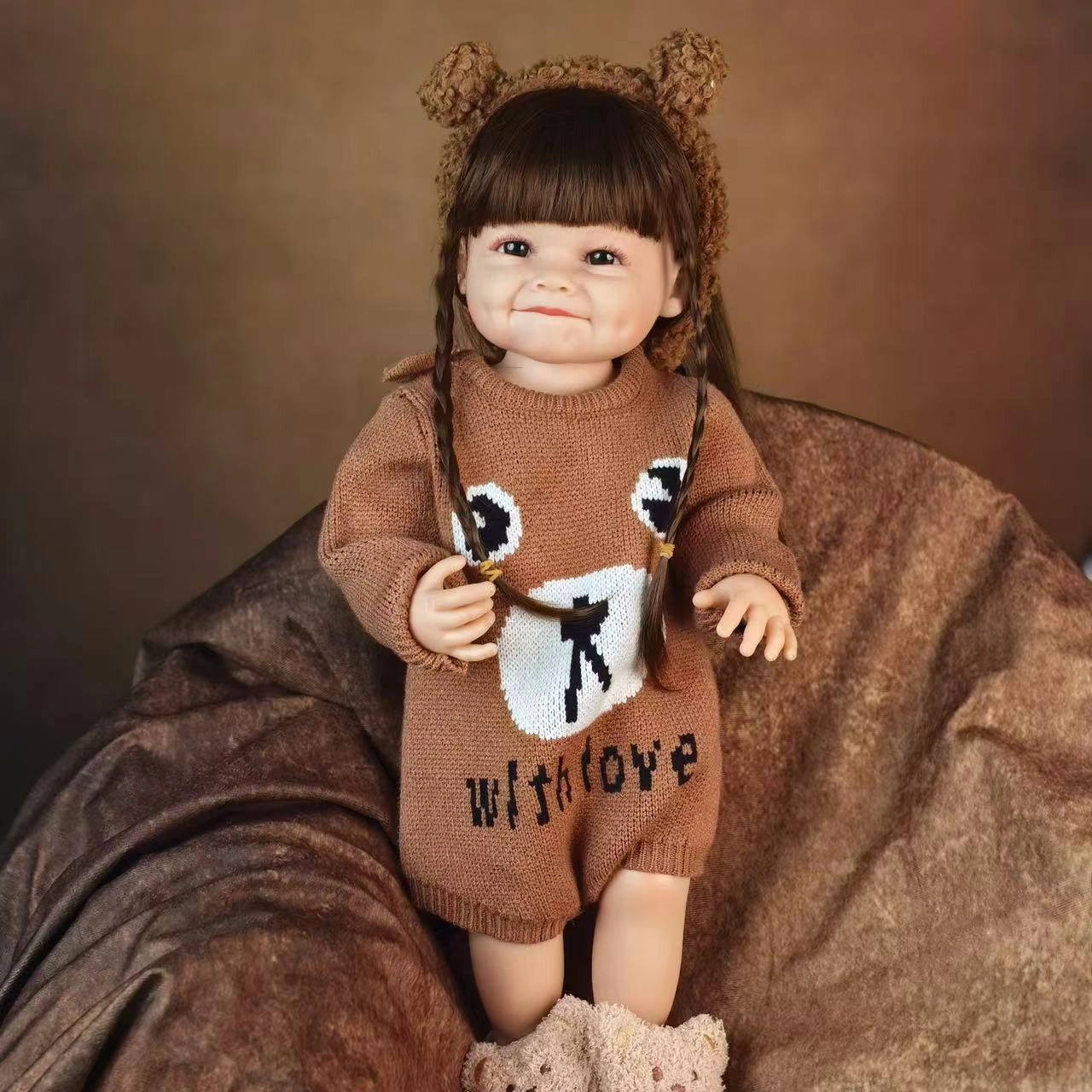 【样品预售】全胶仿真娃娃 笑笑款 棕长发黑眼 配棕色新款毛衣连体衣 + 棕发箍 + 棕熊袜(nuomuxiong))