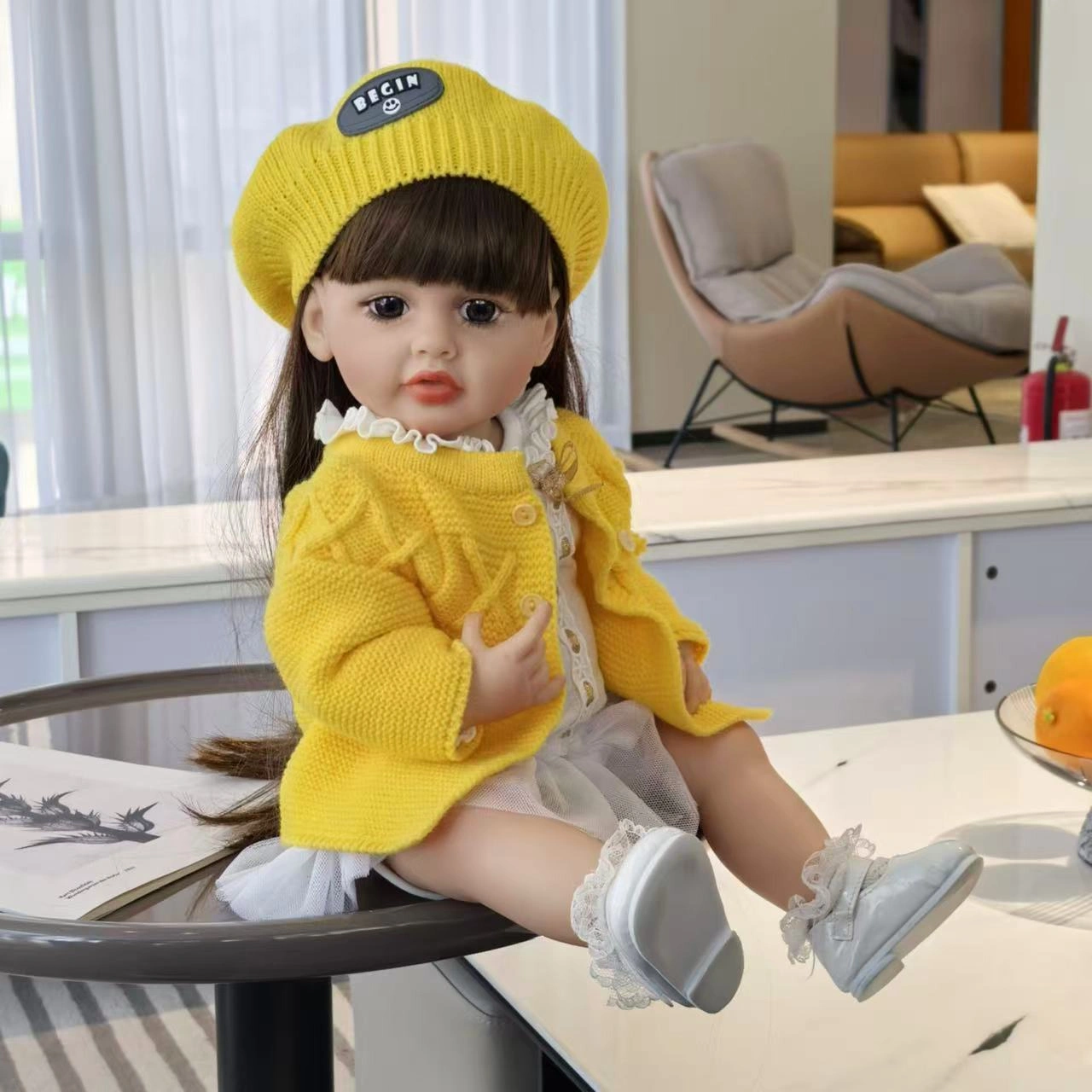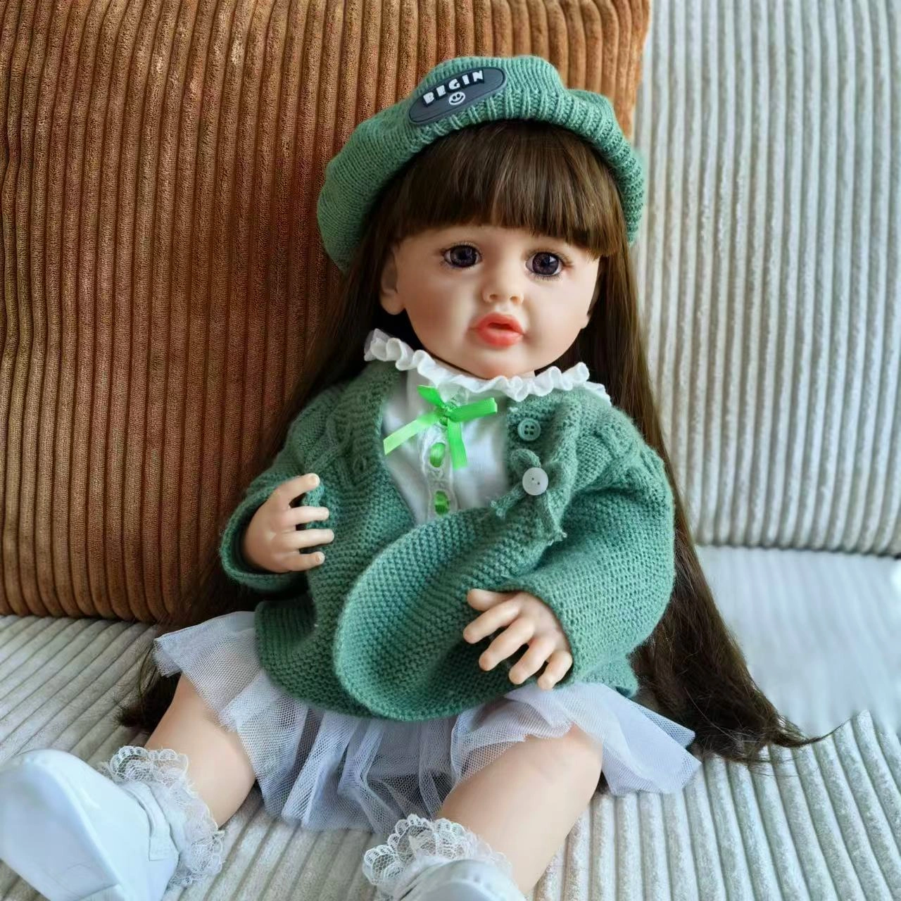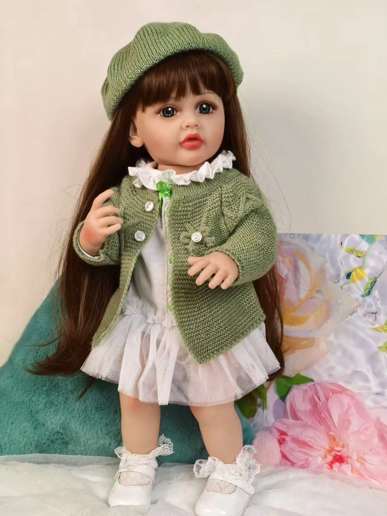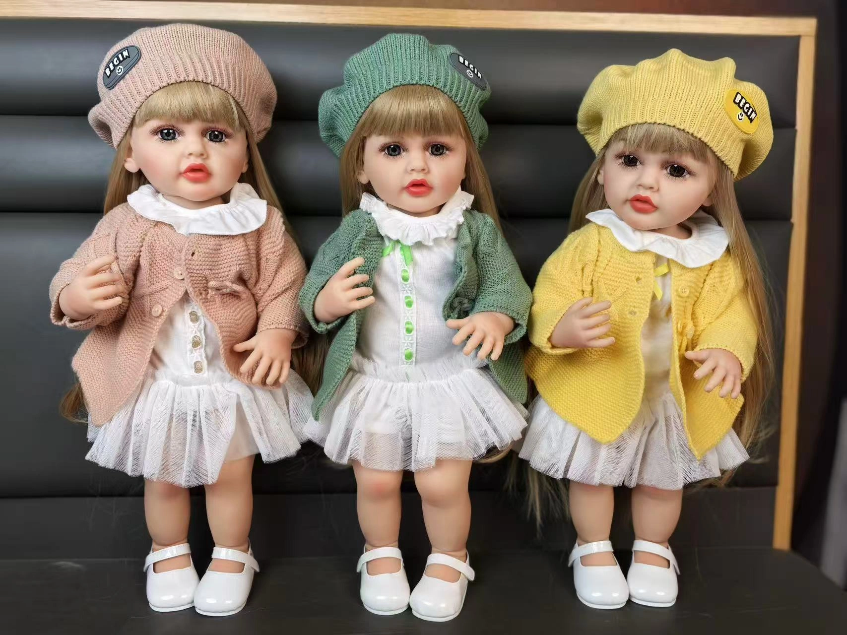 【样品预售】仿真娃娃 金长发星空蓝眼 粉 / 黄 / 绿蓓蕾帽三件套 + 白皮鞋套装(nuomuxiong))