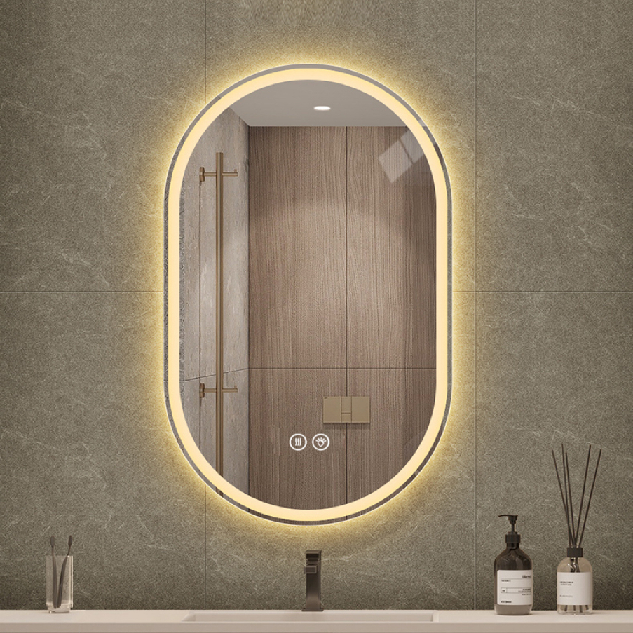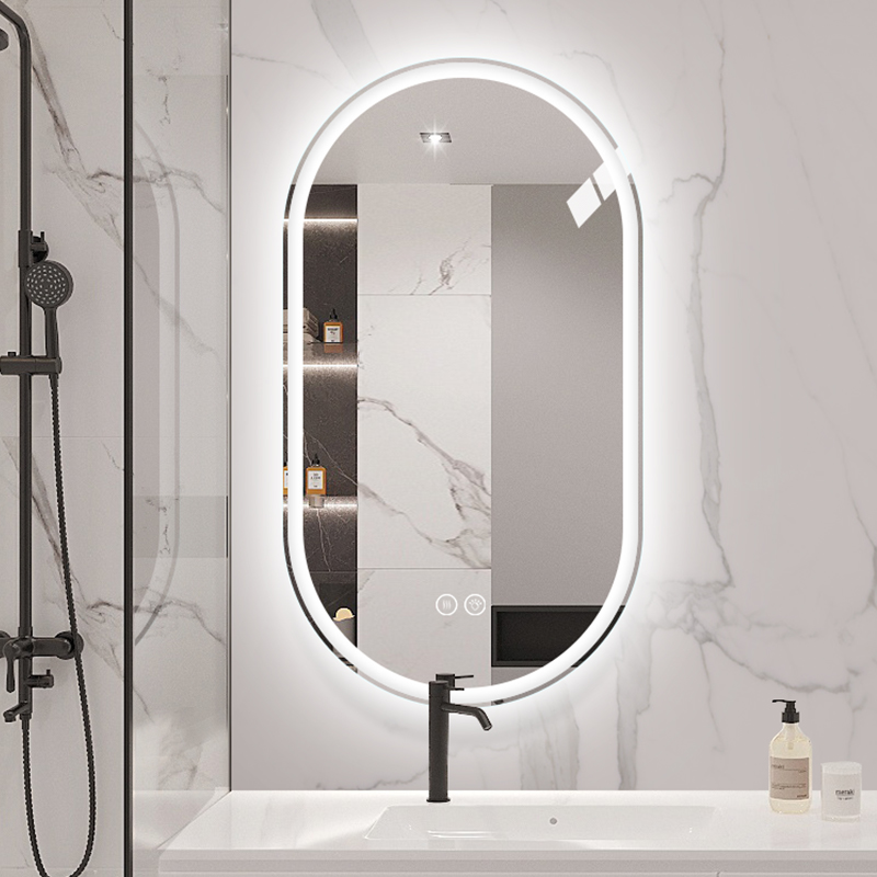 60*90cm智能浴室镜 椭圆无框防雾镜 触摸屏LED化妆镜 三色无极调光 银框
