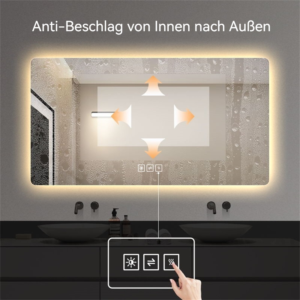 60*120cm智能浴室镜 防雾led镜 三色无极调光 超薄无框银镜 触摸除雾 卫生间镜
