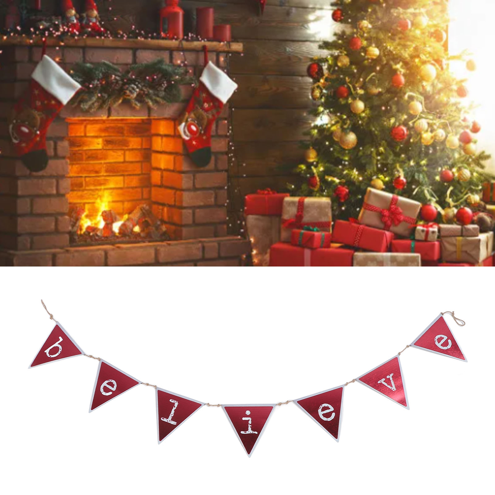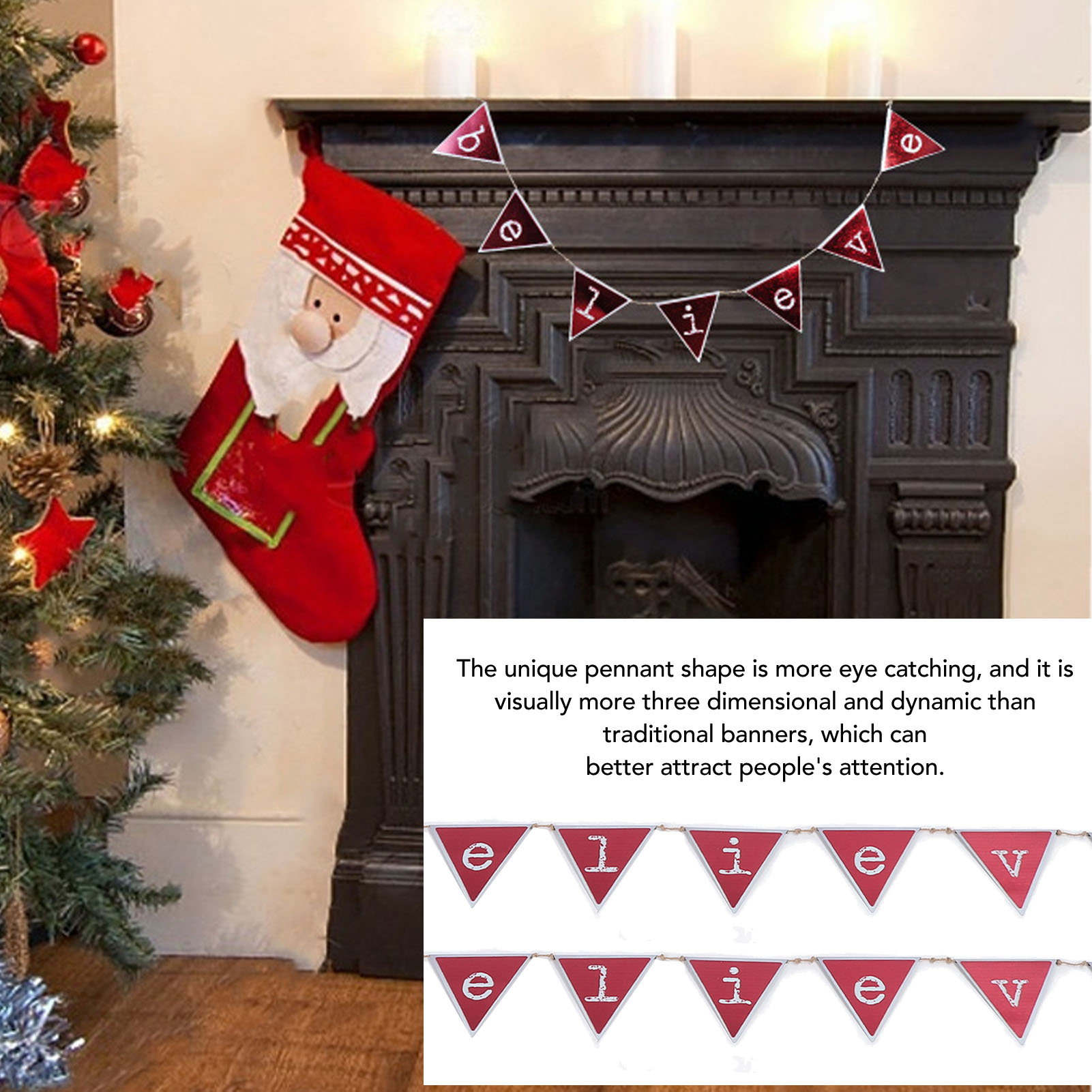 【铁艺仿古】圣诞BELIEVE三角旗横幅 做旧复古风圣诞装饰挂件 场景布置道具 婚礼生日派对背景装饰