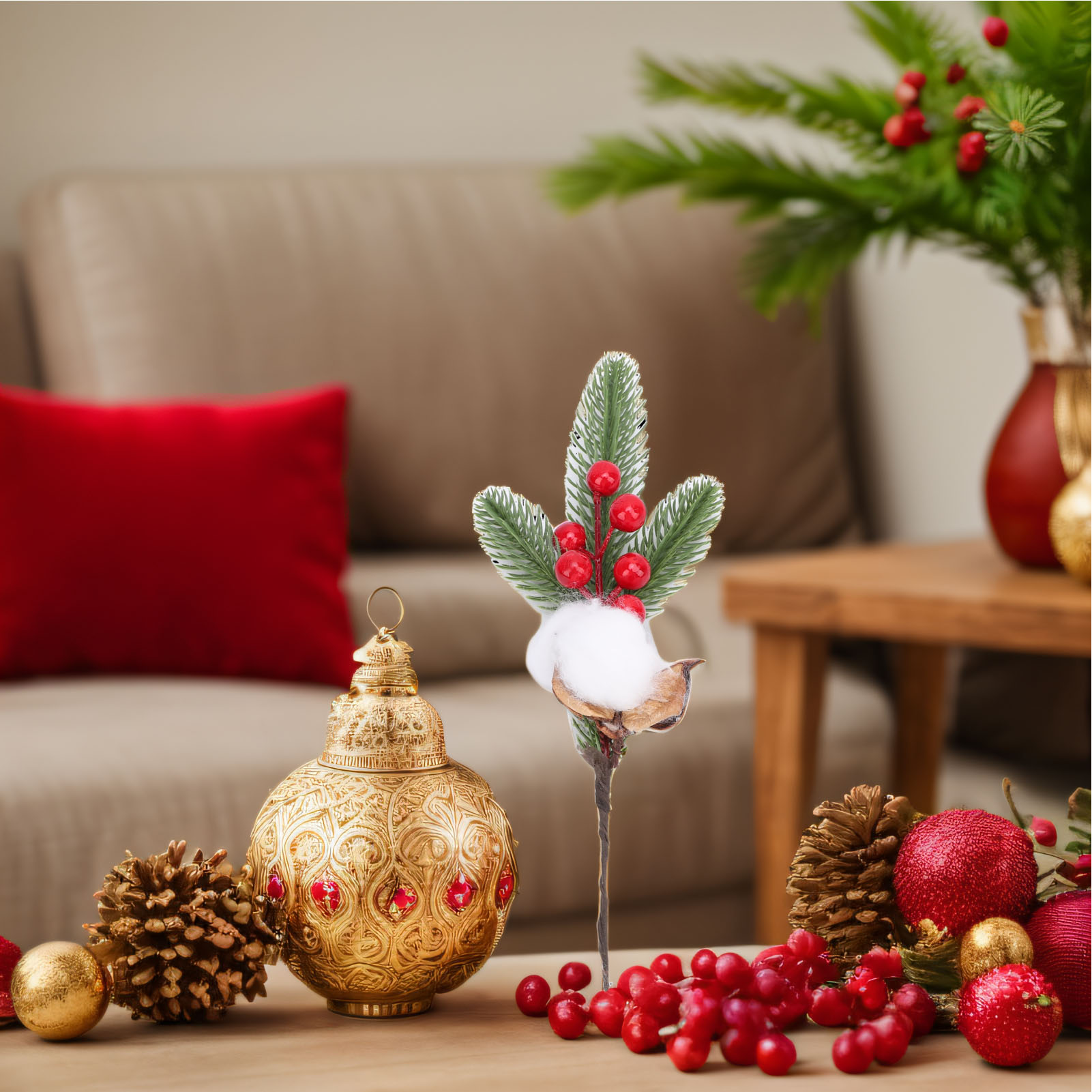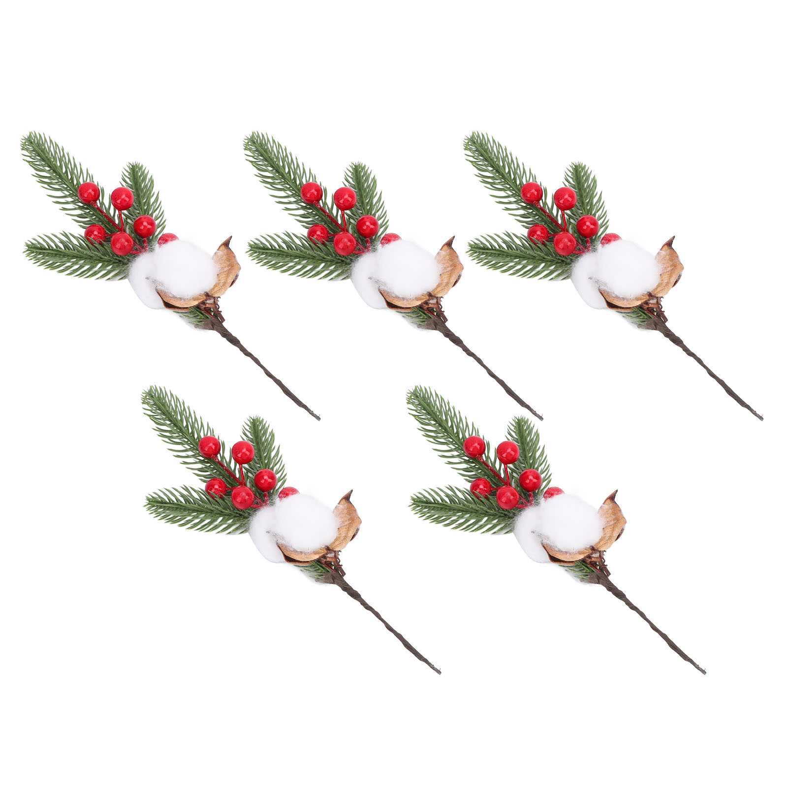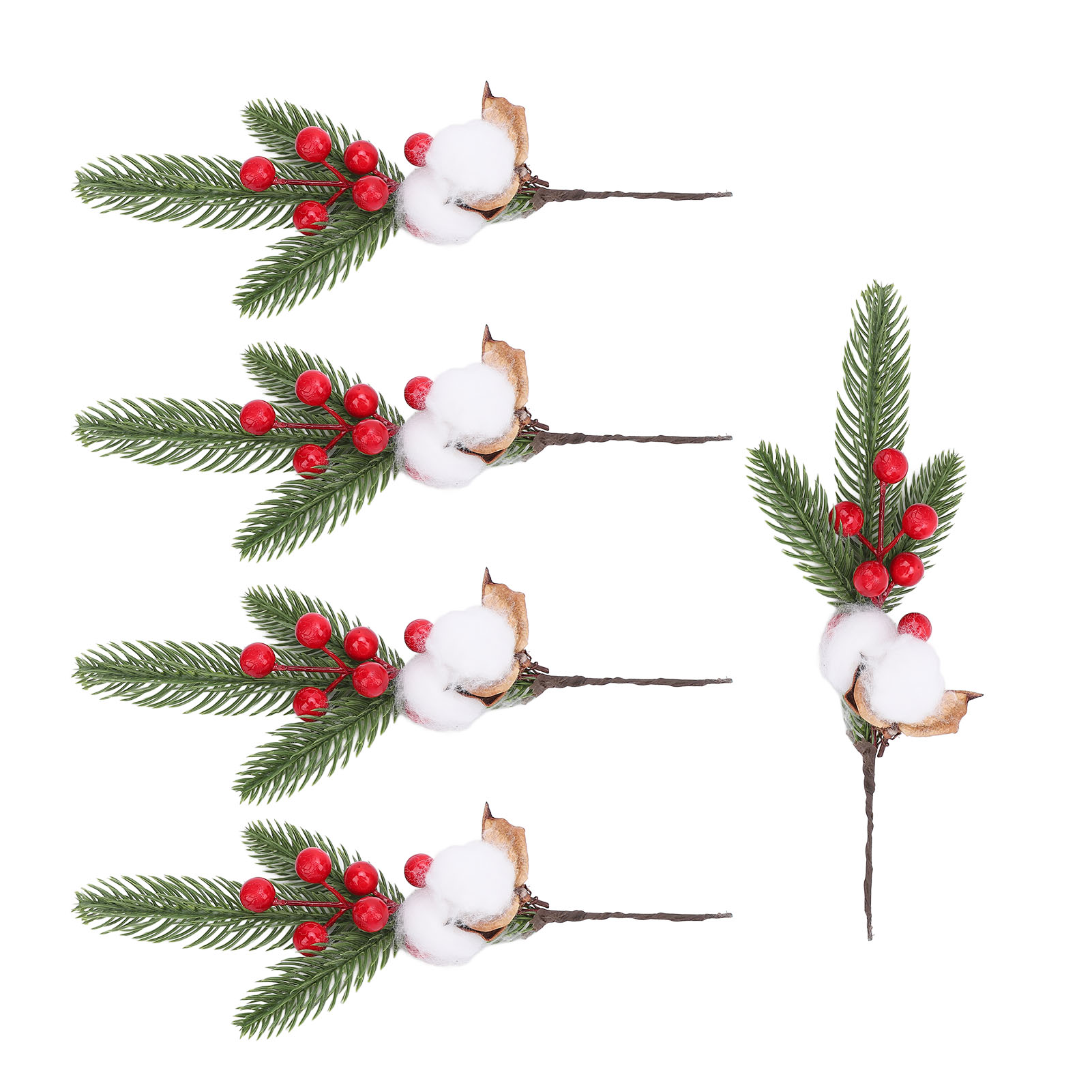 【5支装】仿真红浆果松针花枝 圣诞花环DIY材料 婚庆装饰插花配叶 室内外家居桌面装饰(带铁丝可弯曲)