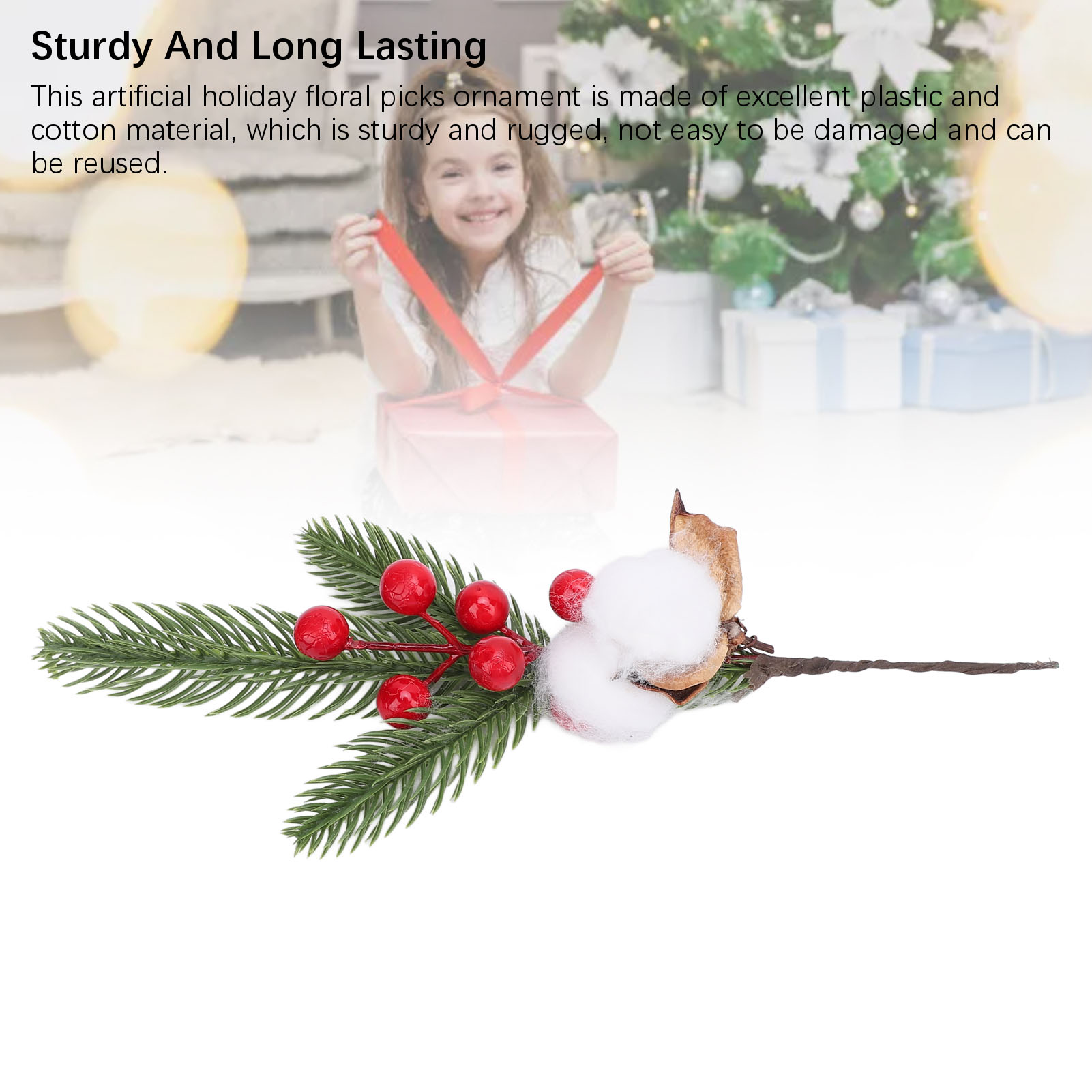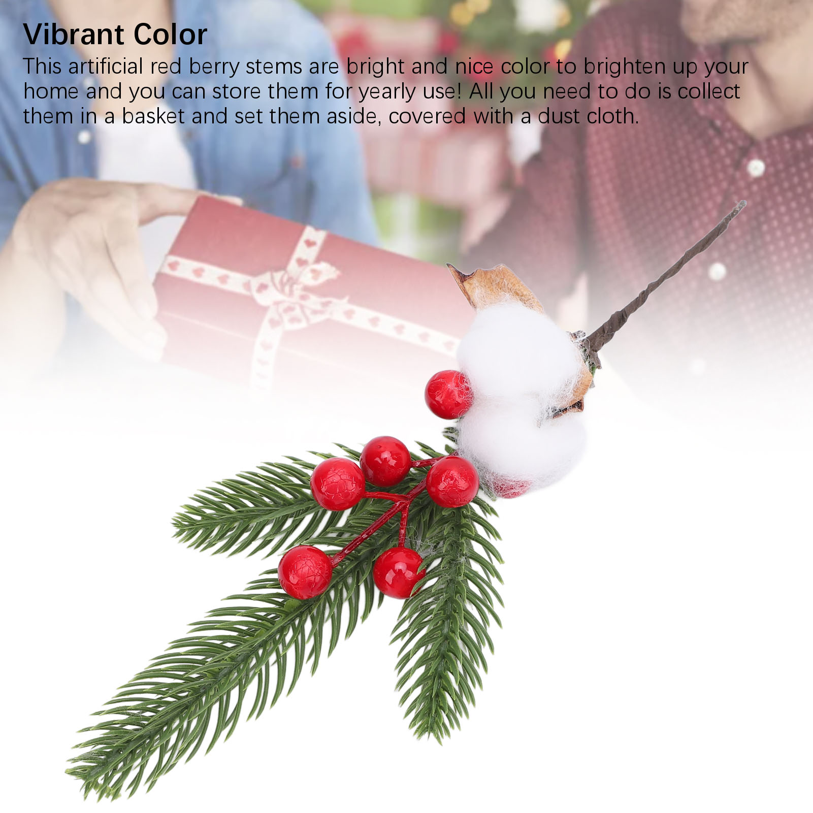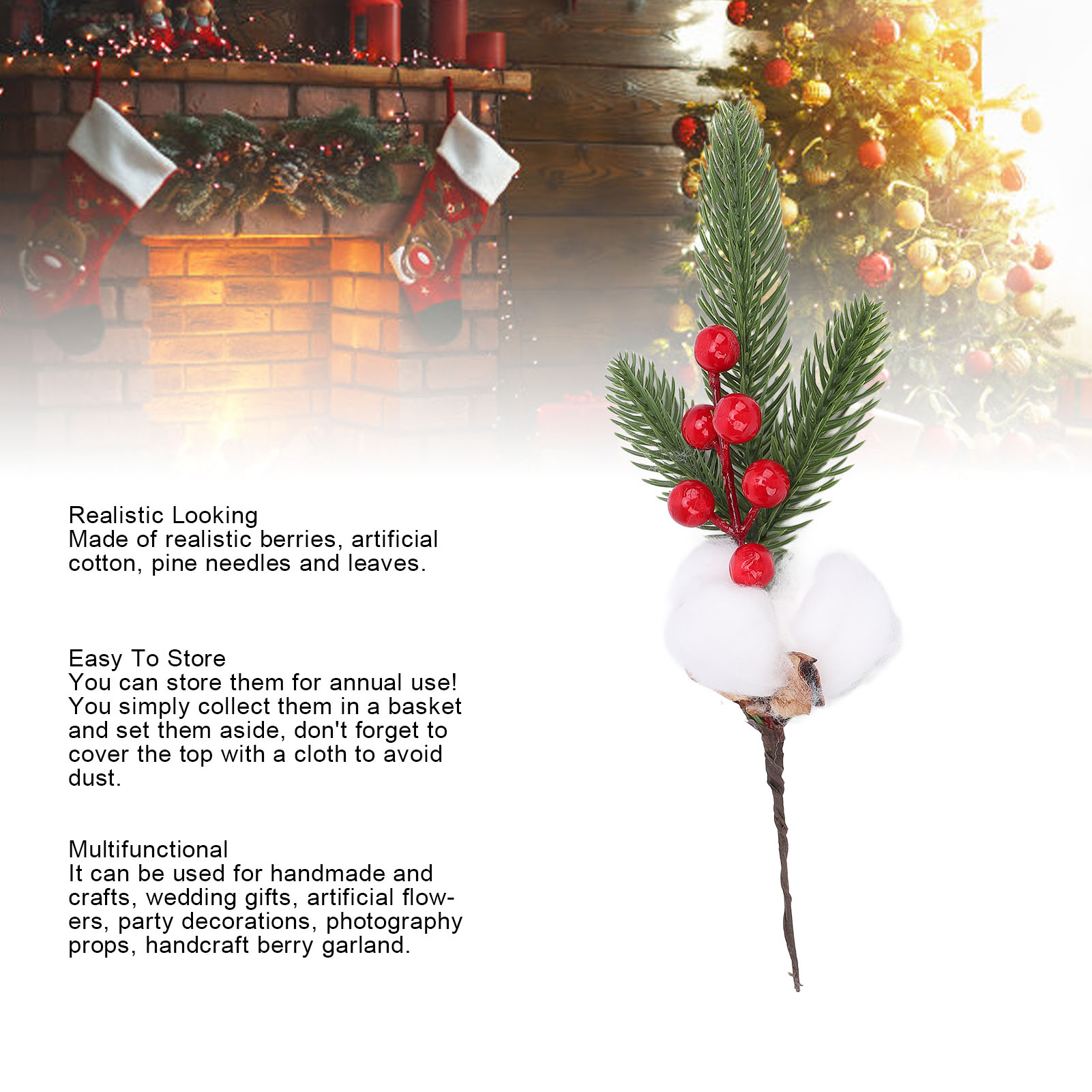 【5支装】仿真红浆果松针花枝 圣诞花环DIY材料 婚庆装饰插花配叶 室内外家居桌面装饰(带铁丝可弯曲)