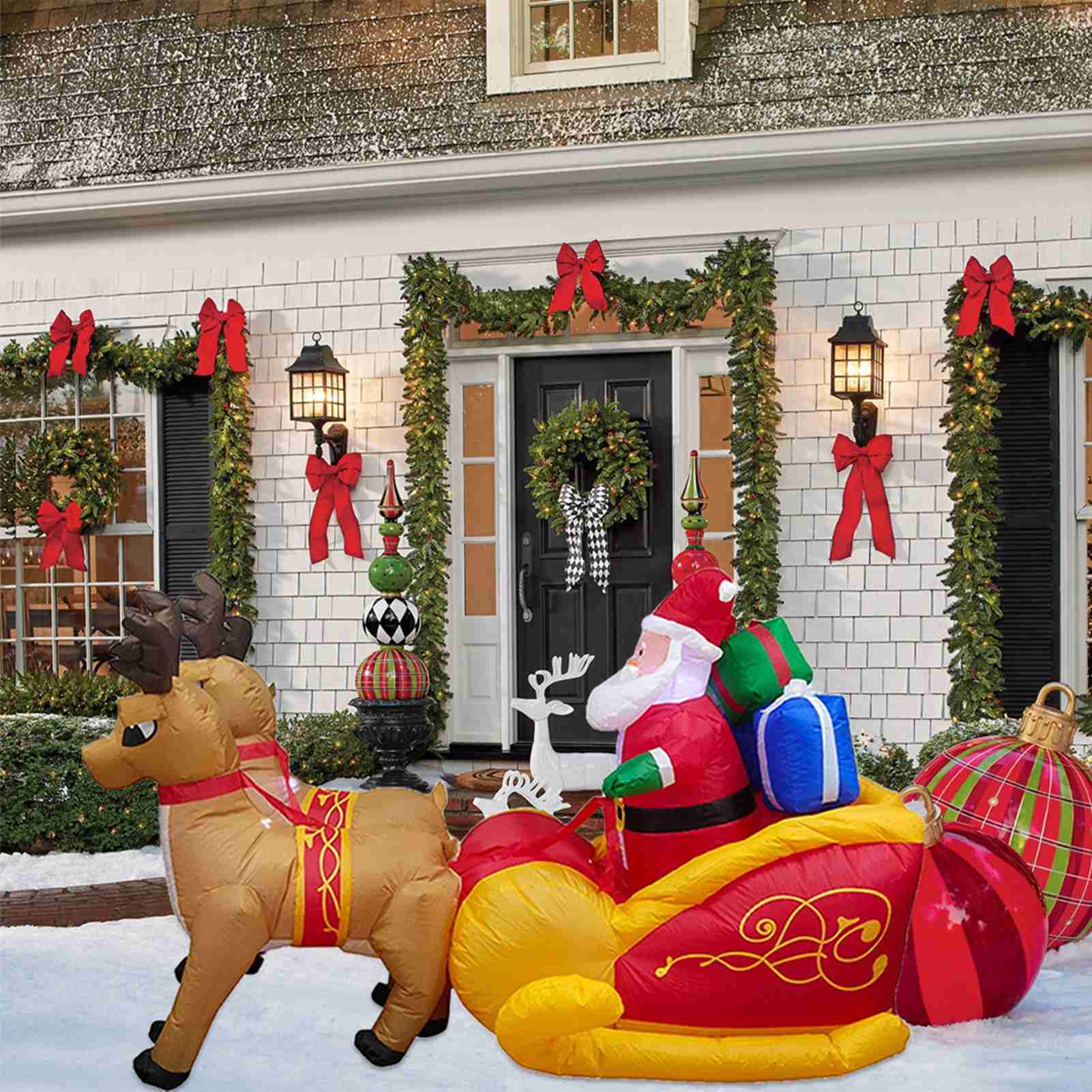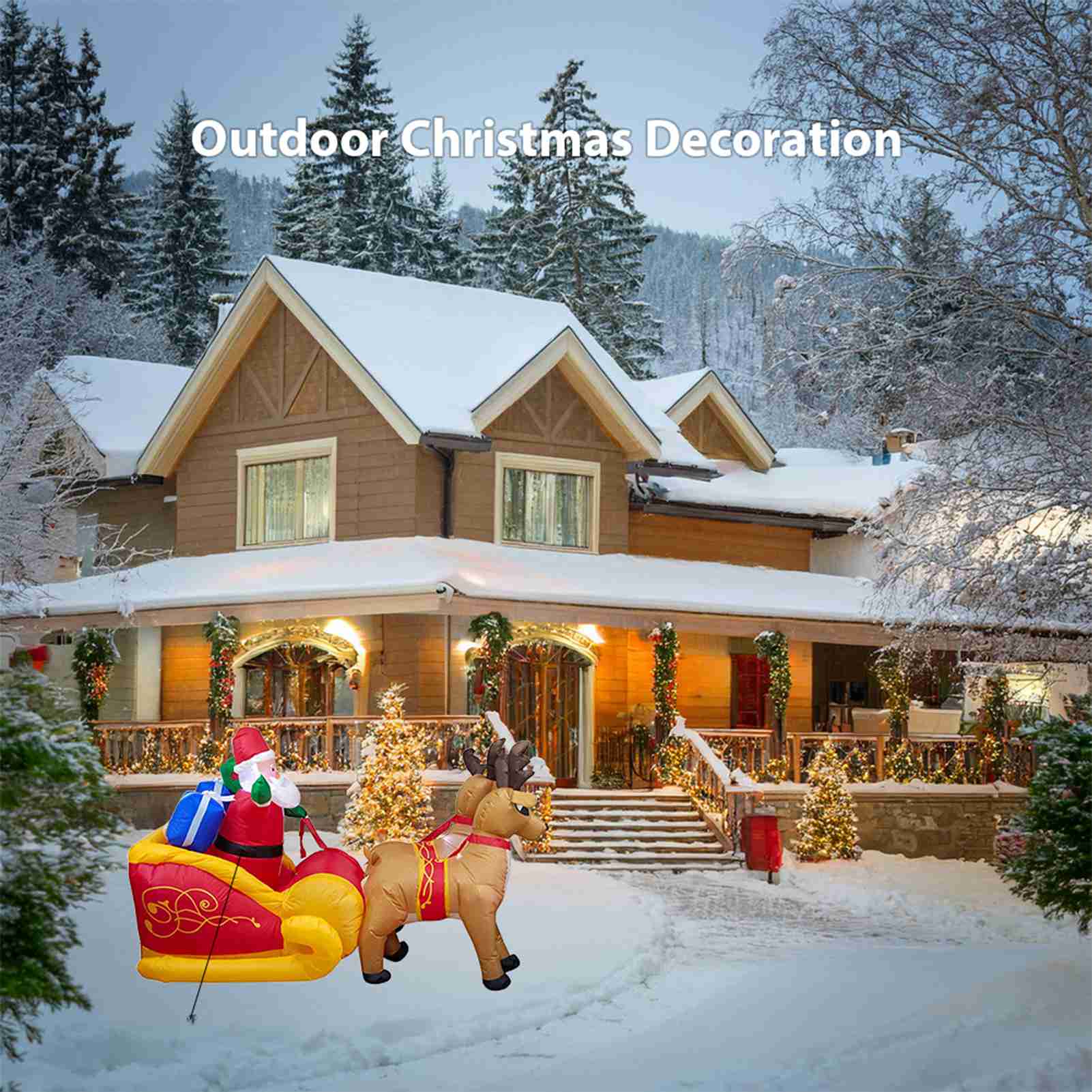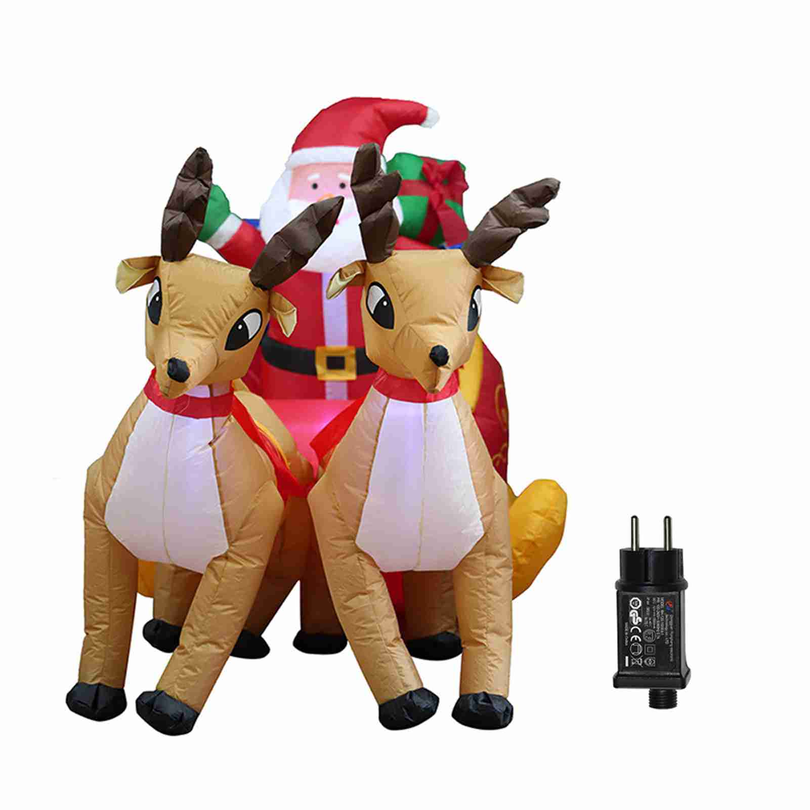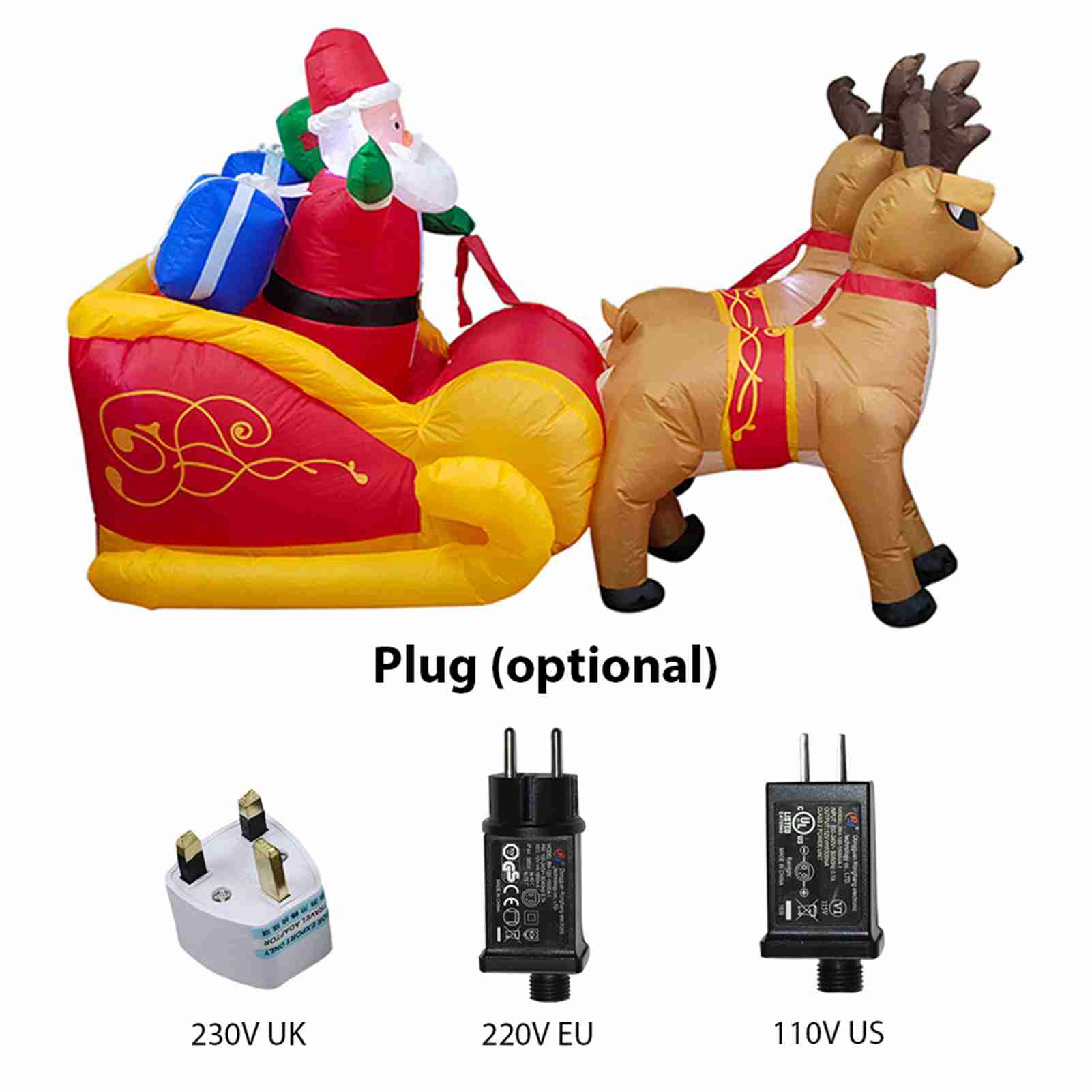 【1.3米大号】发光LED充气麋鹿拉雪橇 圣诞节户外庭院装饰气模 带鼓风机地钉LED灯 防水220V欧规电源