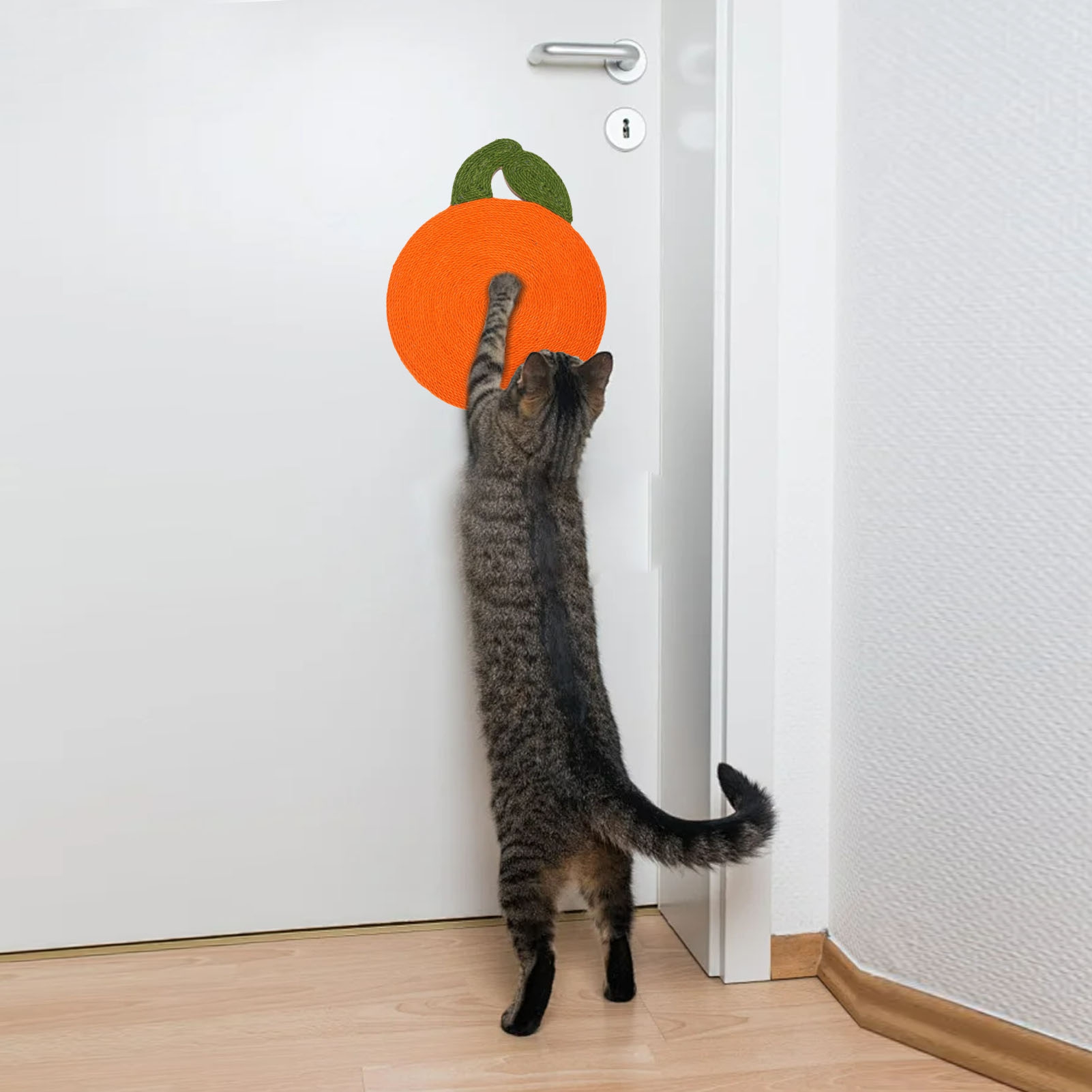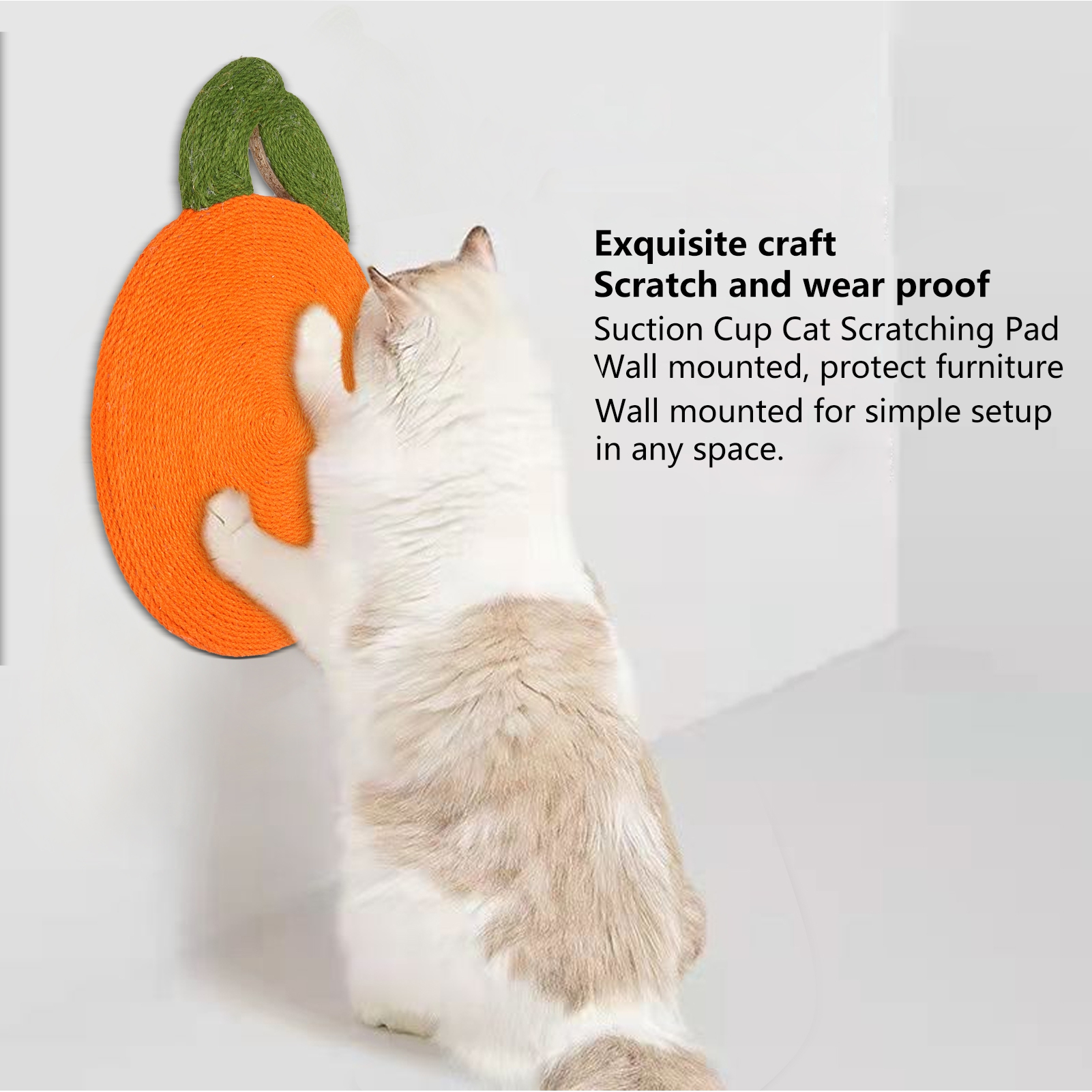 甜橙造型吸盘猫抓板 免打孔壁挂式黄麻磨爪器 强力吸盘固定节省空间 有效保护家具沙发 耐磨耐抓猫咪玩具 时尚家居装饰