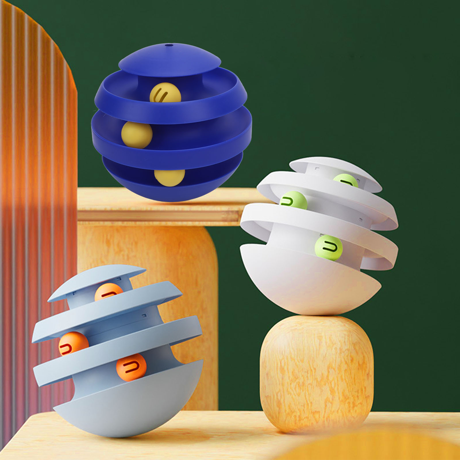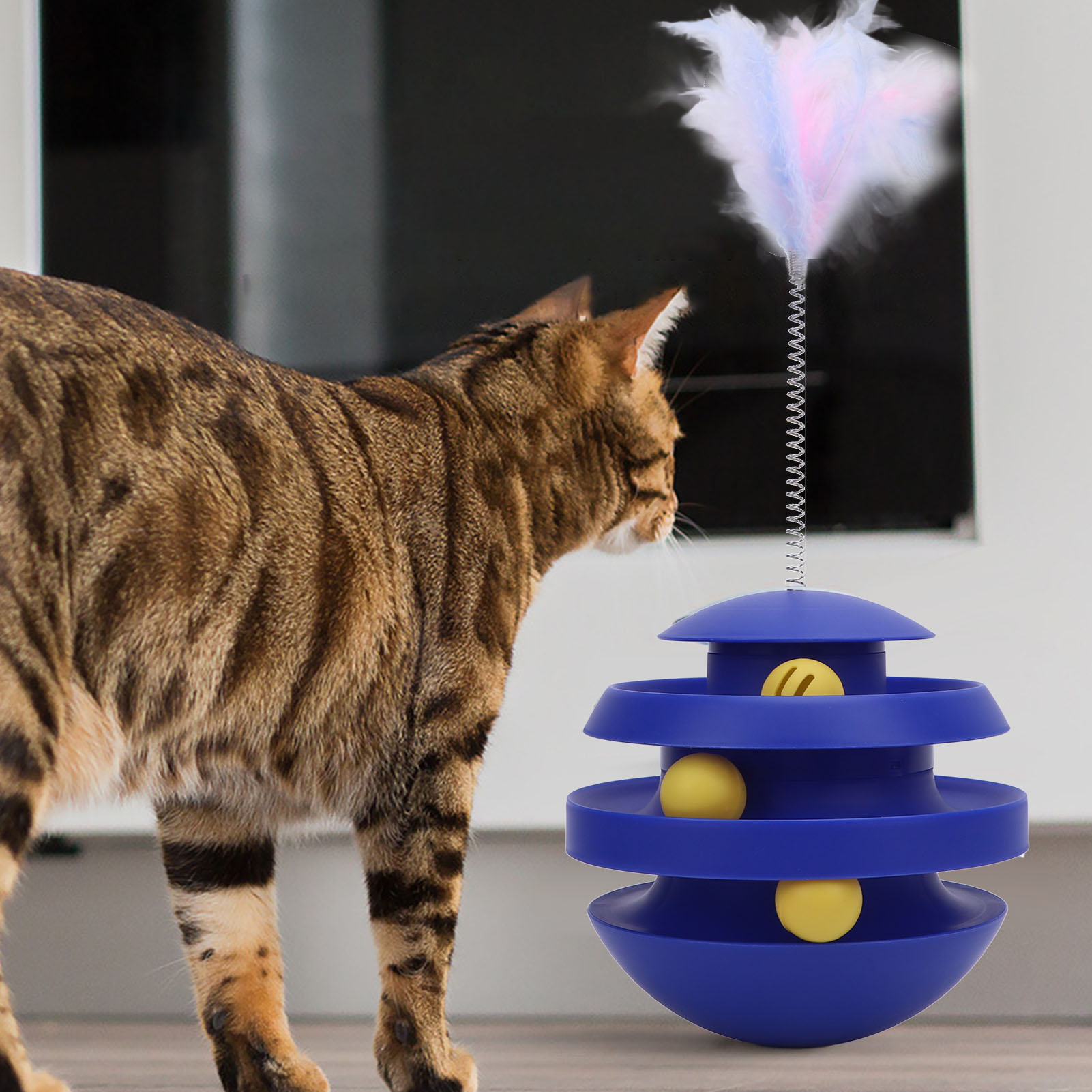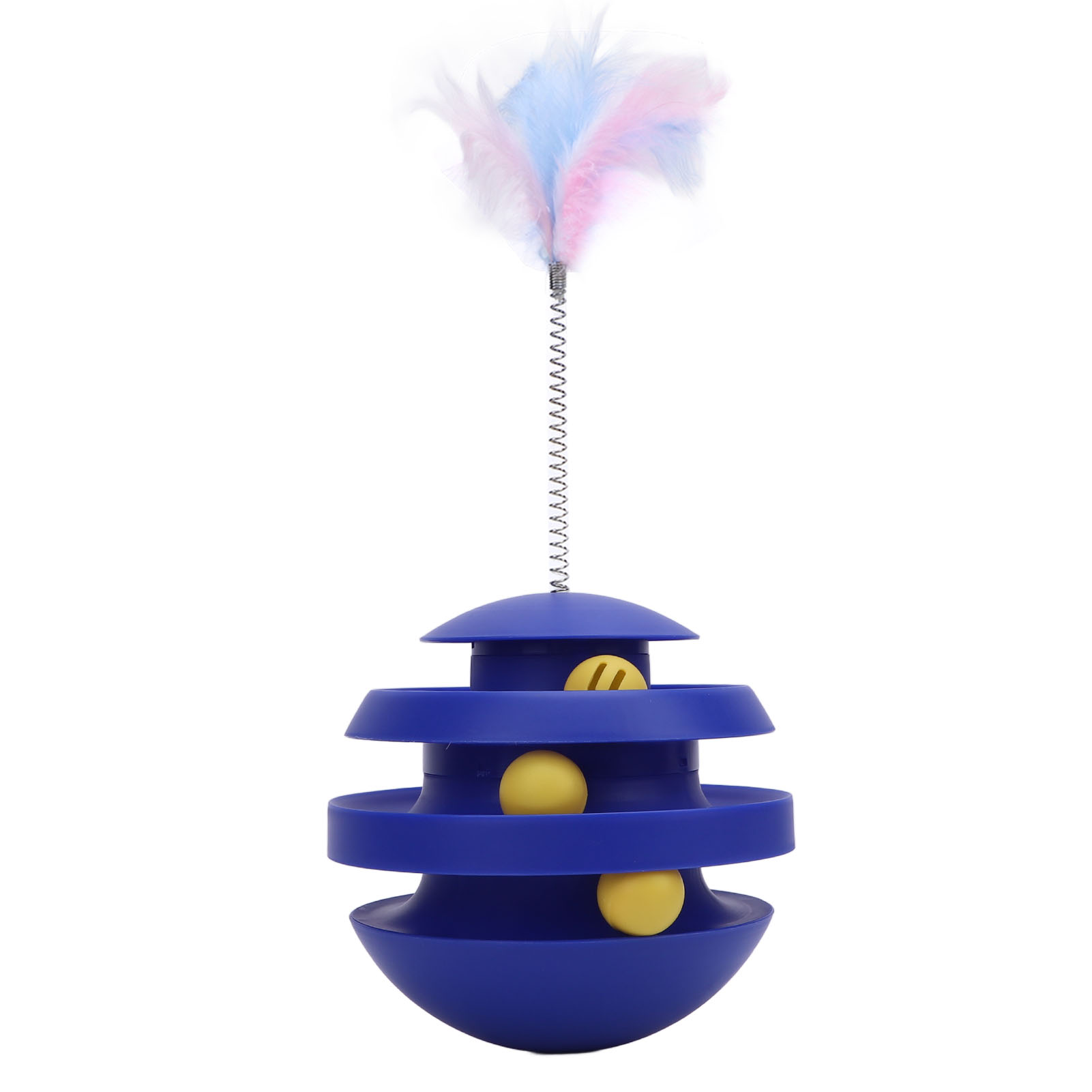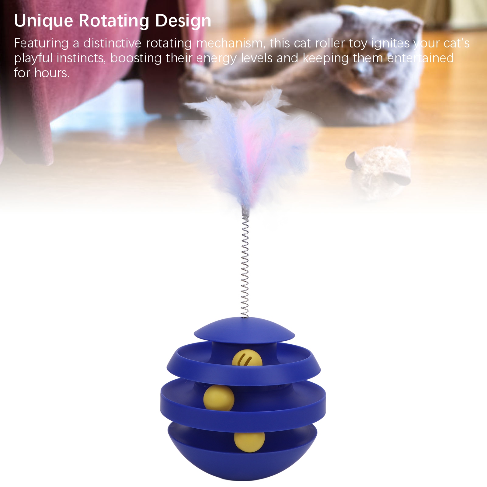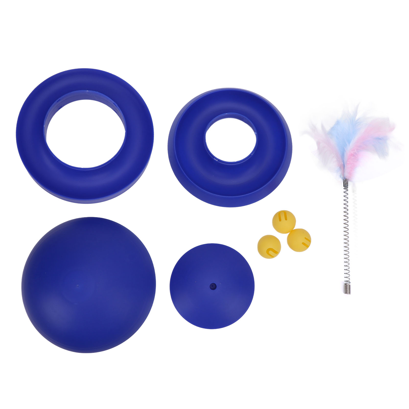 克莱因蓝逗猫球玩具 猫咪旋转不倒翁转盘 耐磨耐咬PP+ABS材质 自带逗猫棒 猫咪自嗨解闷神器 锻炼猫咪反应能力 室内宠物用品
