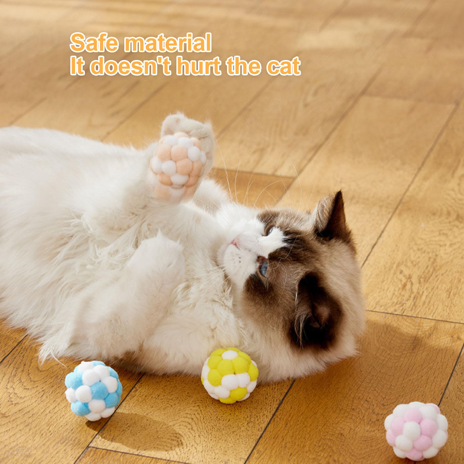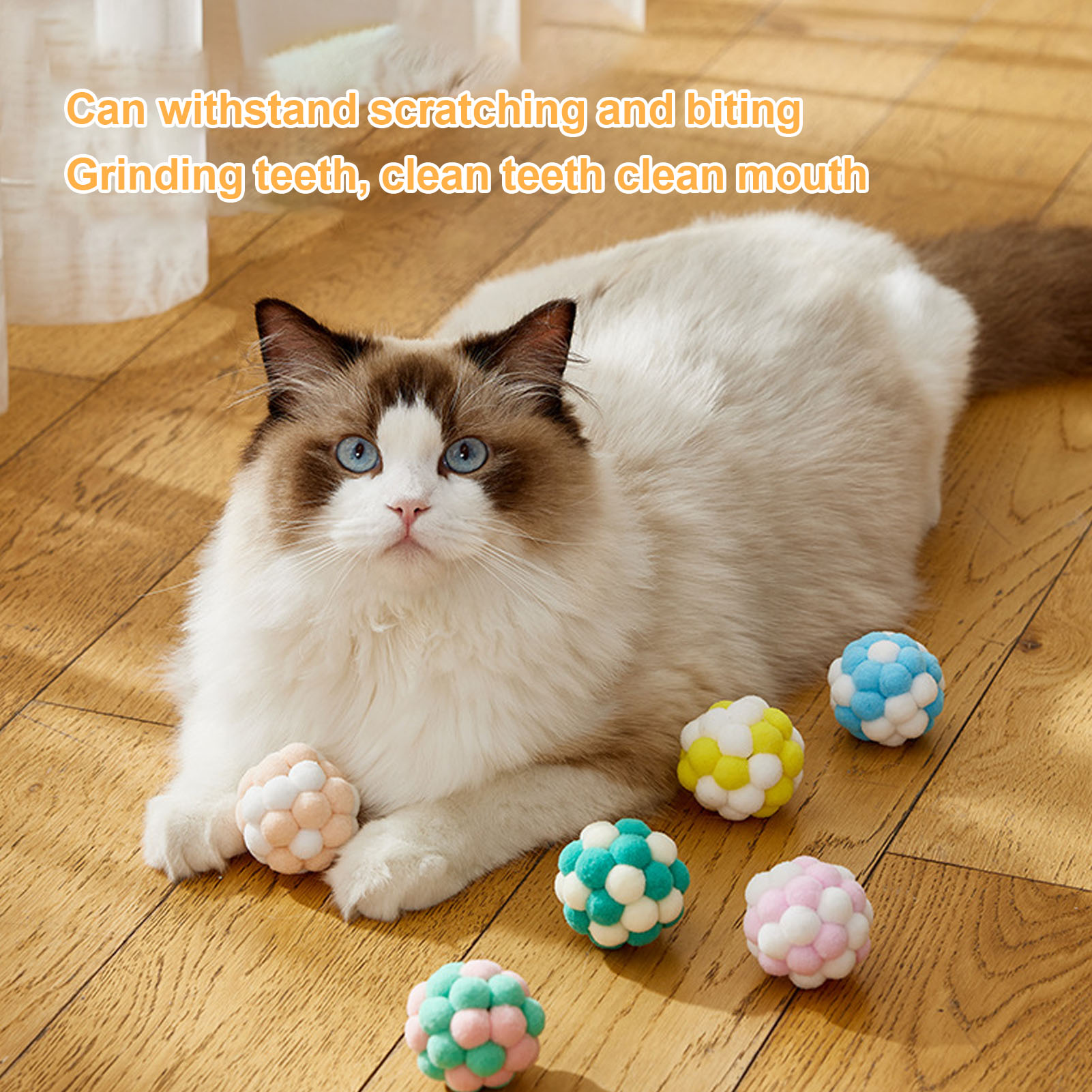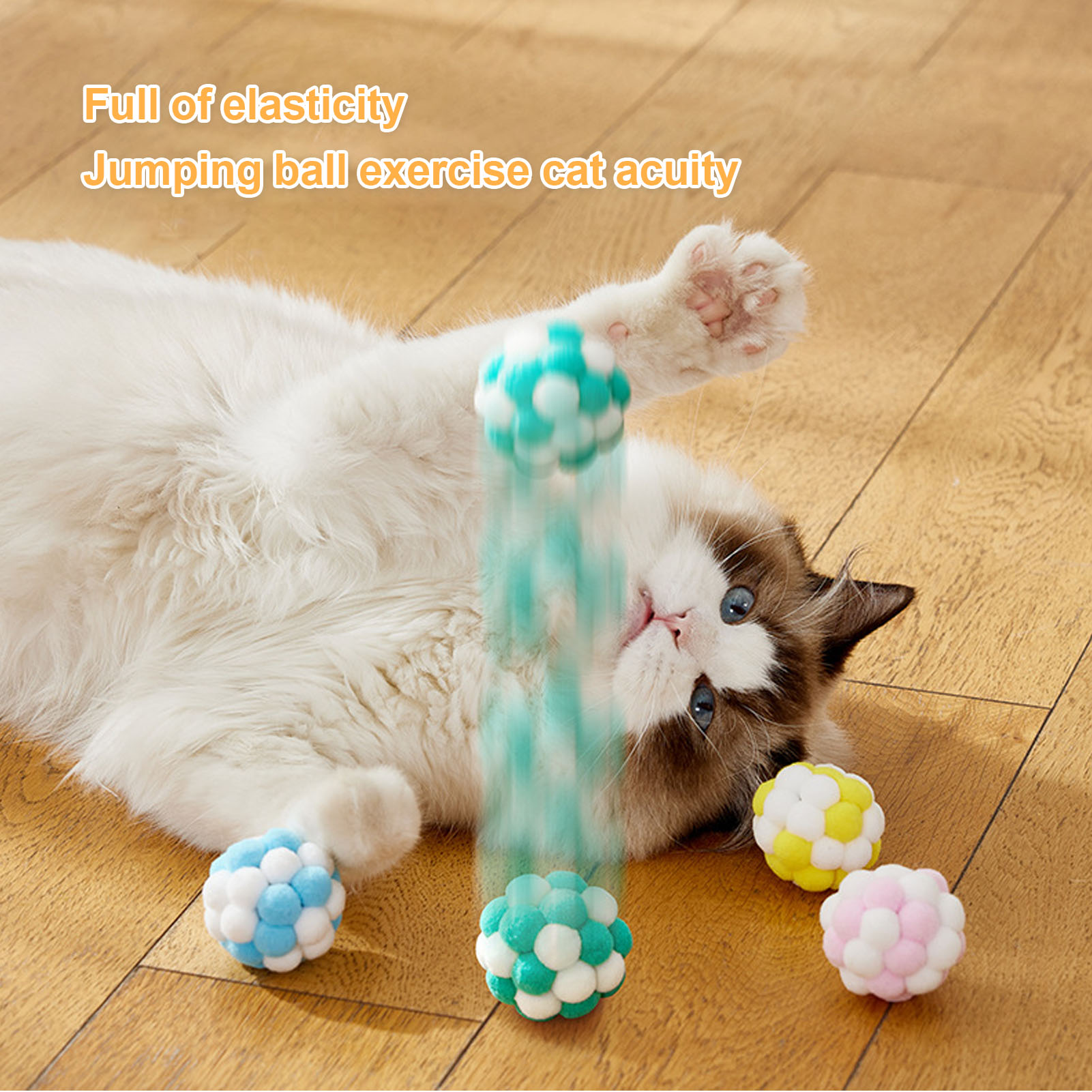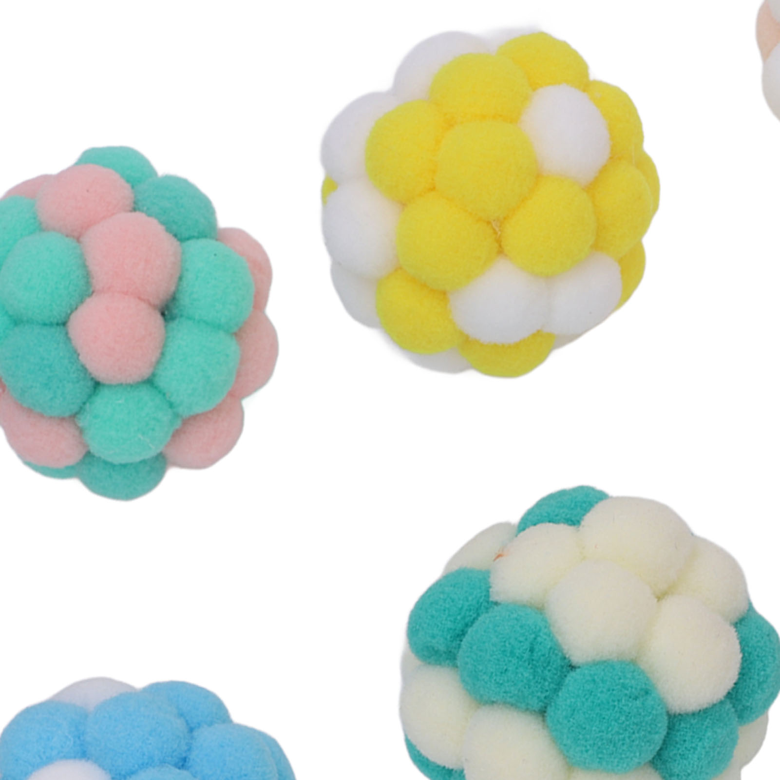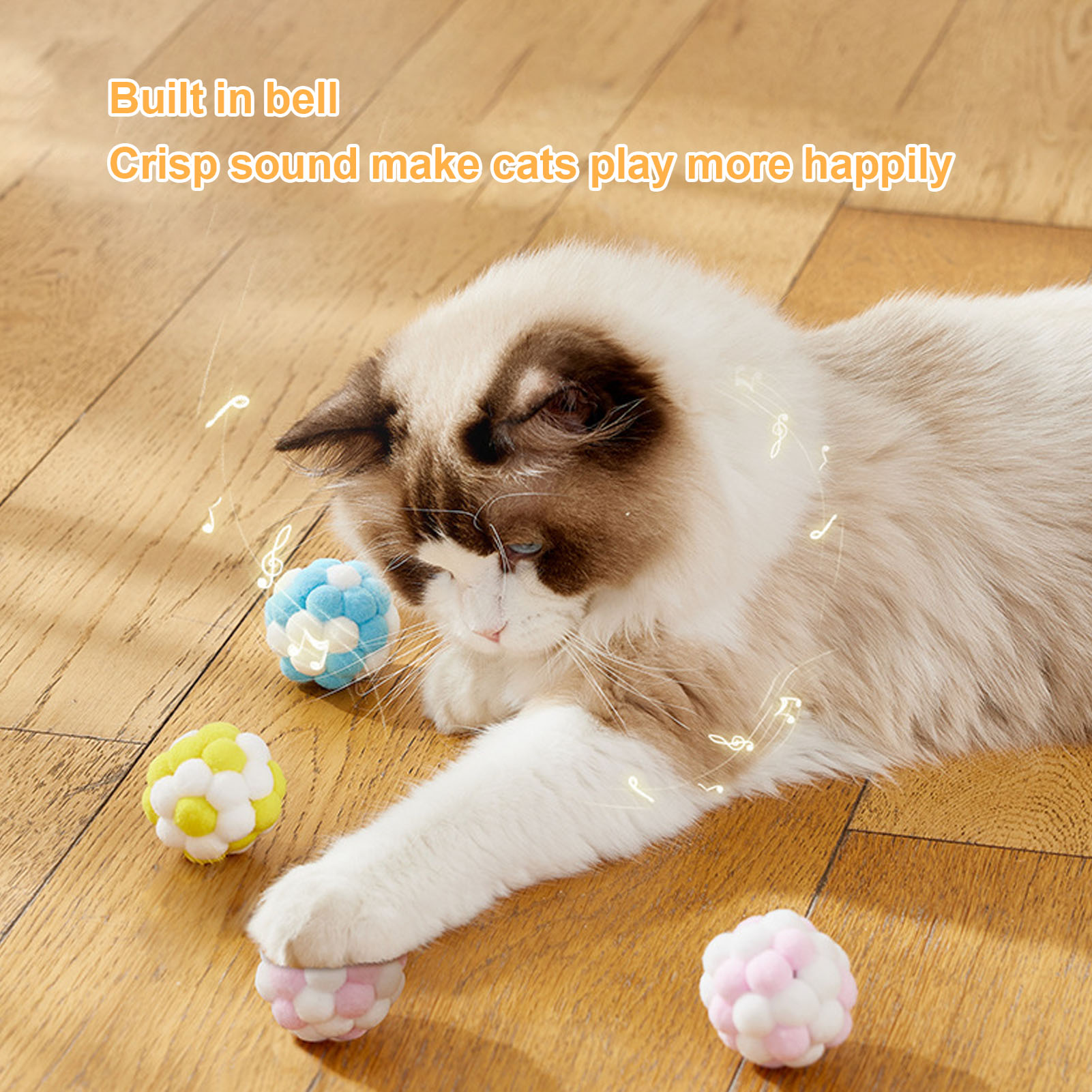 猫咪玩具6个装 耐咬铃铛逗猫球 彩色毛绒自嗨球 内置响铃吸引猫咪注意力 帮助消耗精力保持活跃 室内宠物互动玩耍玩具