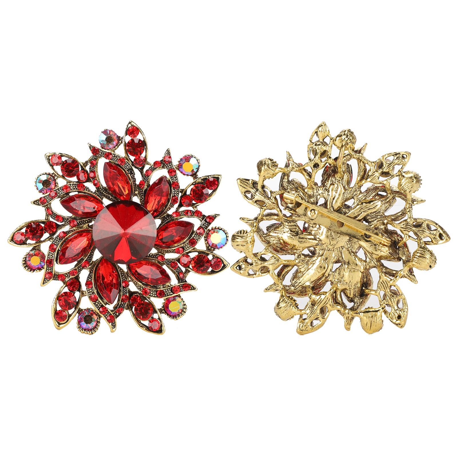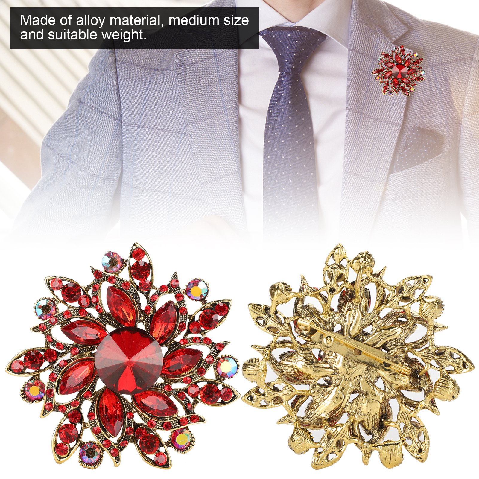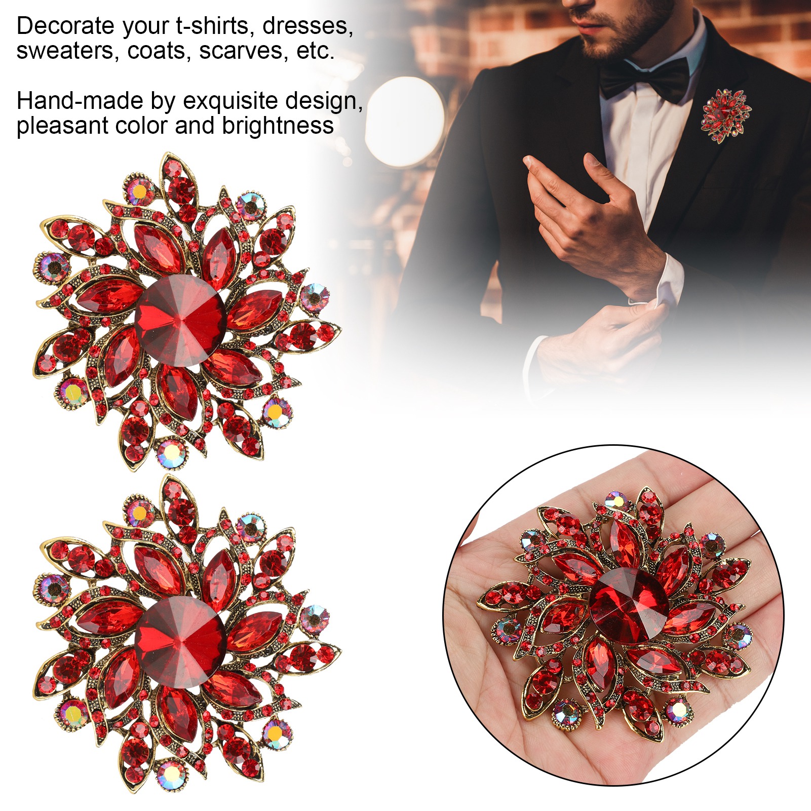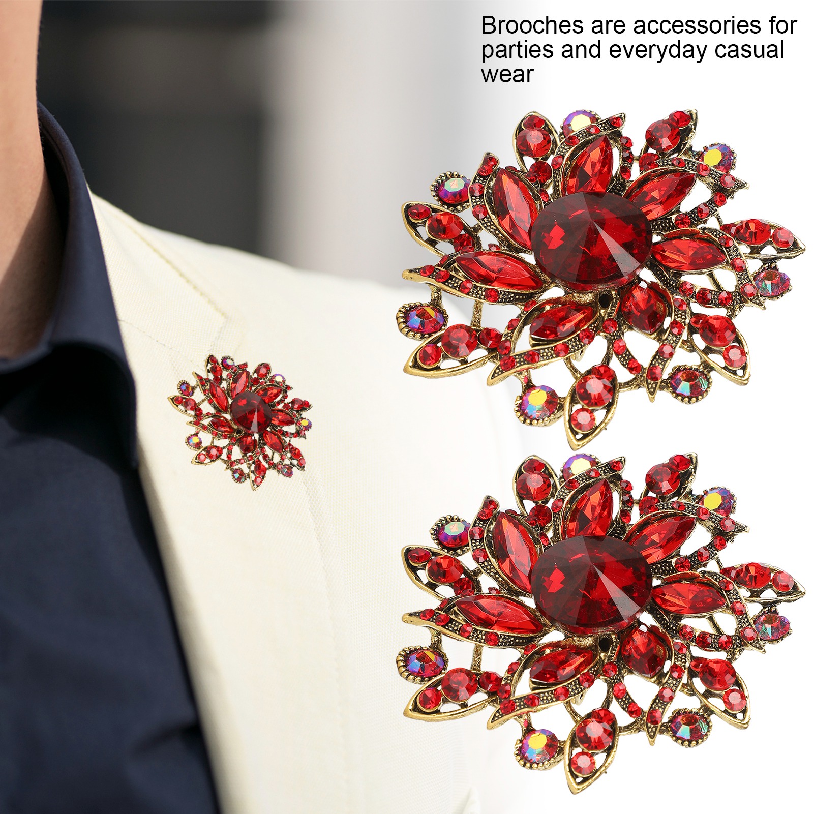 H复古镶钻水晶花朵胸针 红色合金衣饰别针套装 (2个装) 百搭创意西装外套胸花配饰 适用于日常派对礼品