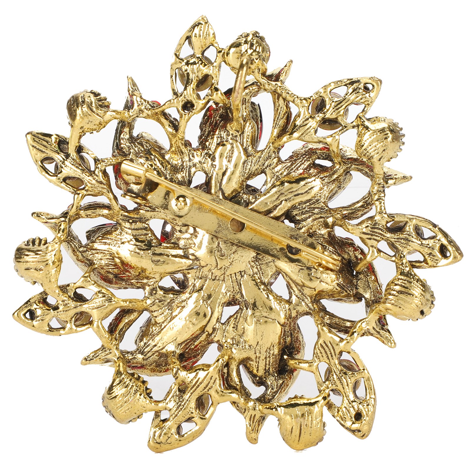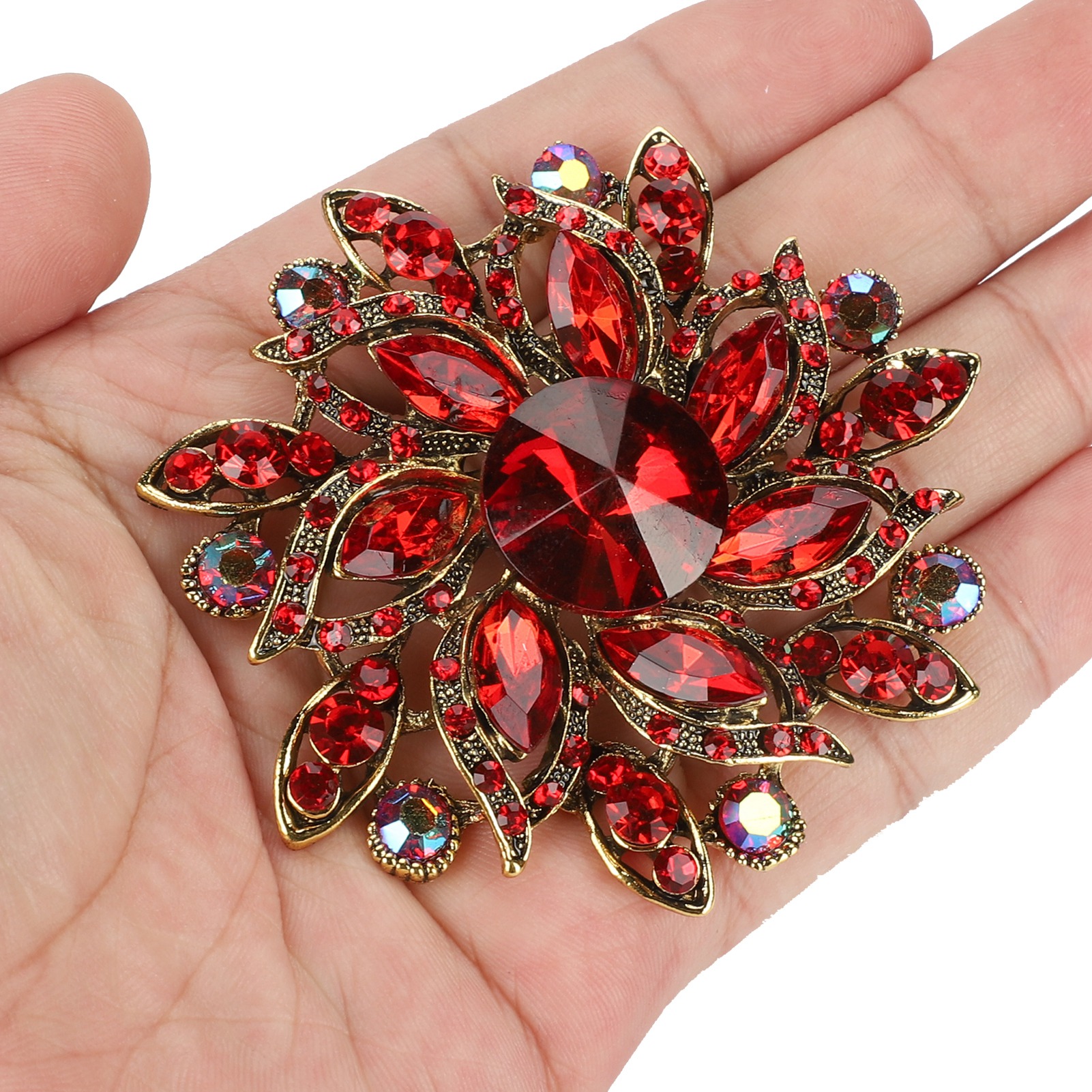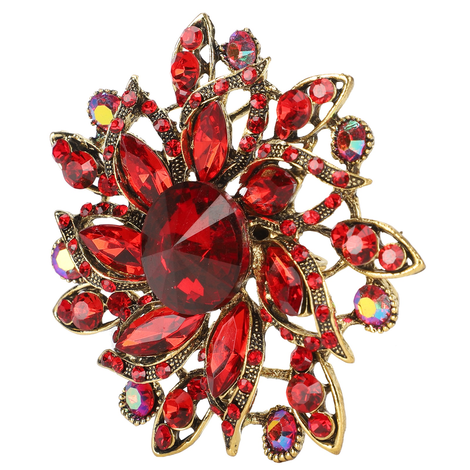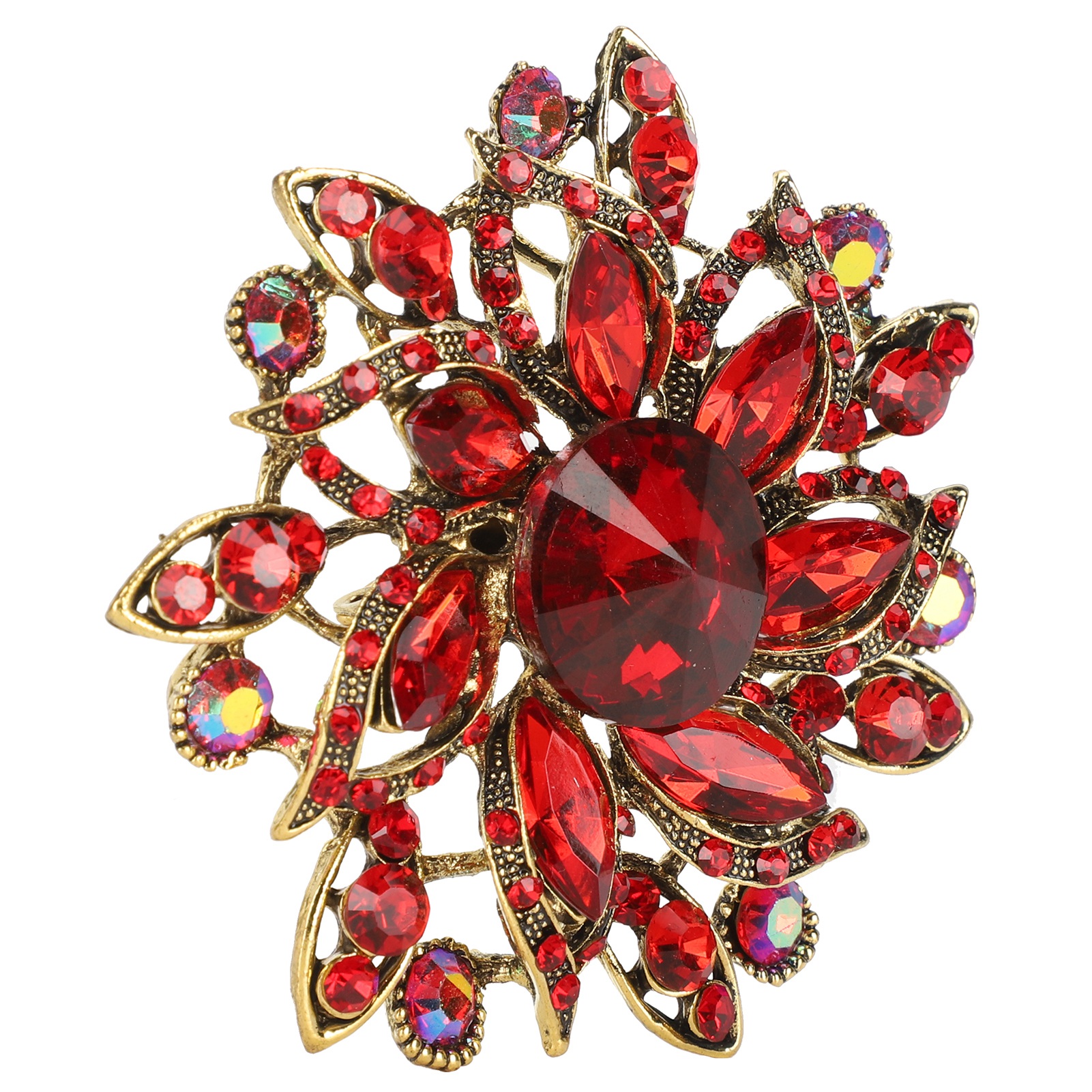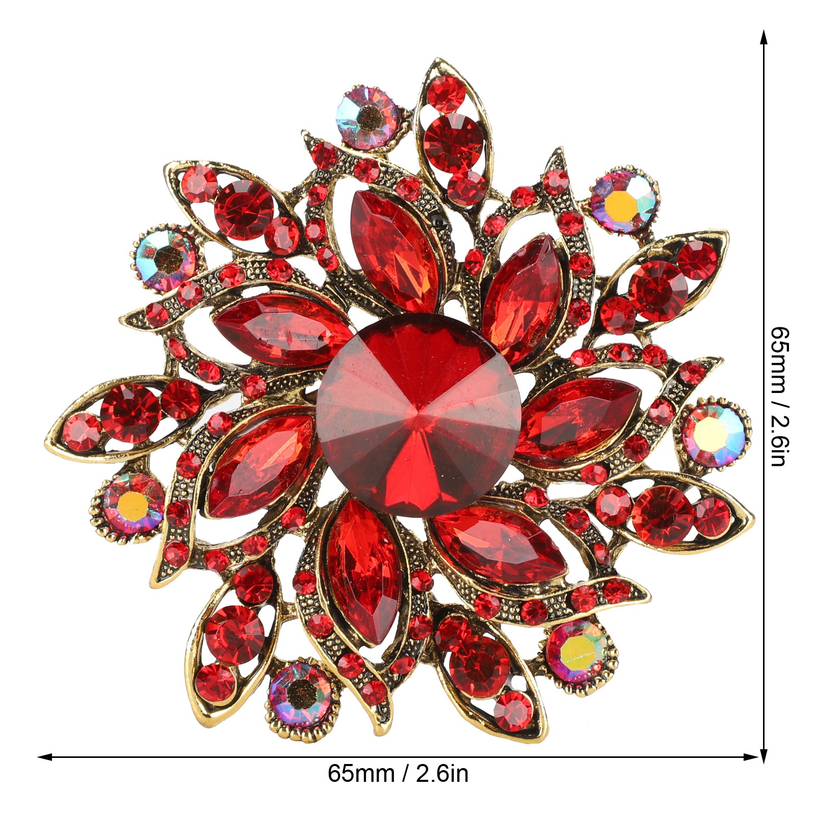 H复古镶钻水晶花朵胸针 红色合金衣饰别针套装 (2个装) 百搭创意西装外套胸花配饰 适用于日常派对礼品