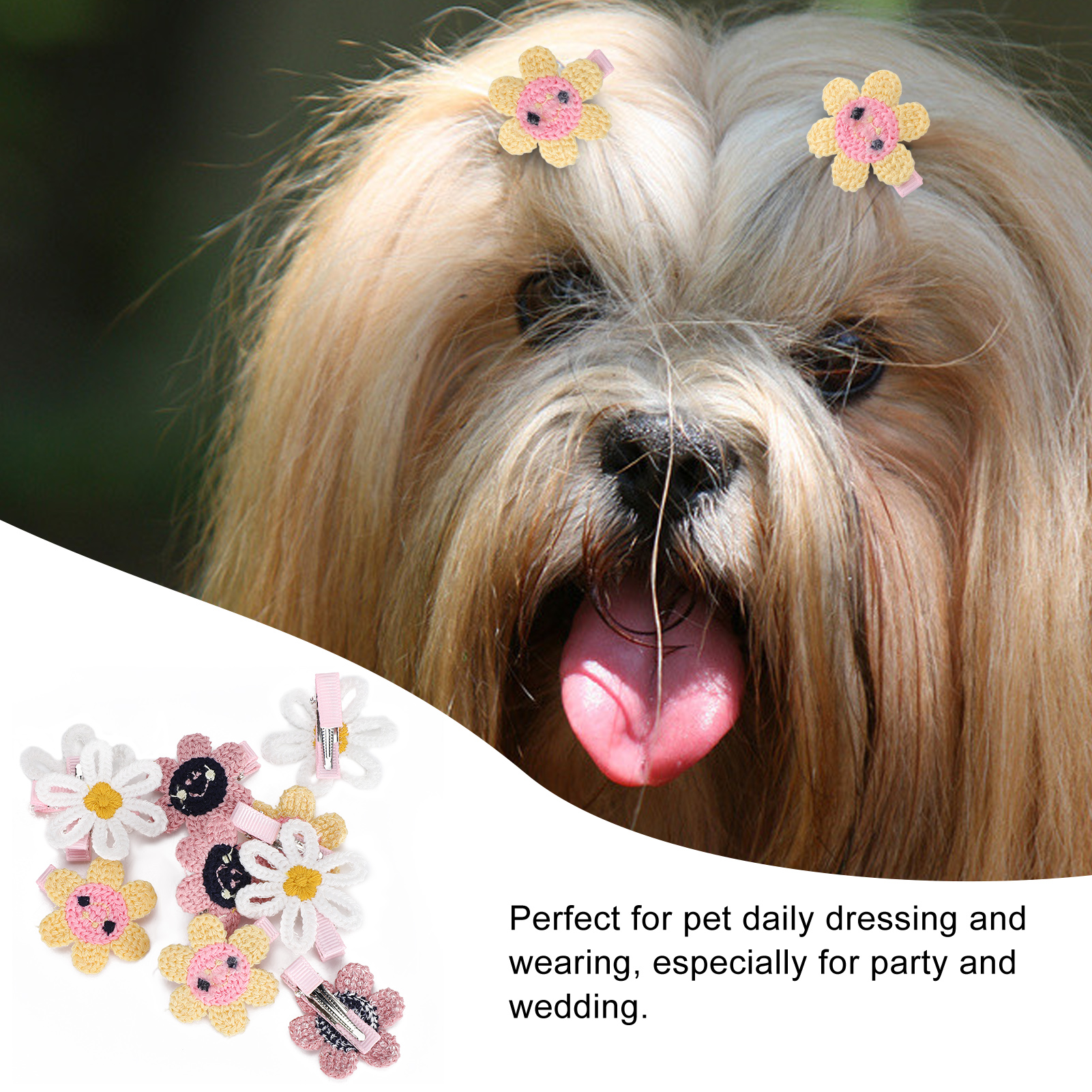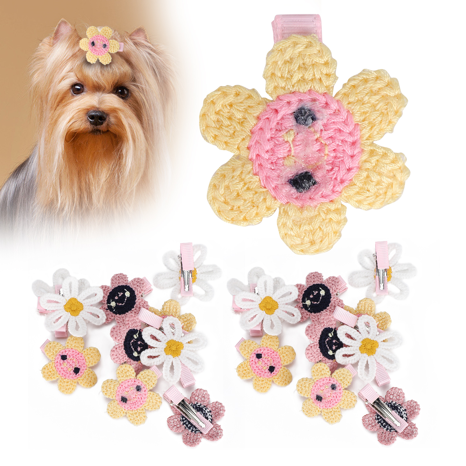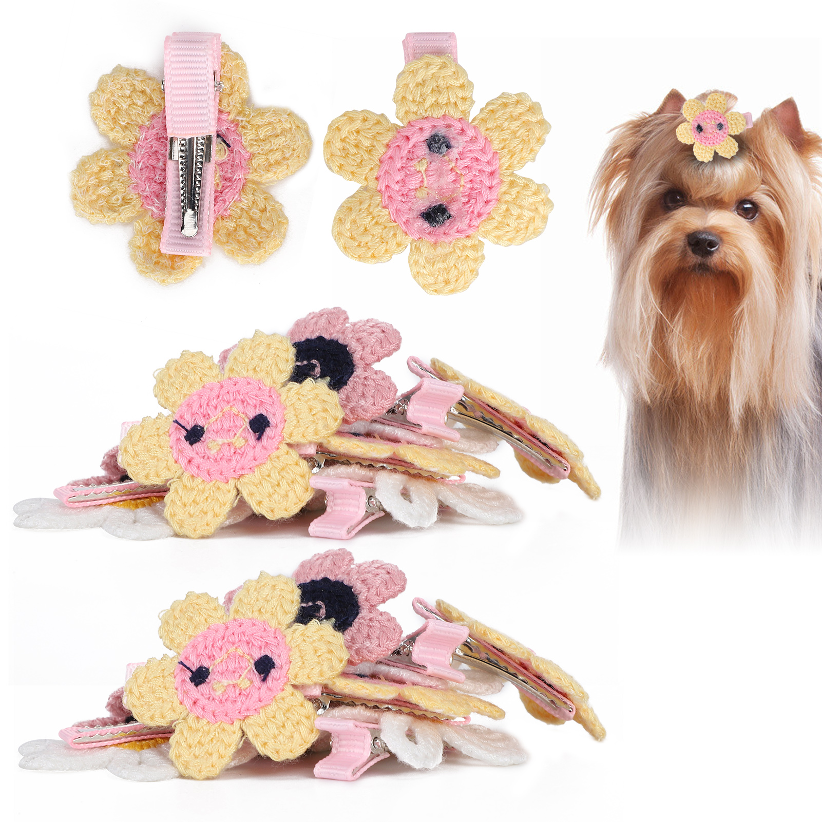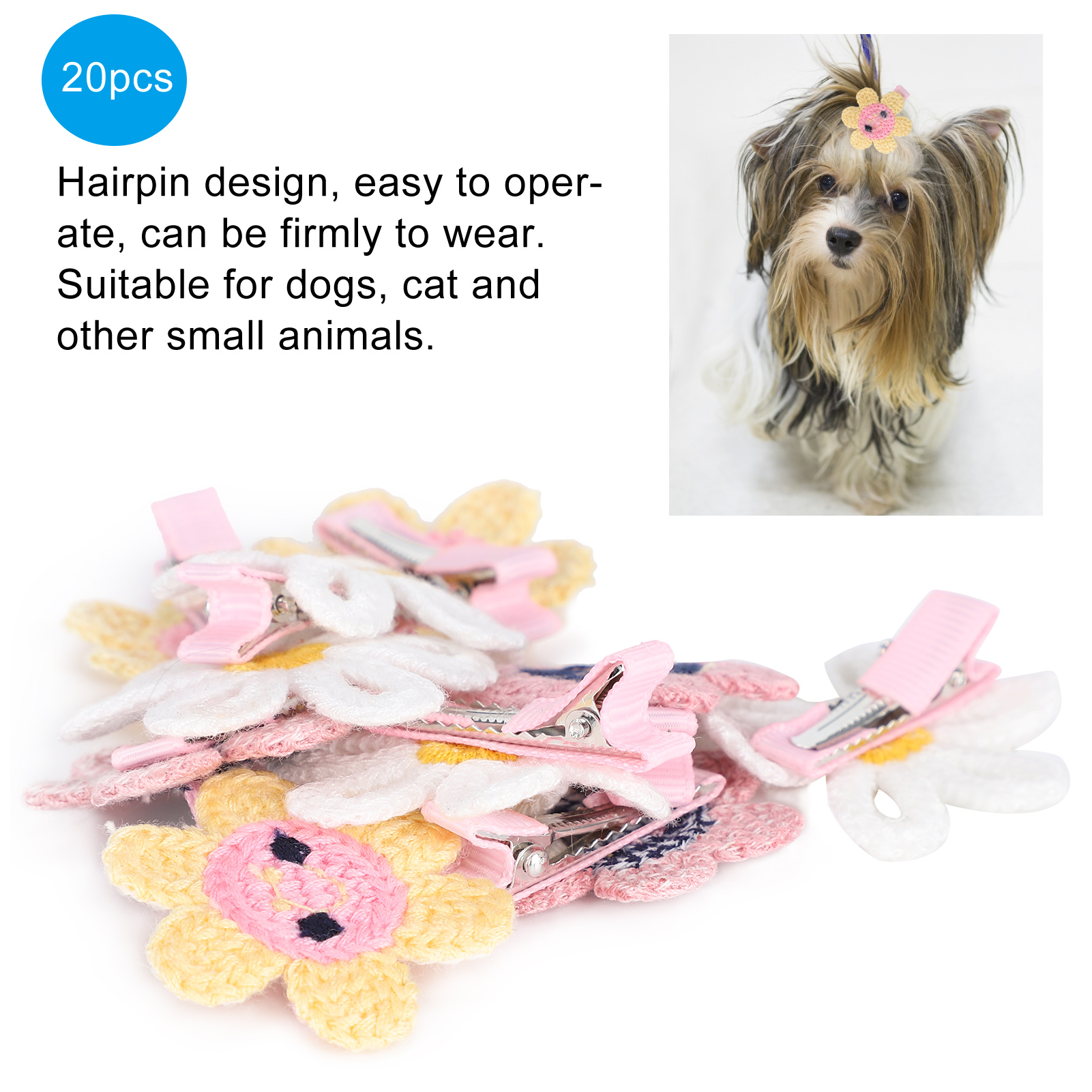 H 宠物向日葵发夹套装 20个装(颜色随机) 猫咪狗狗小花头饰 派对生日装扮 涤纶材质安全不易伤毛