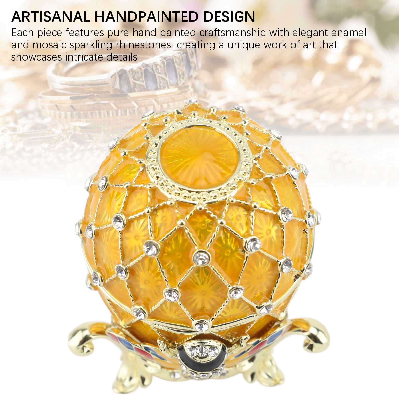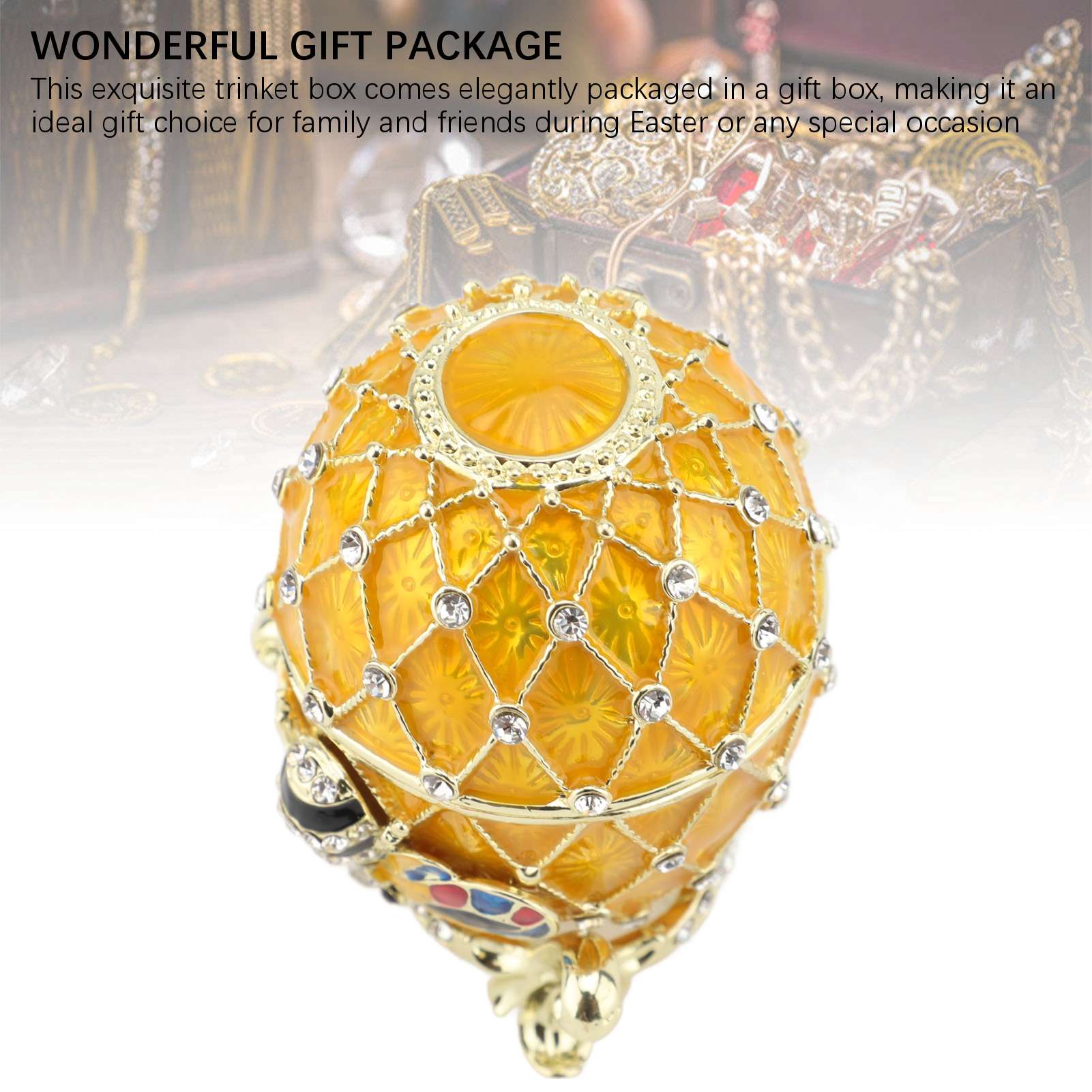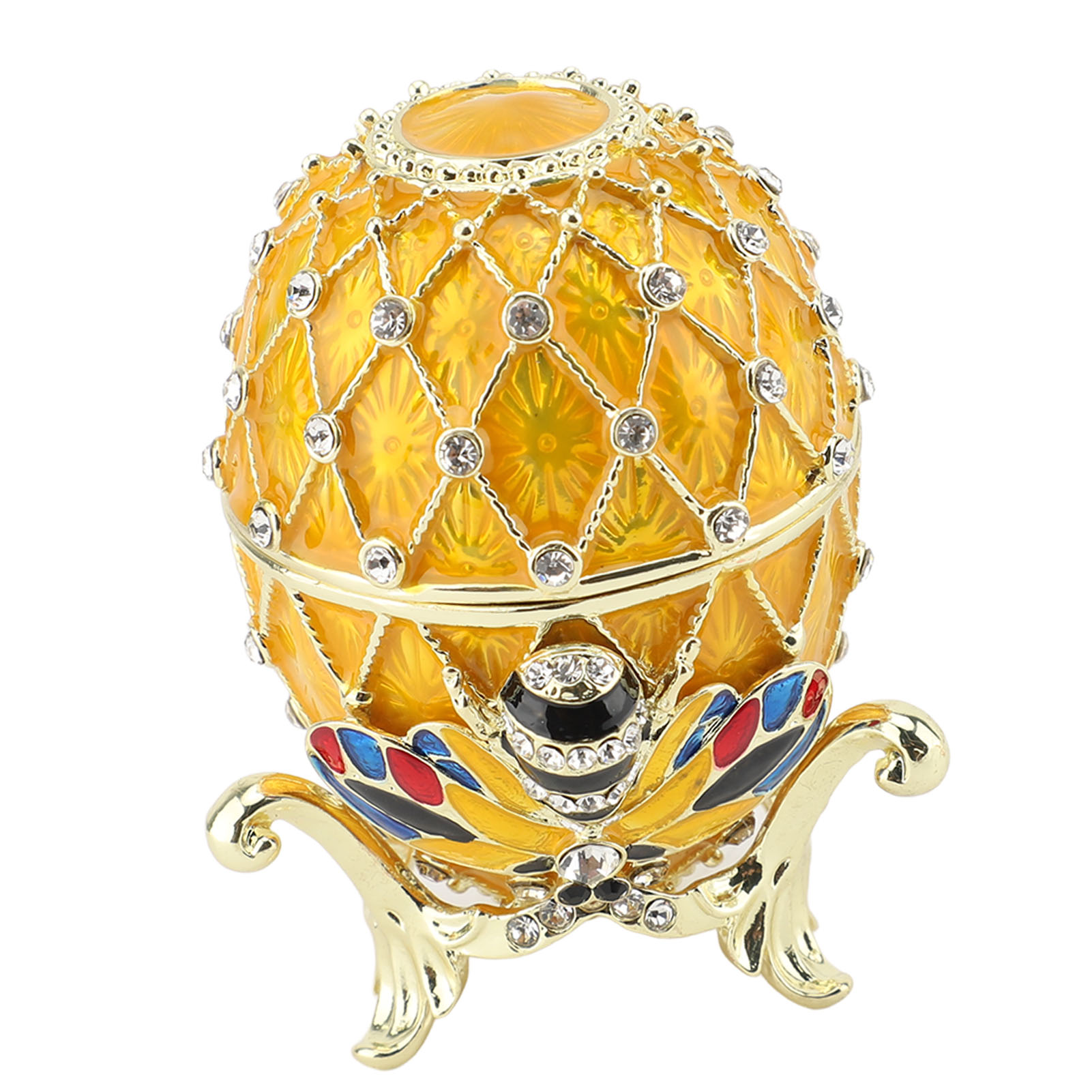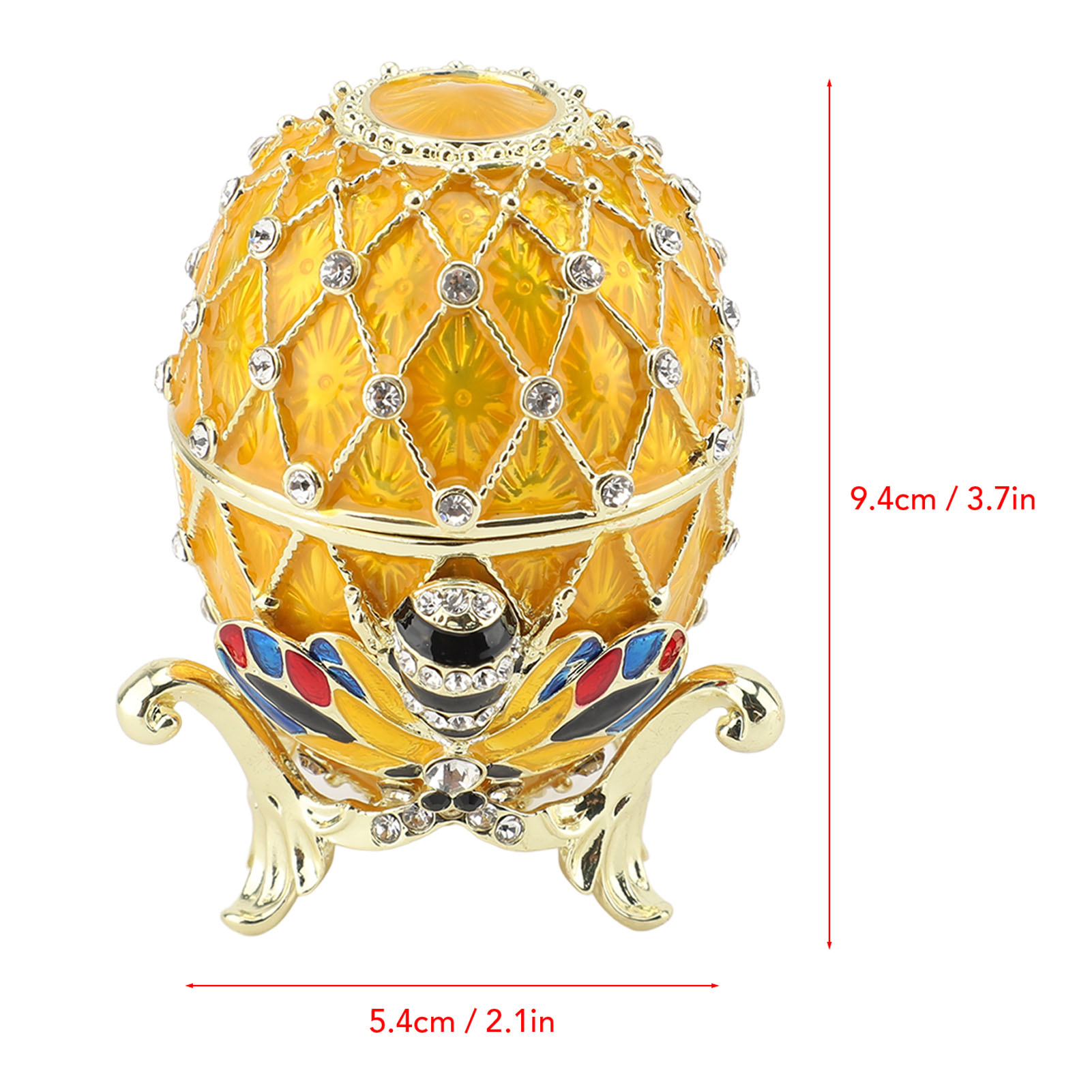 复古珐琅彩蛋首饰盒 合金镶钻铰链式摆件 手绘复活节礼物 桌面收纳盒装饰品 附礼品包装 (9.4x5.4cm)