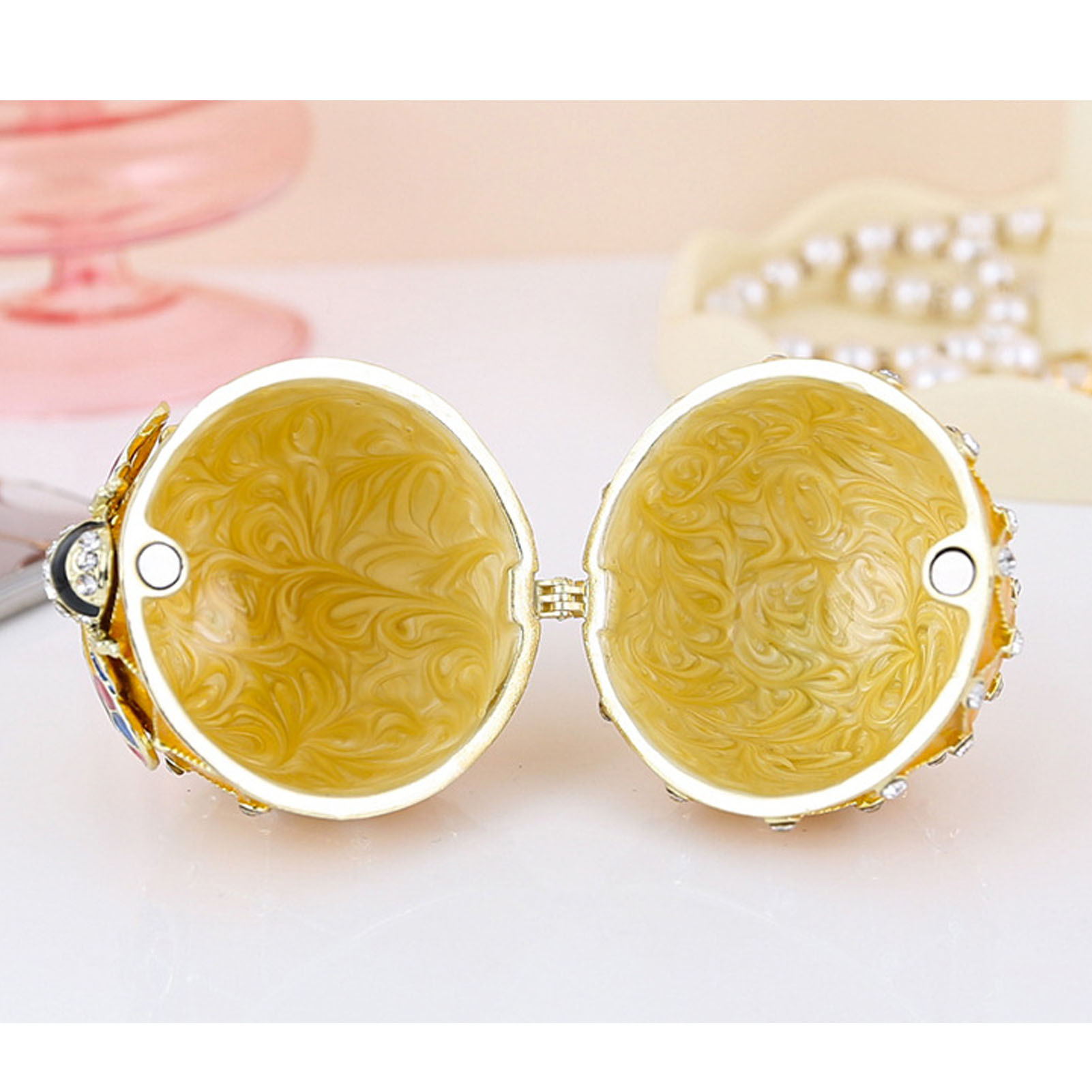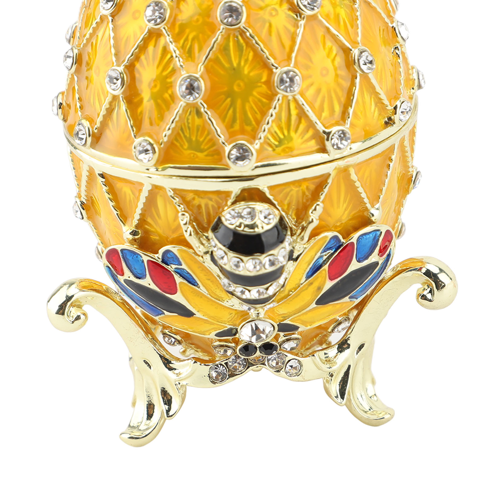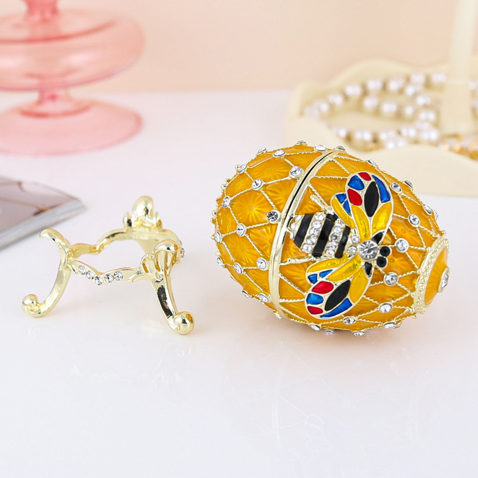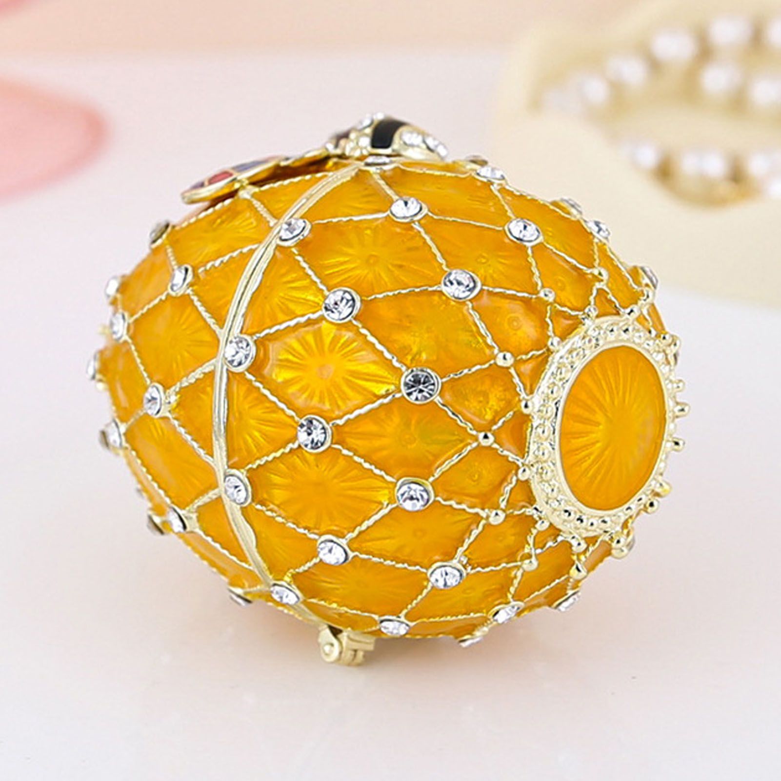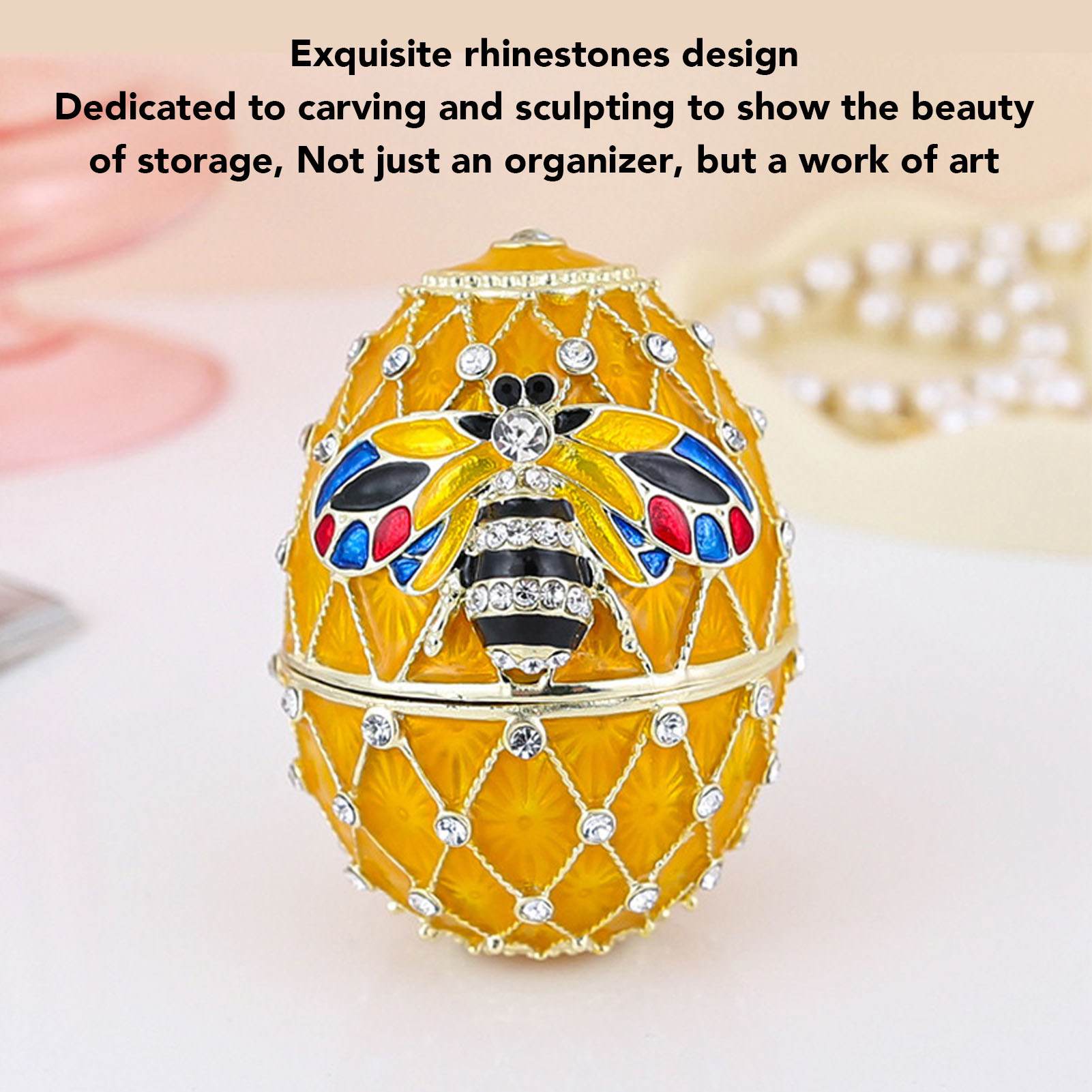复古珐琅彩蛋首饰盒 合金镶钻铰链式摆件 手绘复活节礼物 桌面收纳盒装饰品 附礼品包装 (9.4x5.4cm)