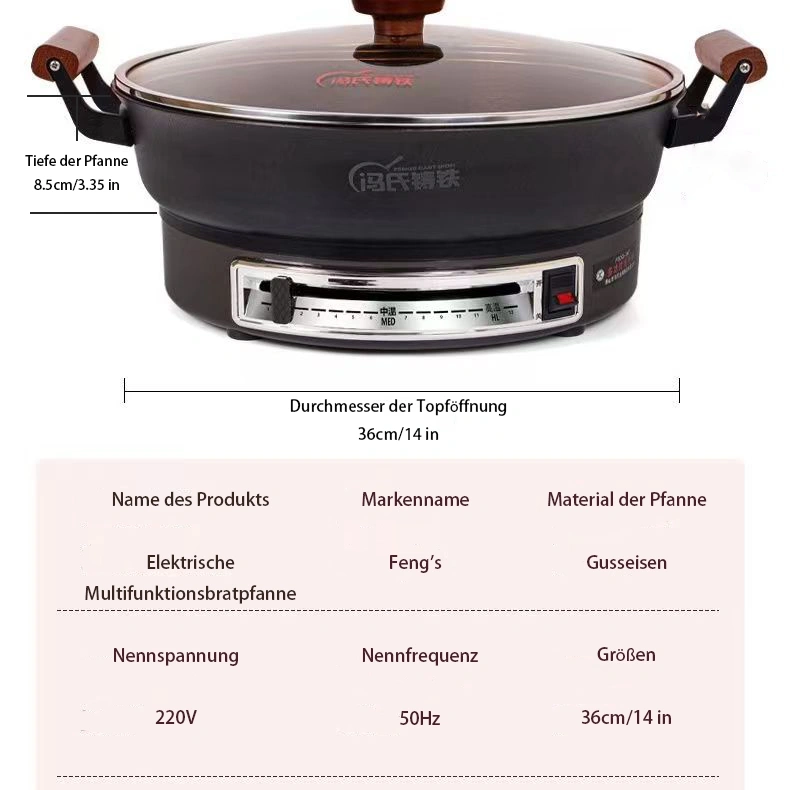 🔥 3mm加厚铸铁锅体:导热快不留冷区