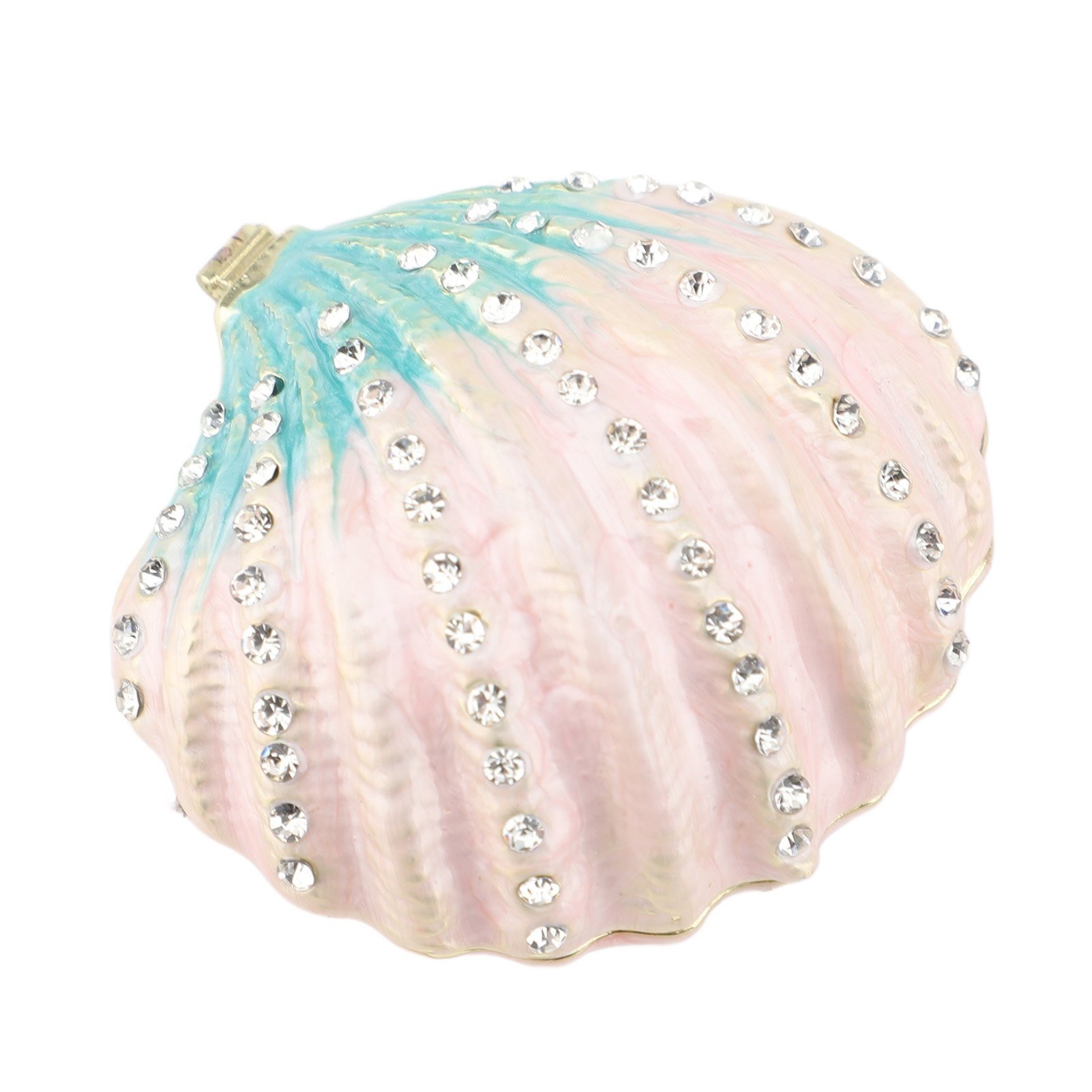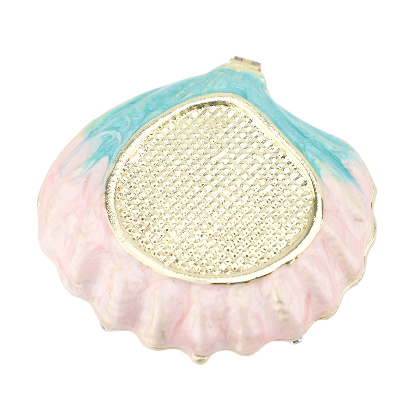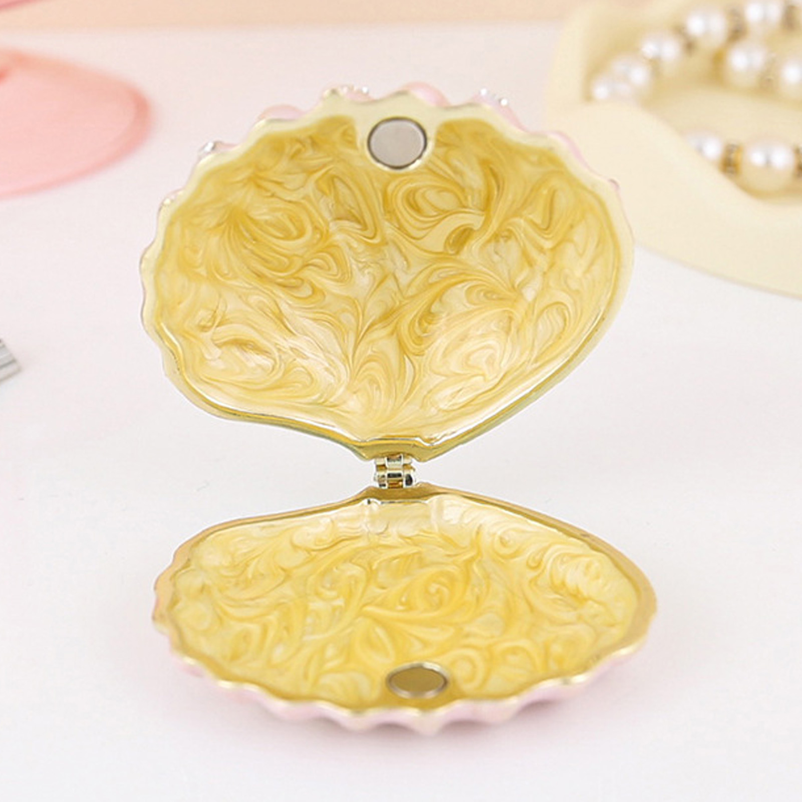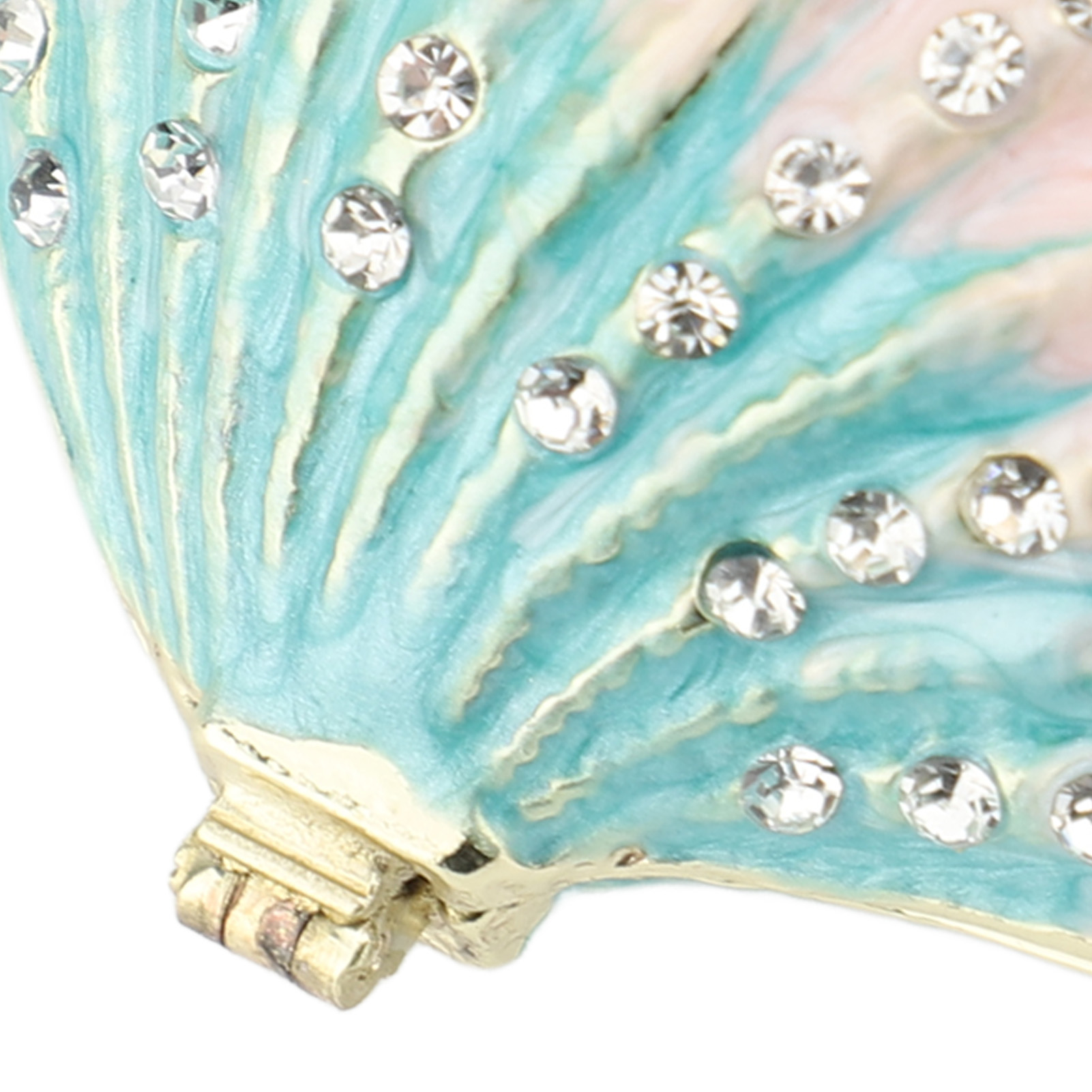 手绘珐琅贝壳首饰盒 粉色合金镶钻铰链珠宝收纳盒 复古桌面装饰摆件 女友生日情人节礼物 (约5.8cm)