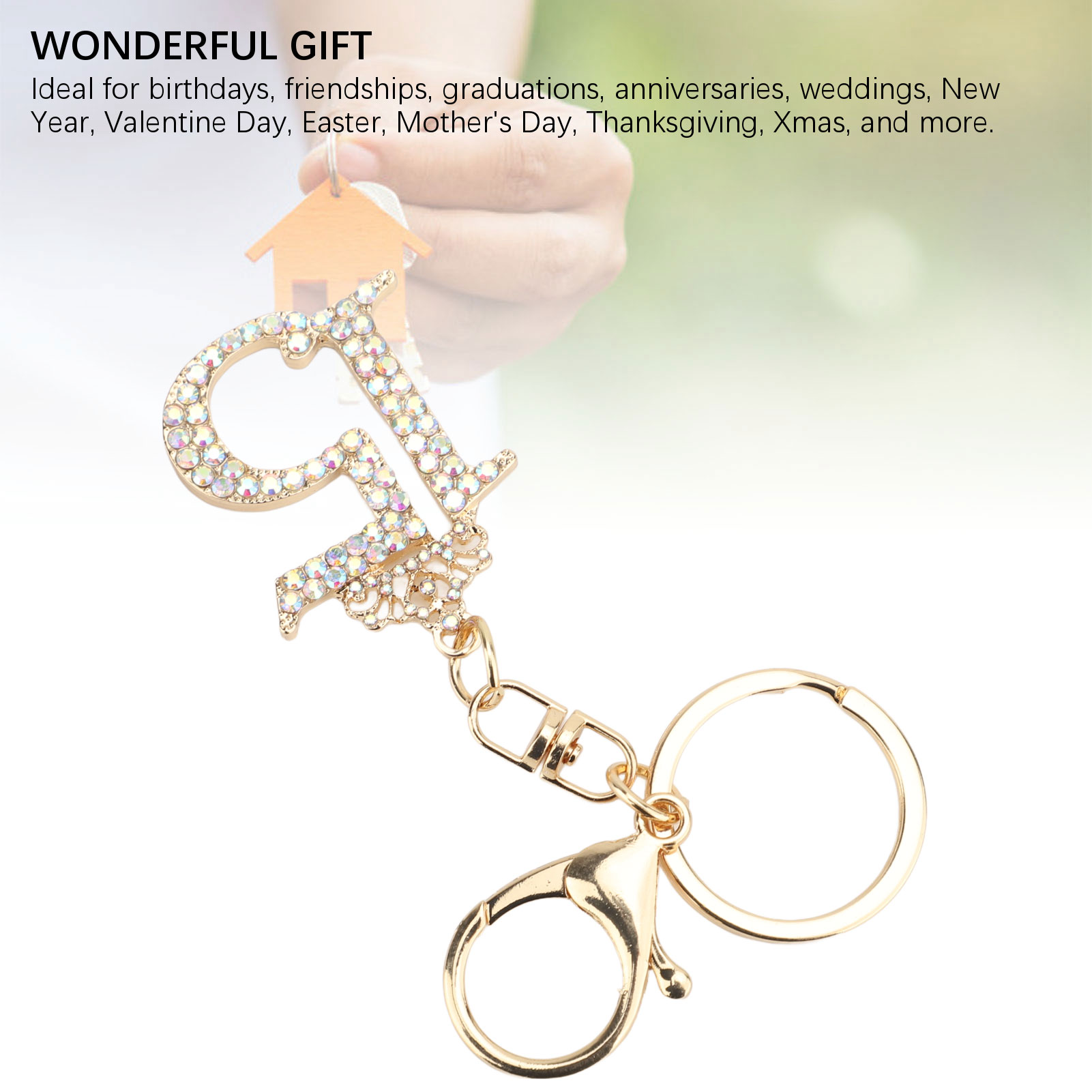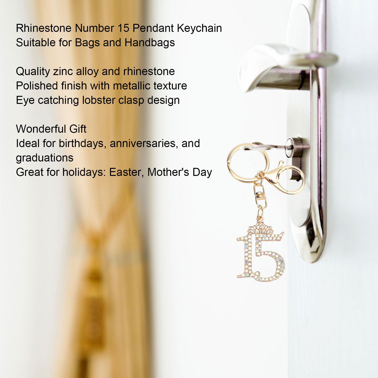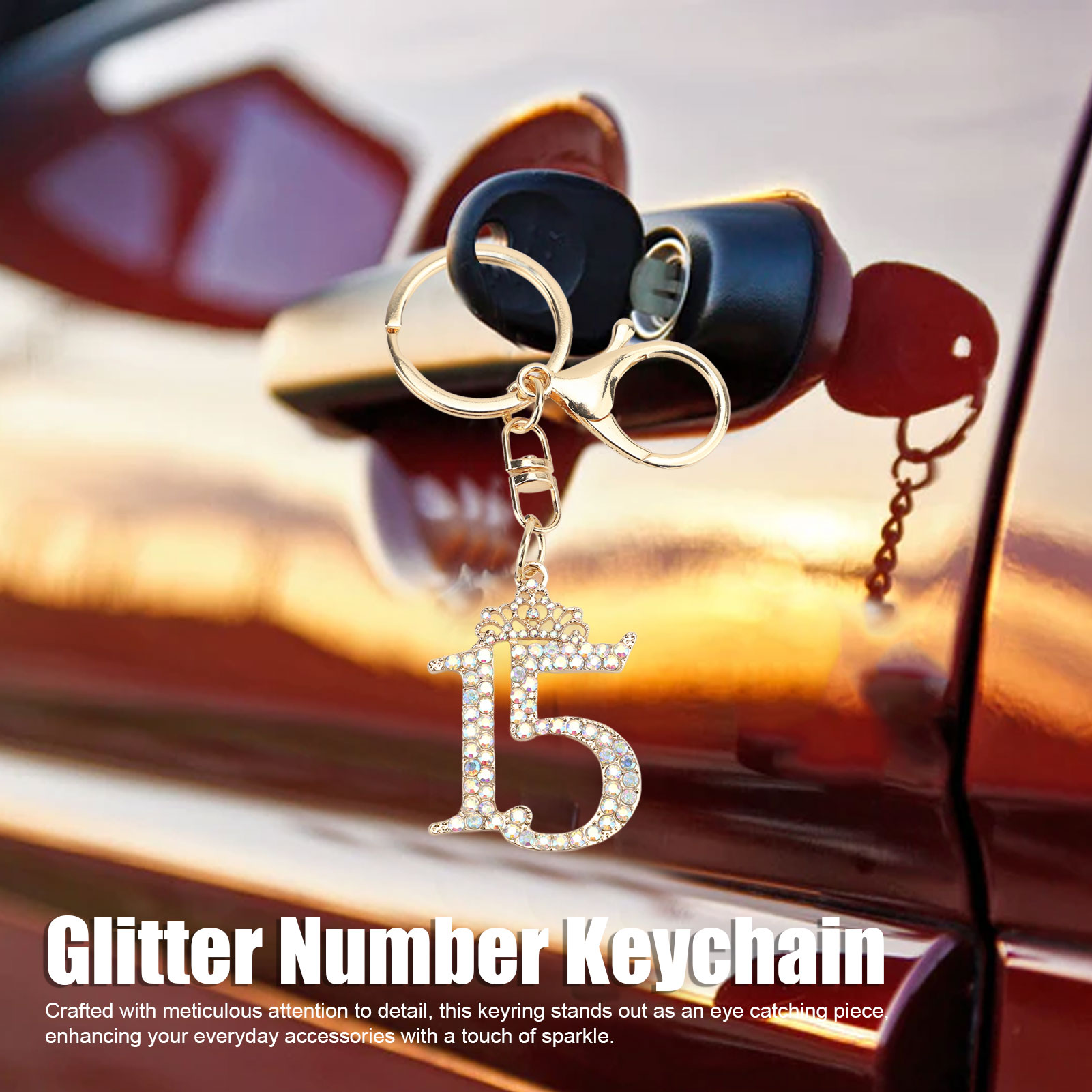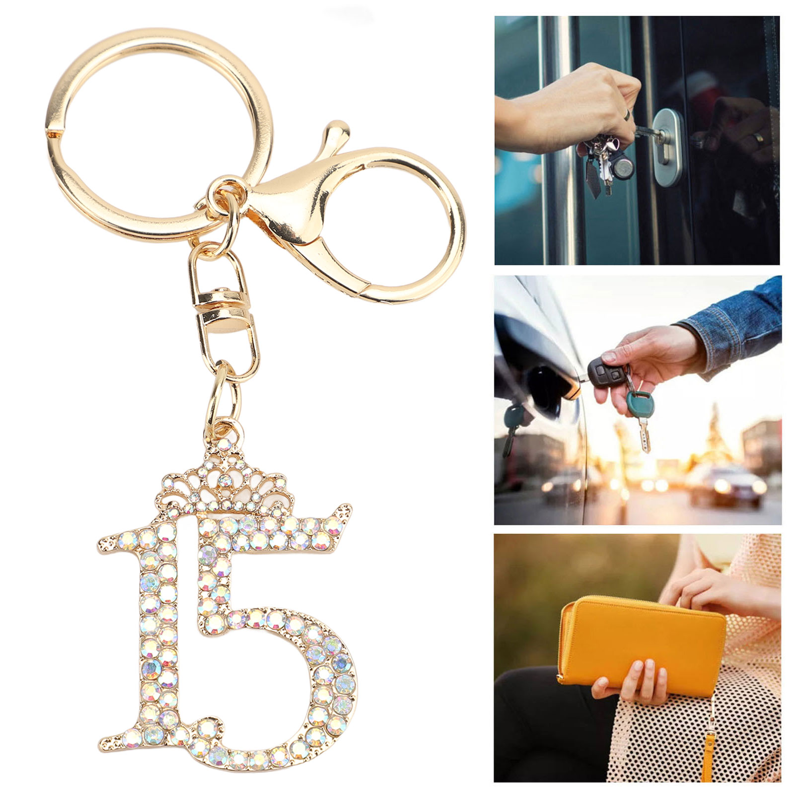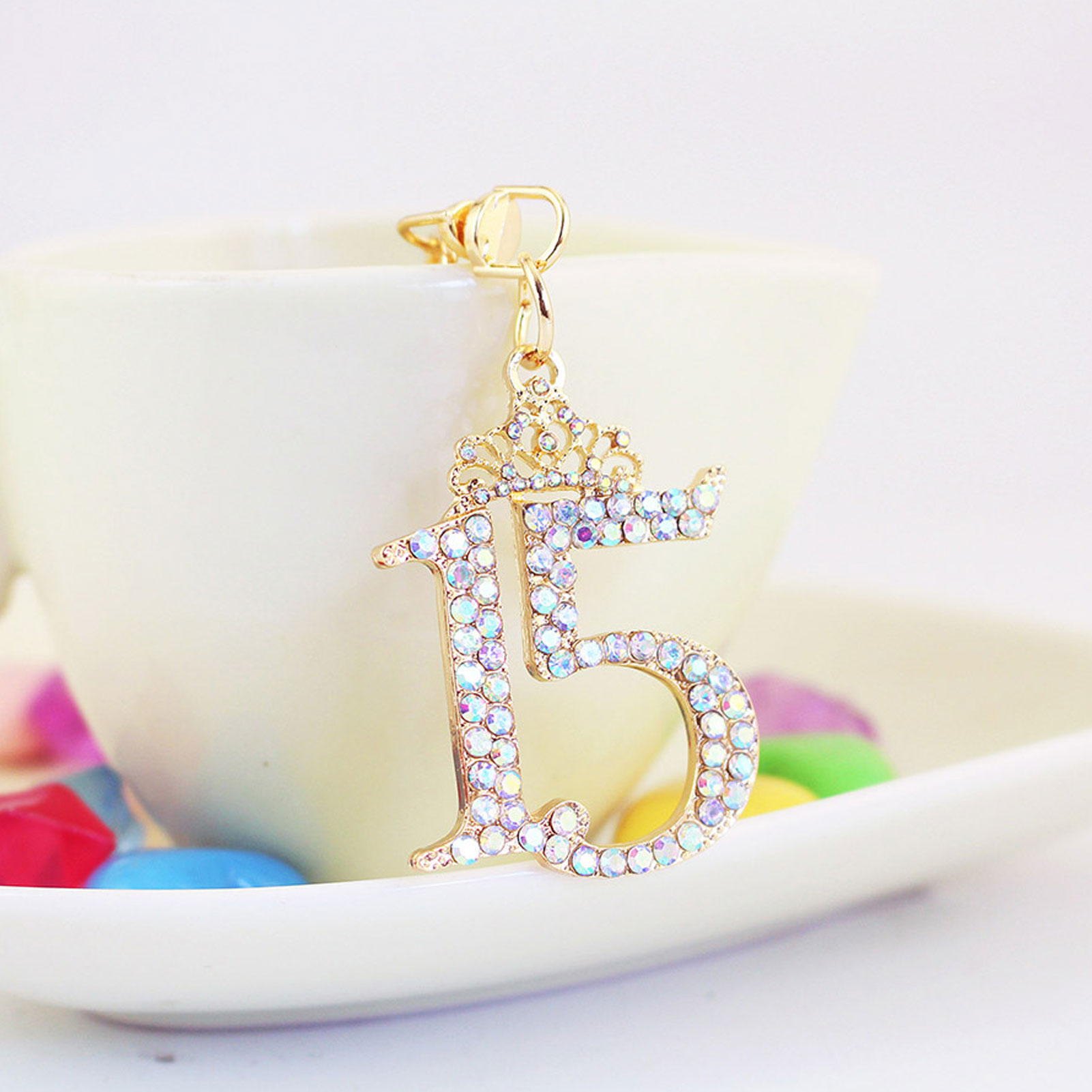 绿色数字15钥匙扣 镶钻水晶数字挂件 精致女生生日礼物 闺蜜纪念日礼品 包包钥匙链饰品