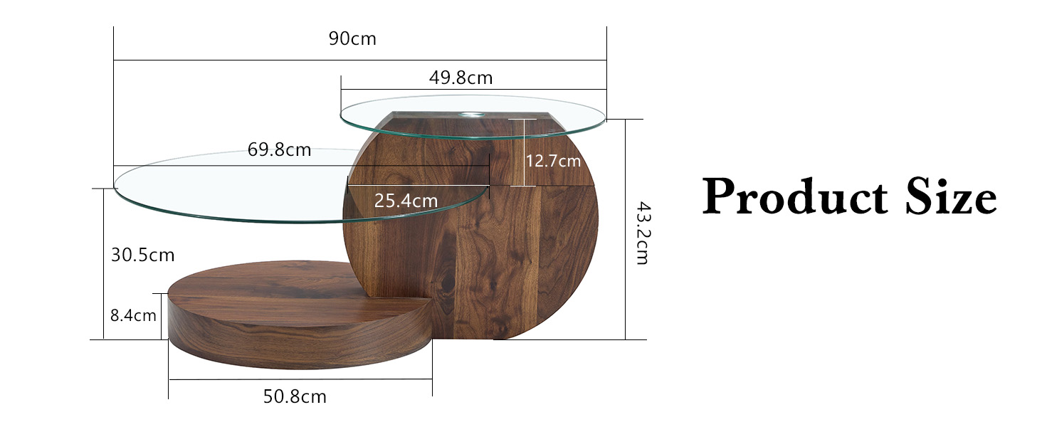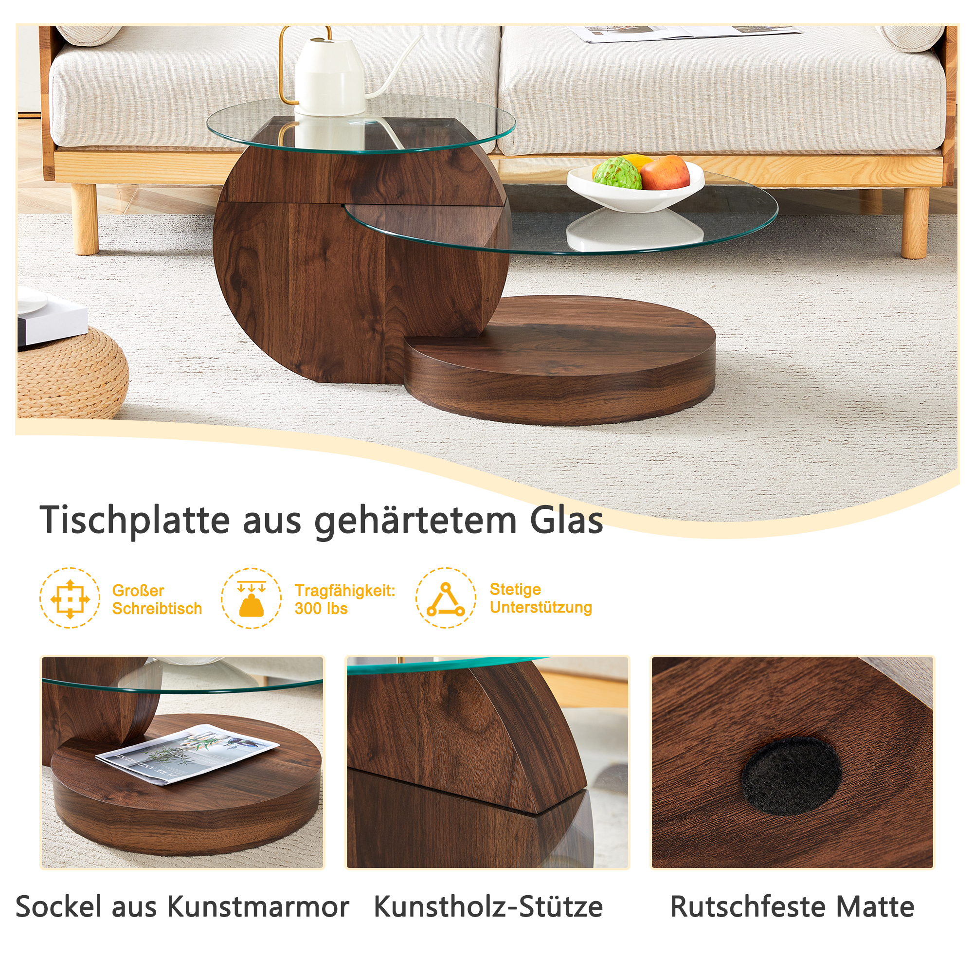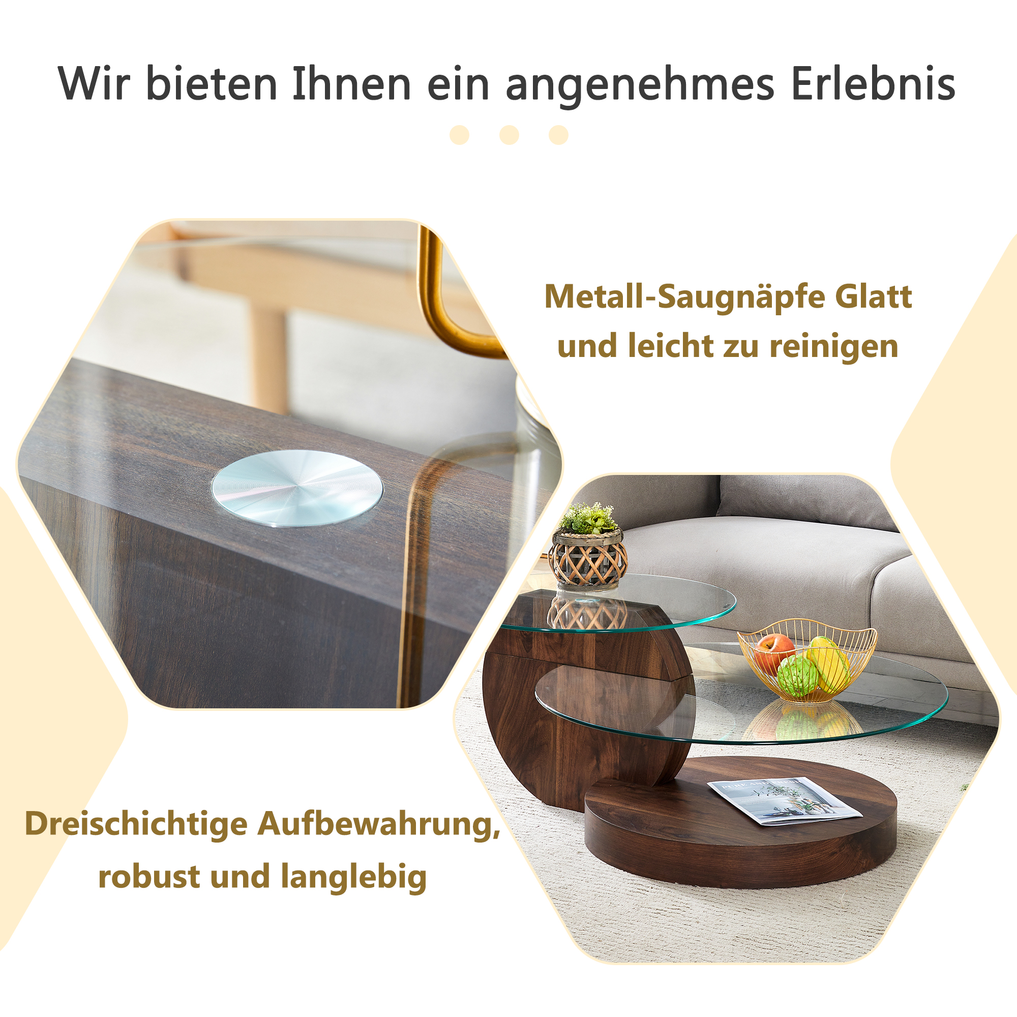 现代简约茶几 轻奢钢化玻璃桌面 多层储物设计茶几 稳固MDF基架 适用于客厅沙发边 小户型家居 (黑色/胡桃木色双色可选)