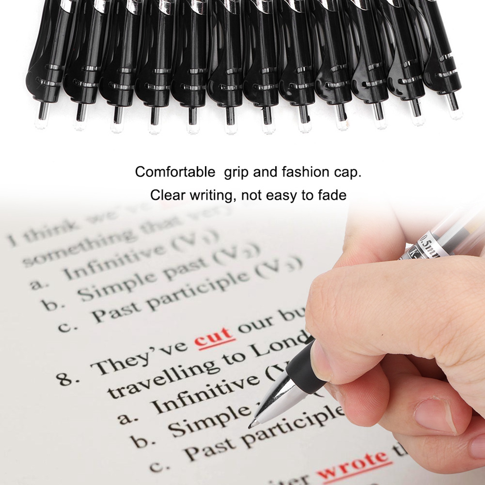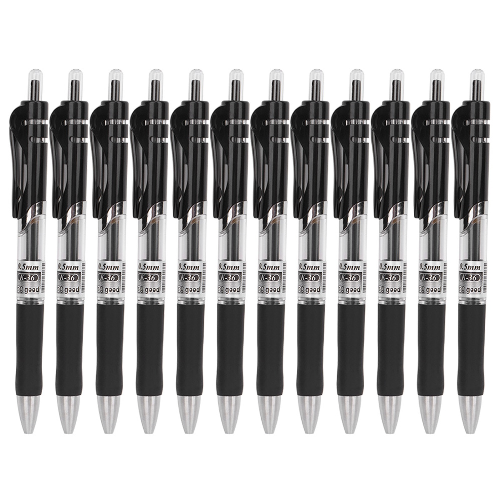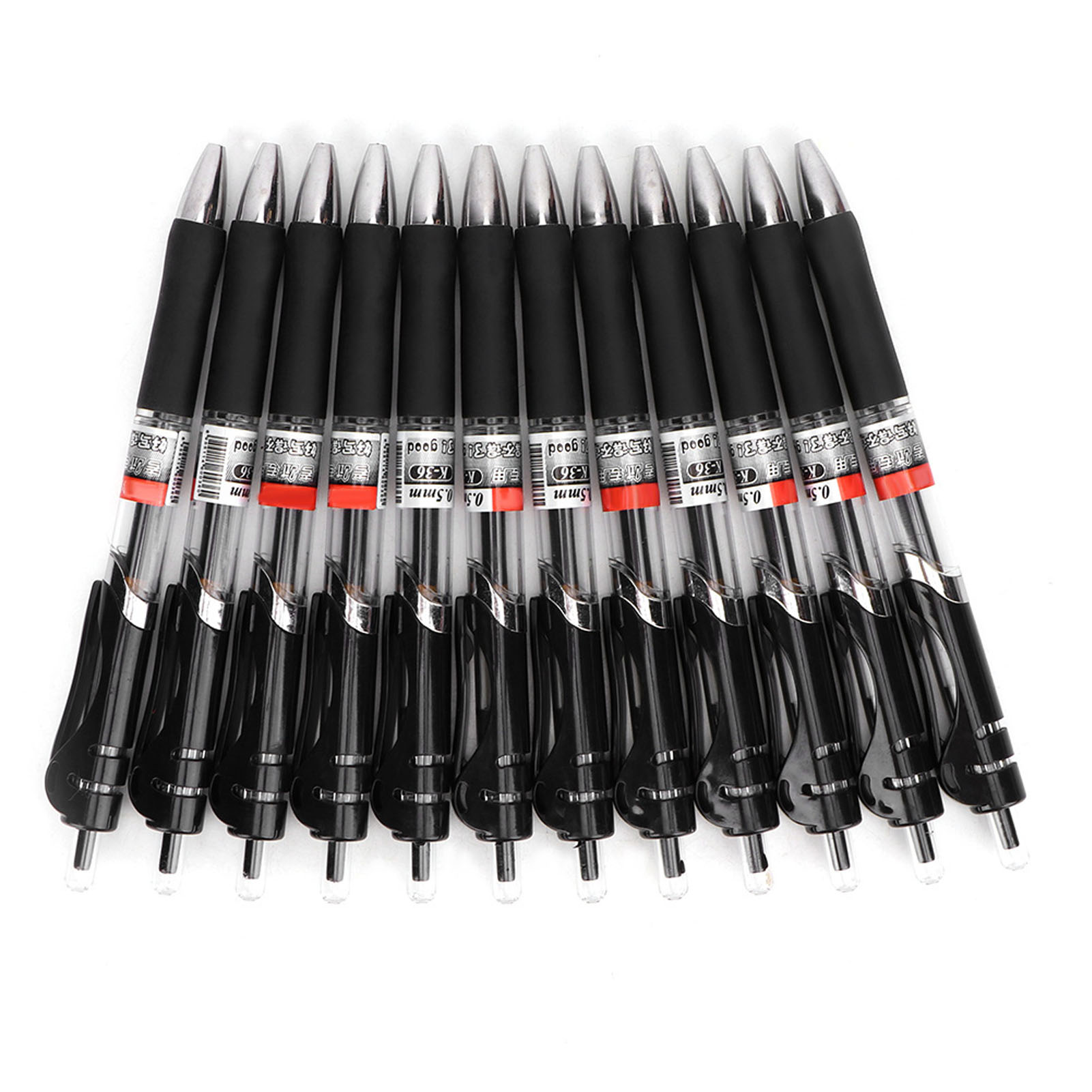 【12支装】0.5mm按动中性笔 碳素黑色大容量子弹头签字笔 进口笔尖书写顺滑不断墨 舒适笔握办公考试专用水笔(颜色可选)