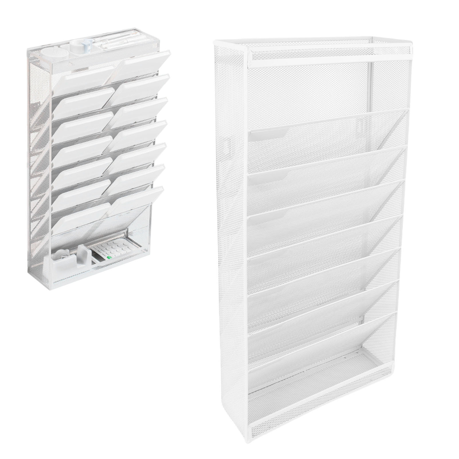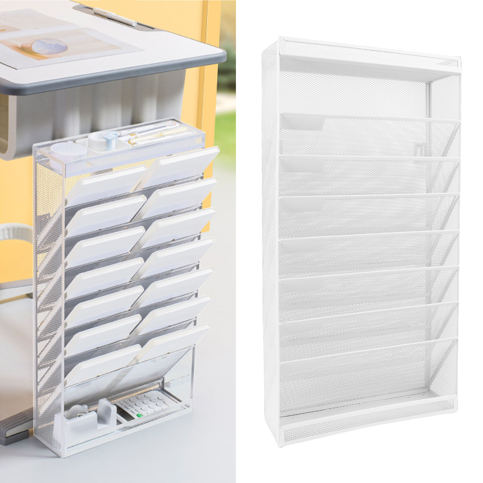 【可移动可悬挂】9层桌边置物架 带轮落地书架办公室收纳架 铁艺网格文件杂志架 免打孔安装 适用办公居家