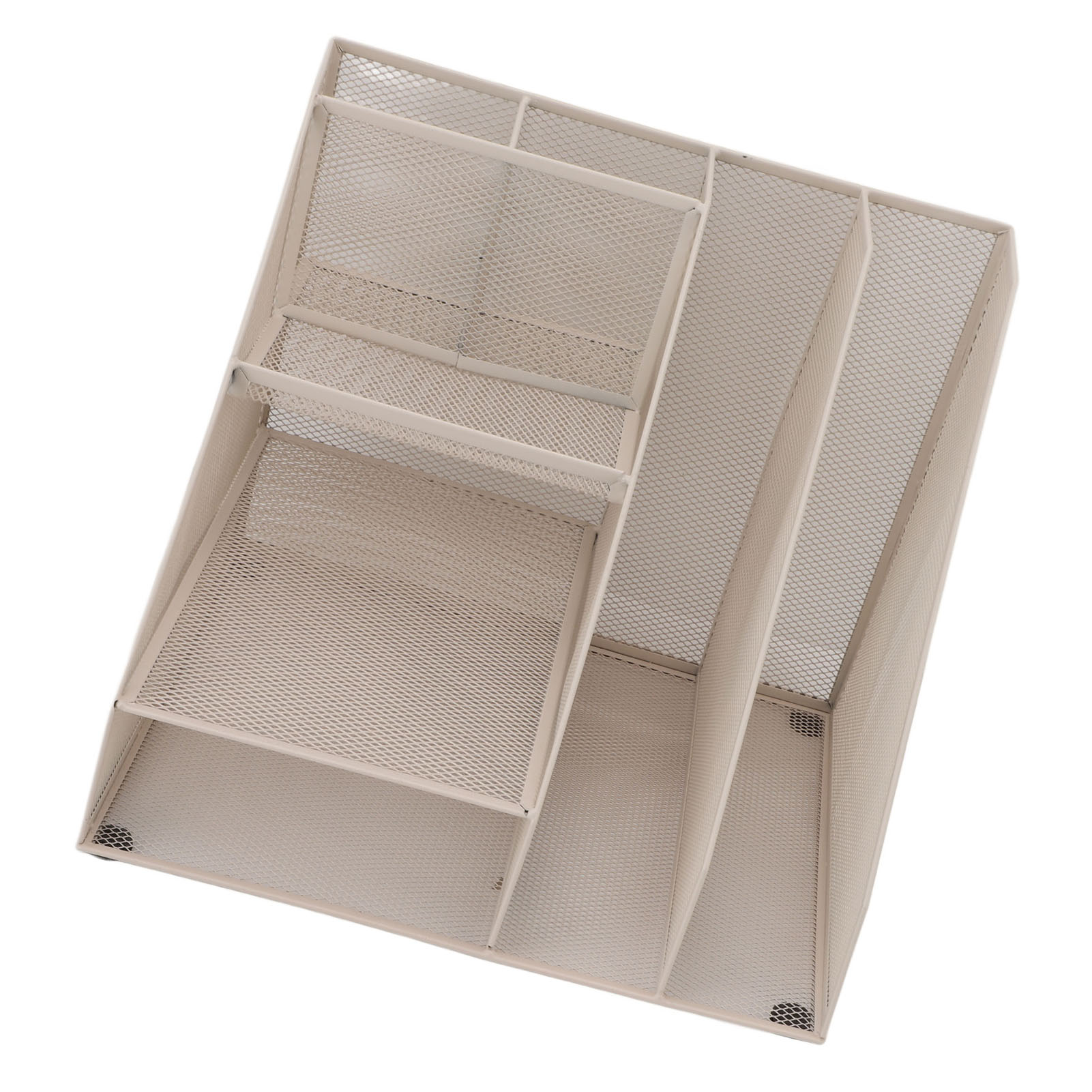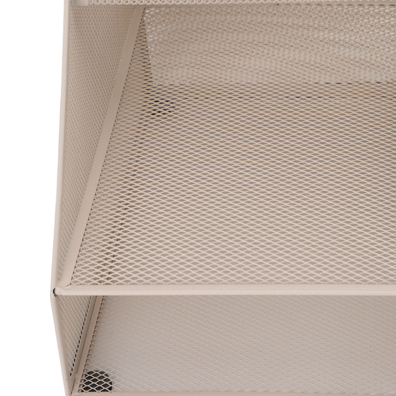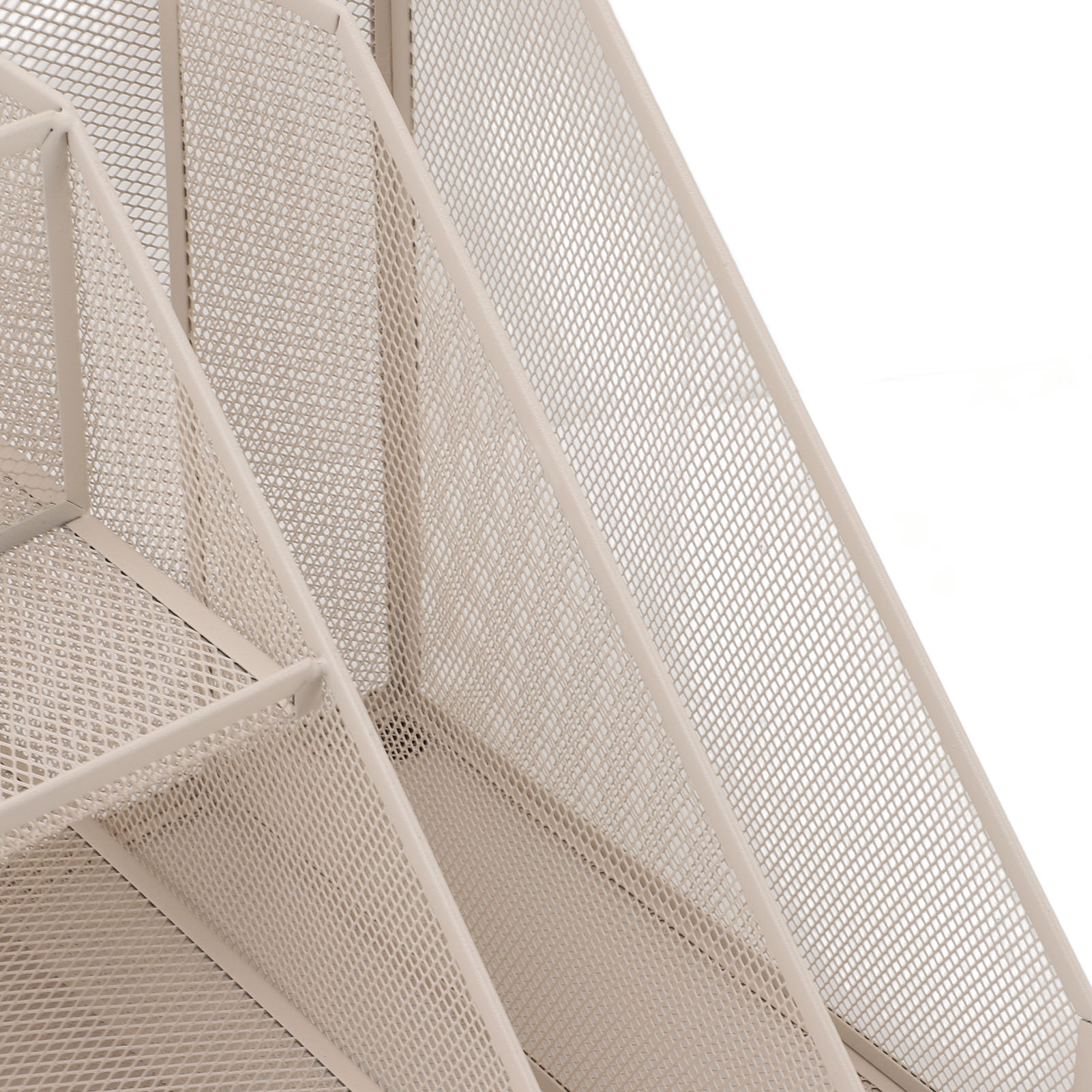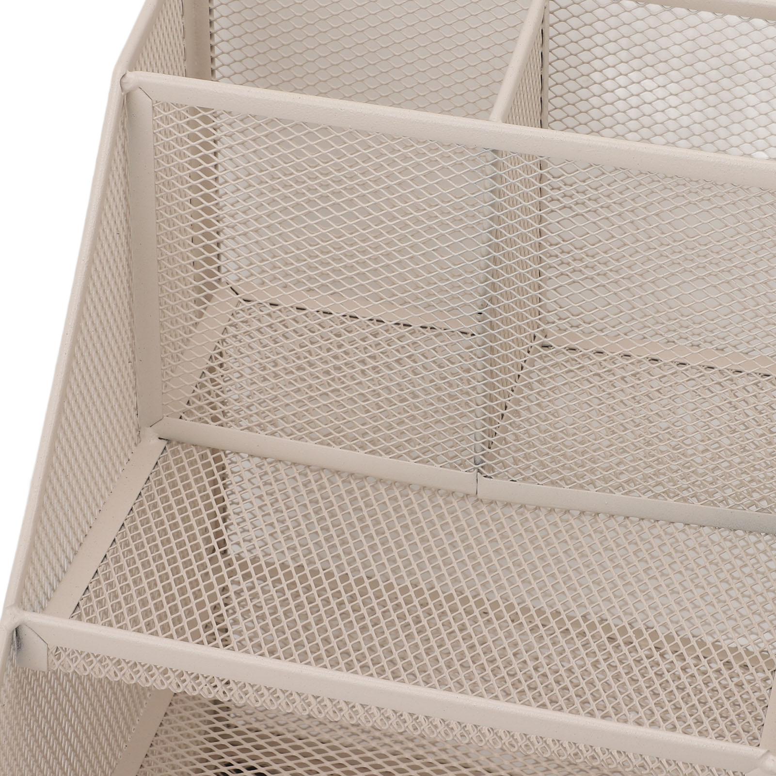 【升级款】白色桌面文件架 两栏三层金属网格资料架 立式A4文件夹书立 带笔筒办公桌收纳盒