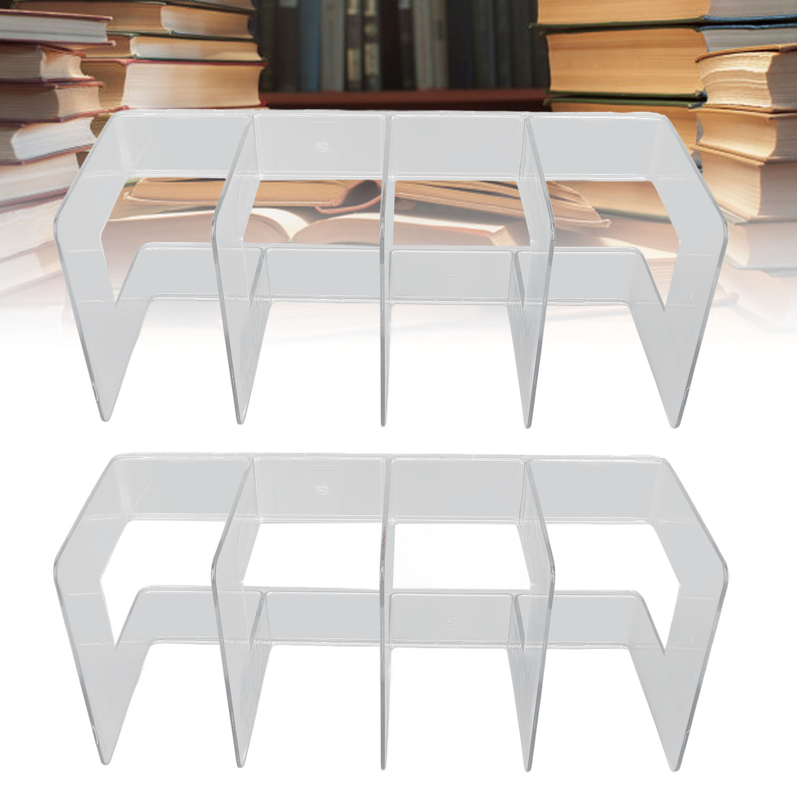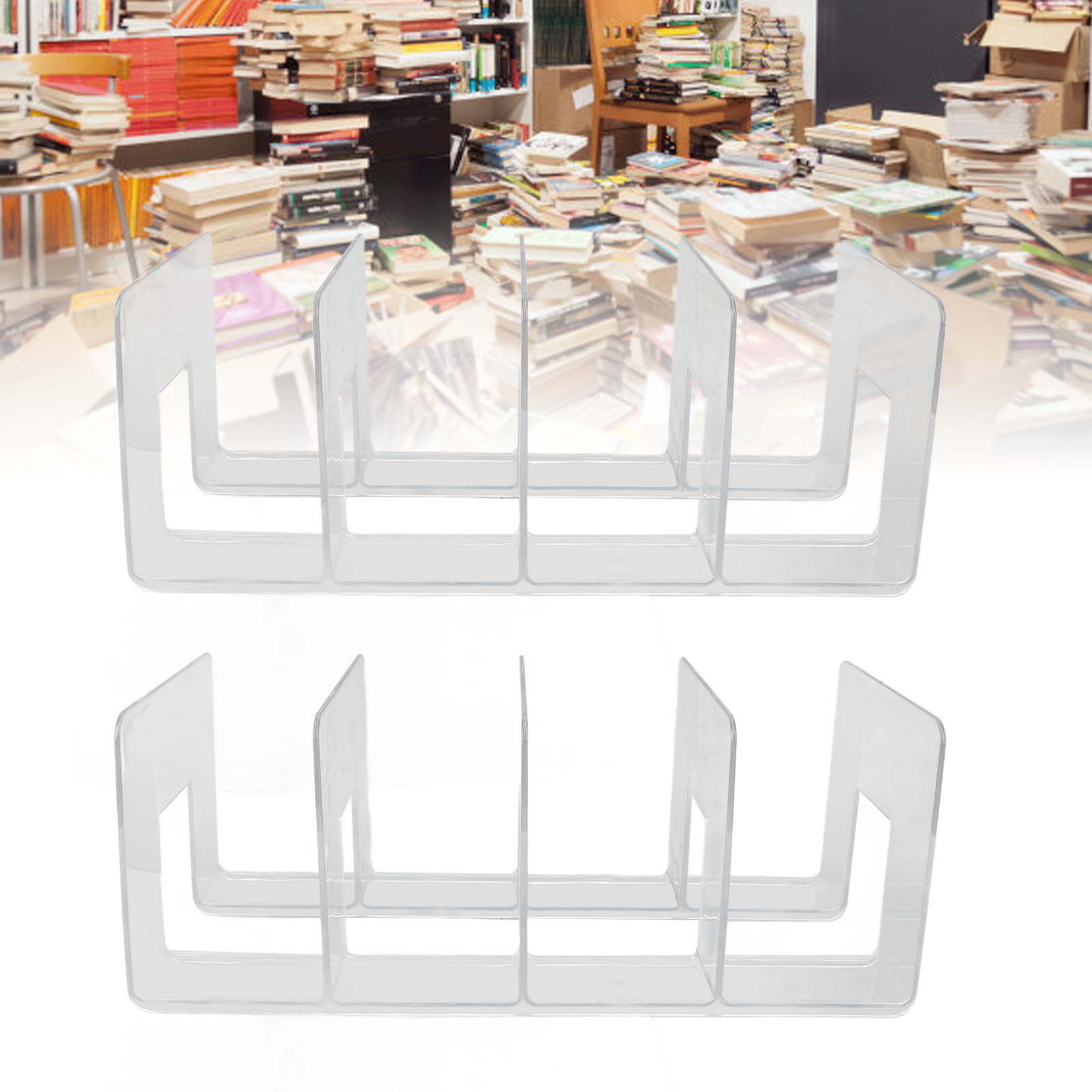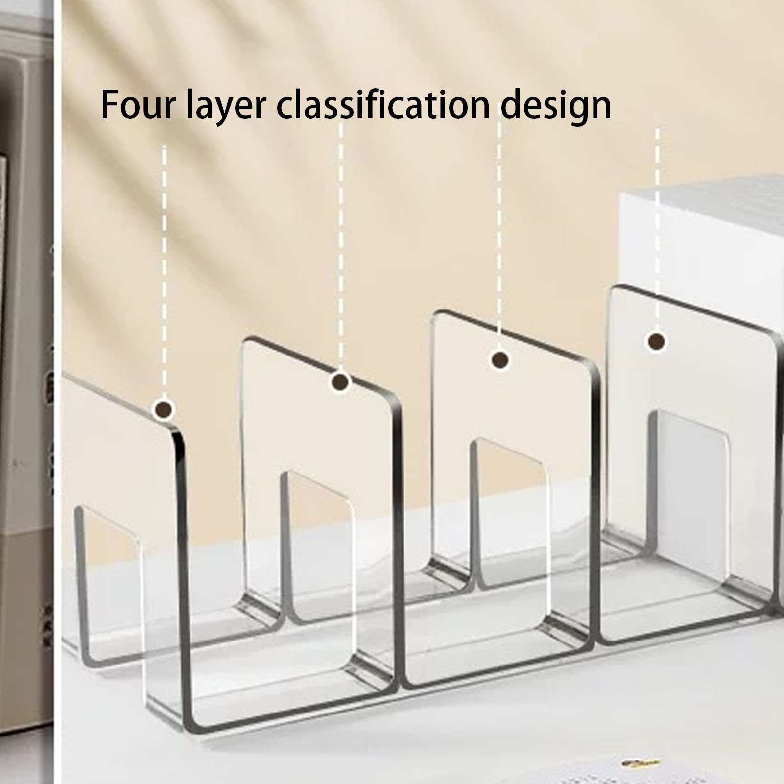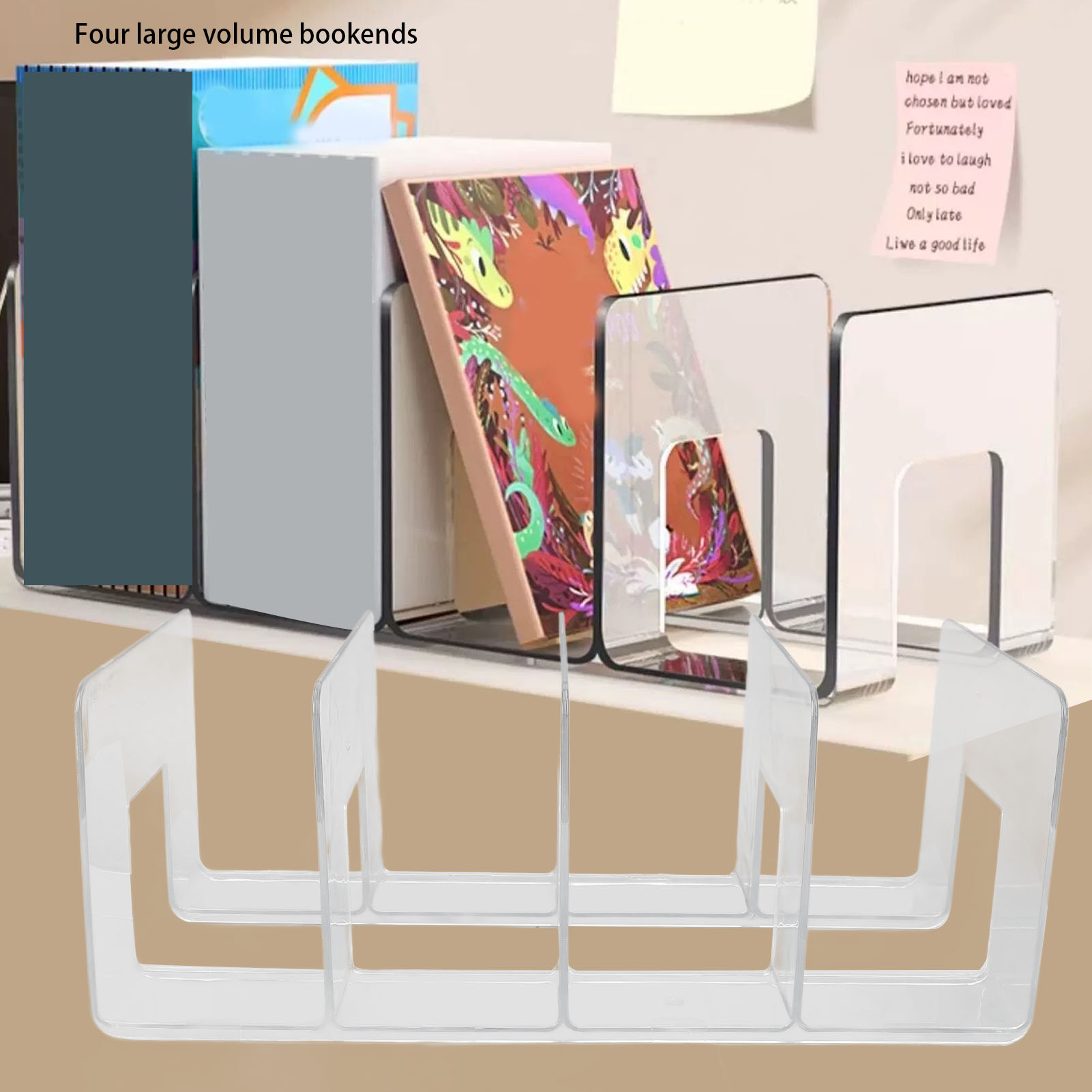 【2个装|加厚3.2mm】大号亚克力书立 透明防滑书本收纳架 立式四联文件框 办公室桌面档案架 镂空通风更稳固