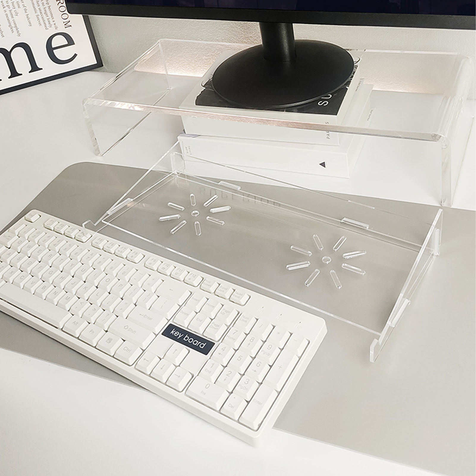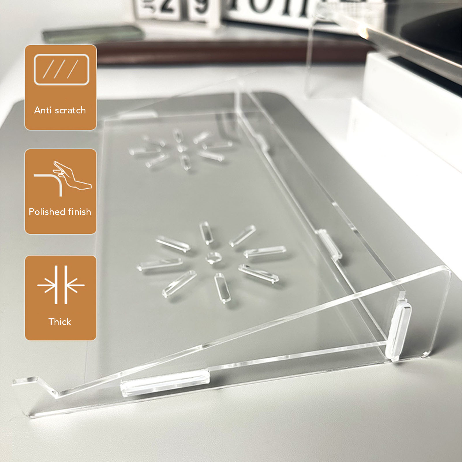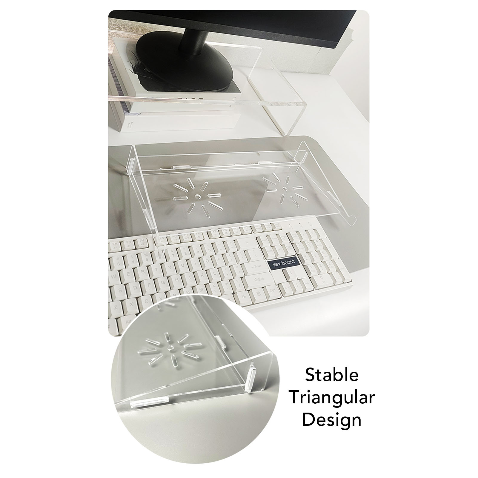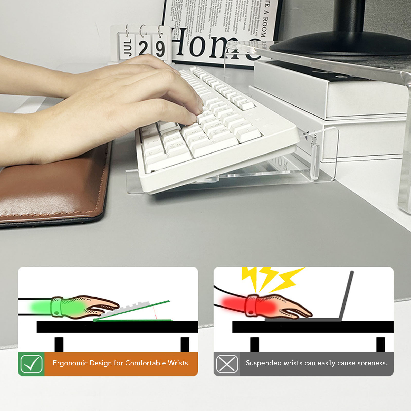 可倾斜亚克力键盘支架 带棕色腕垫 透明可拆卸DIY组装 符合人体工学设计打字 缓解手腕酸痛 办公桌家用收纳架