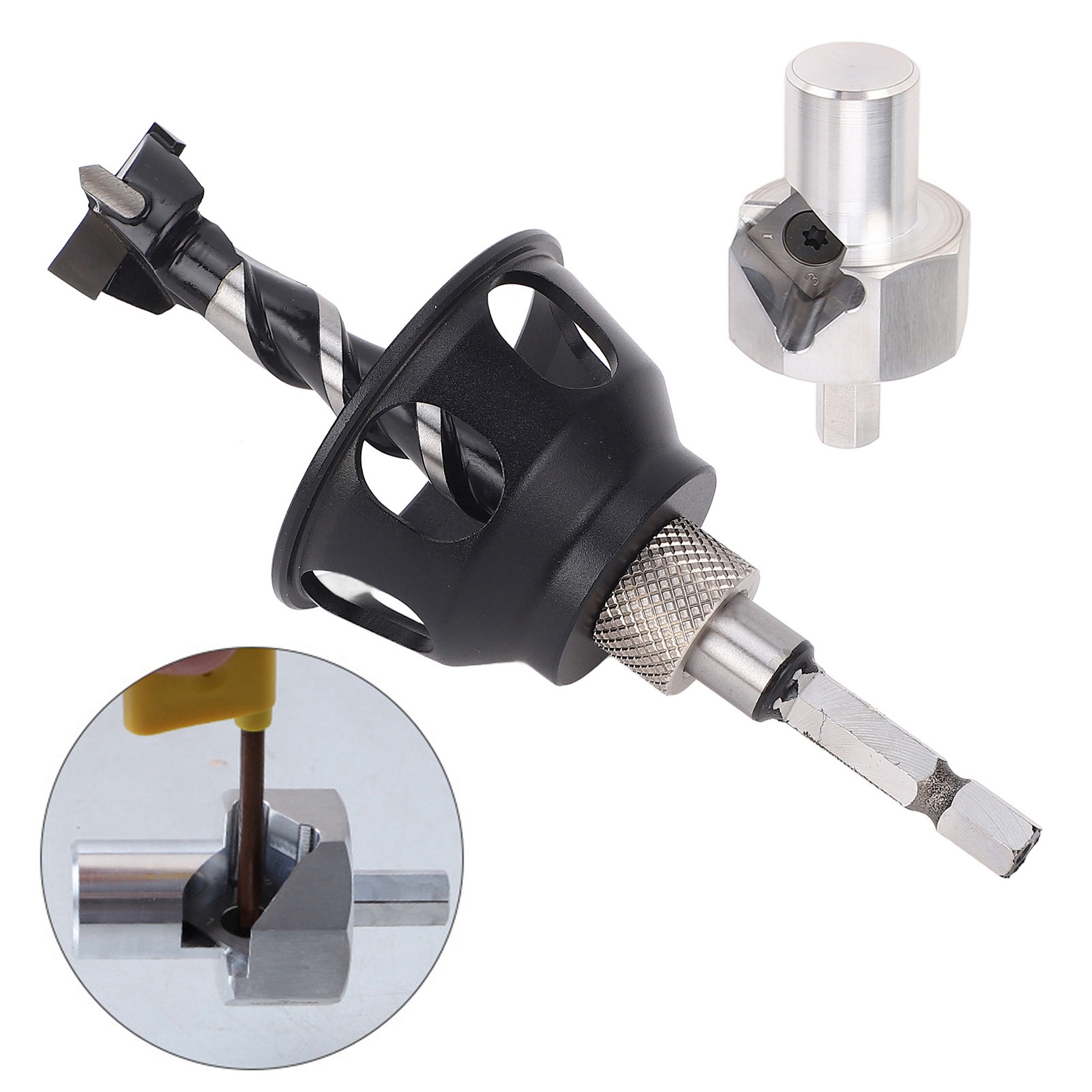 19mm垂直打孔定位器套装 铝合金狗洞榫孔加工工具 含钻头毛刺修边器 精准直角钻孔导向