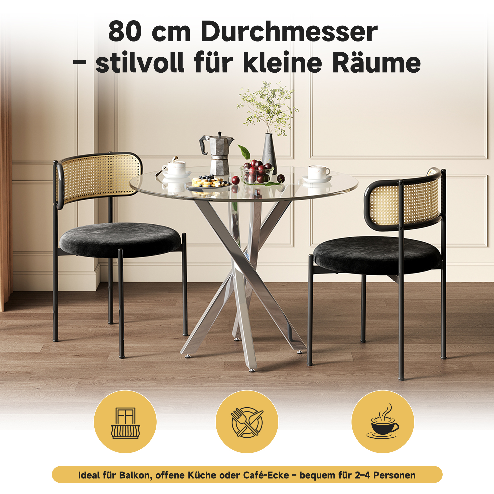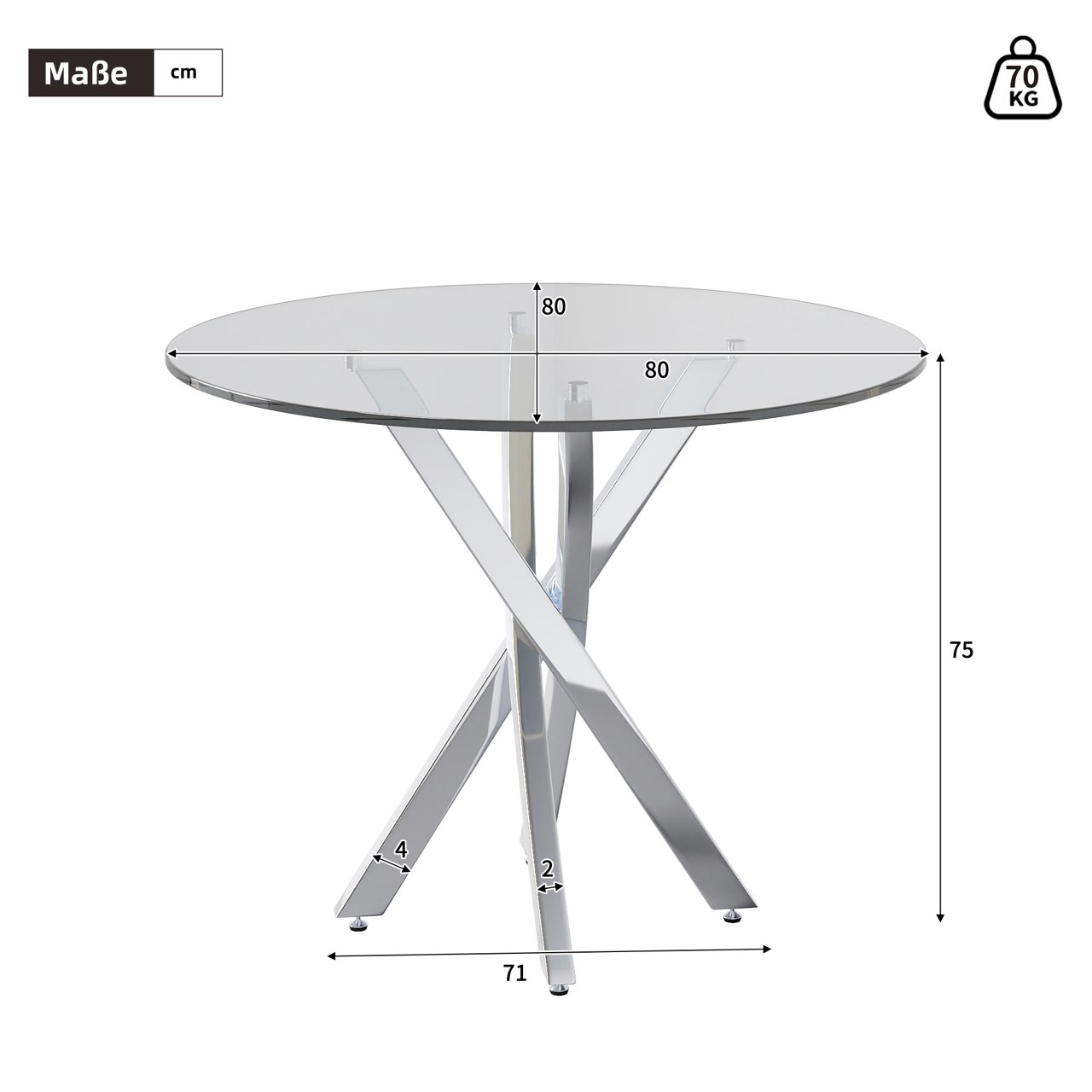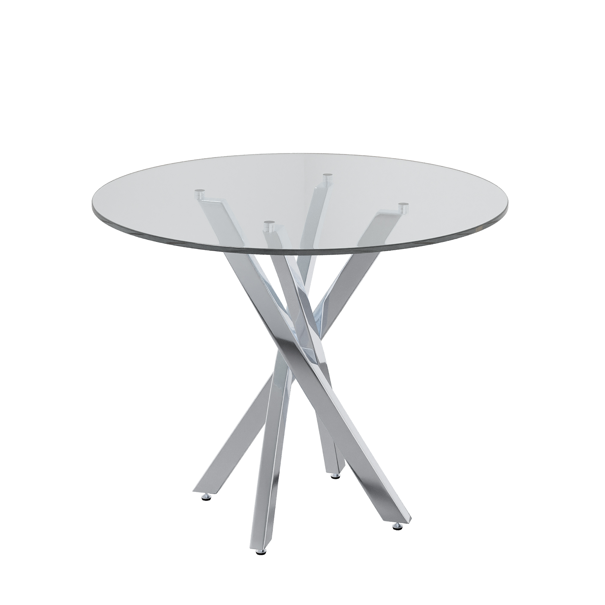 圆形钢化玻璃餐桌 银色交叉底座现代简约 小户型家用饭桌 直径80cm休闲茶几