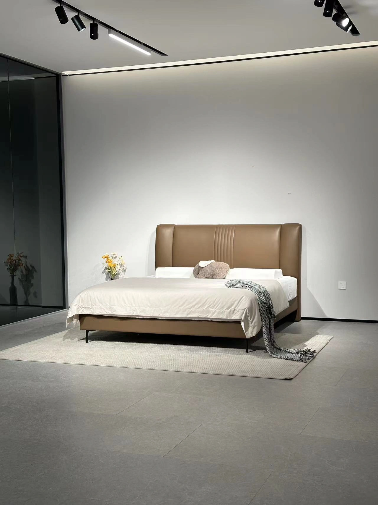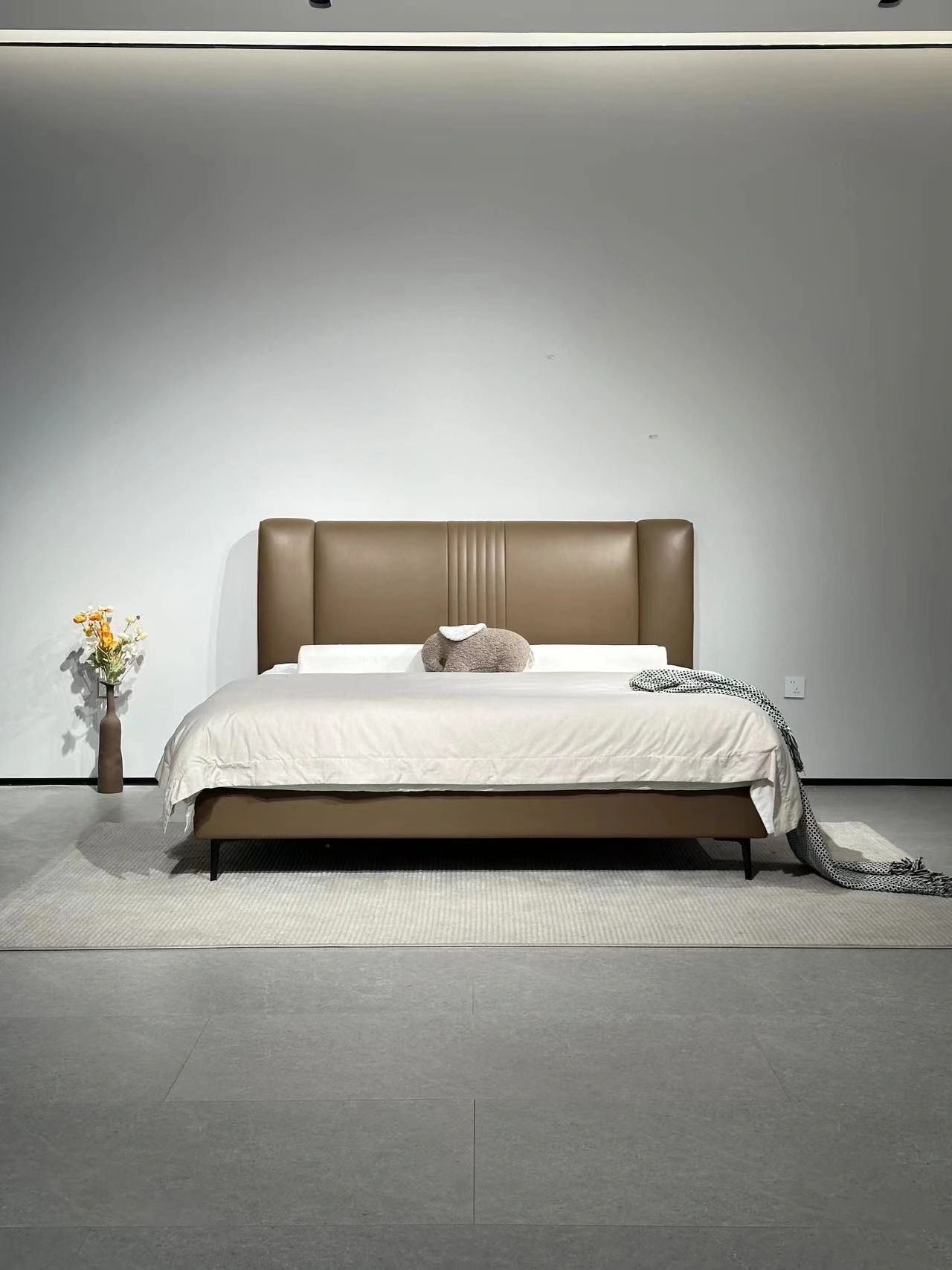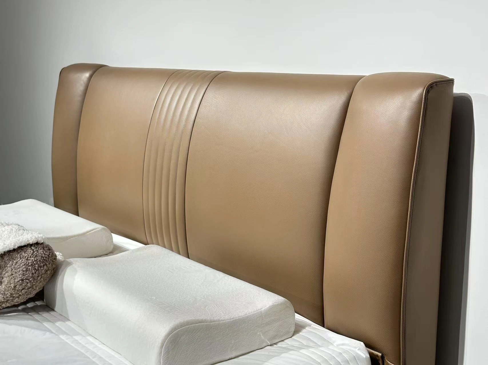 【样品预售】酋长床架 188x220cm 头层牛皮软包 纯海绵填充 实木松木框架 不含床垫 (适配22cm床垫)(honghui)