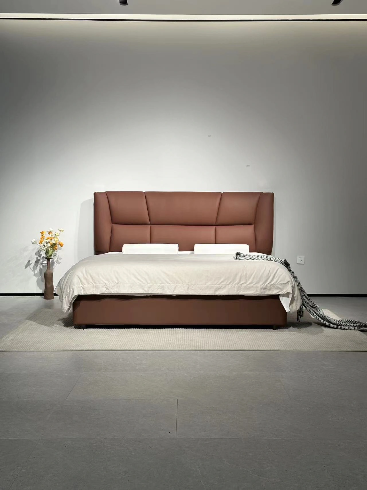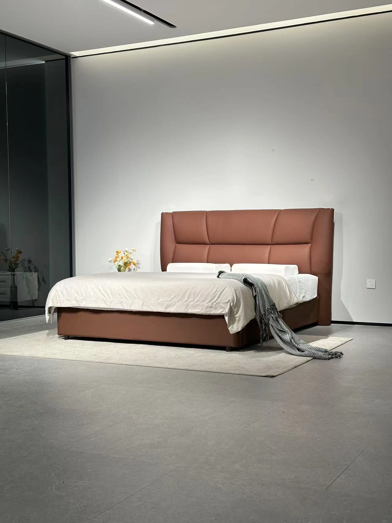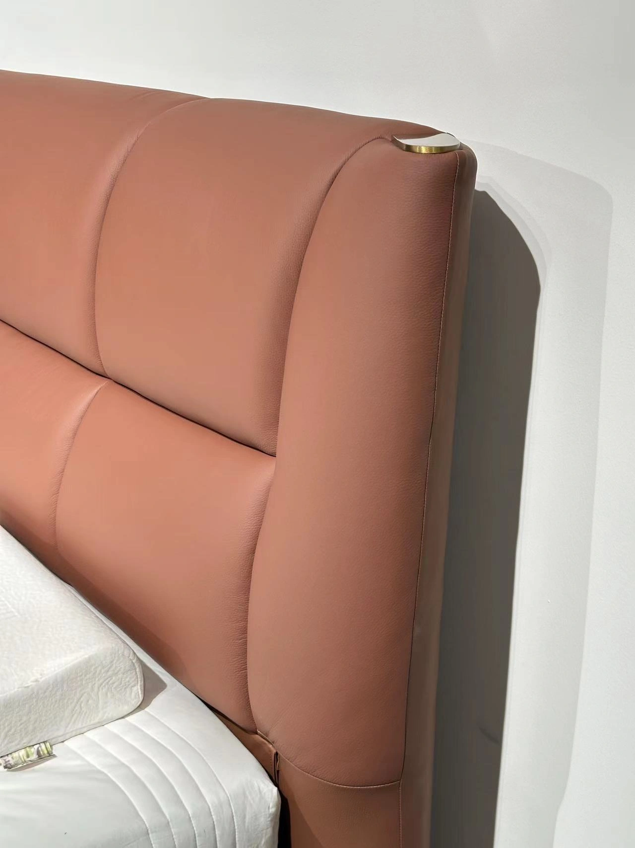 【样品预售】繁花床架 207x226cm 头层牛皮软包 纯海绵填充 实木松木框架 不含床垫 (适配22cm床垫 约122cm高)(honghui)