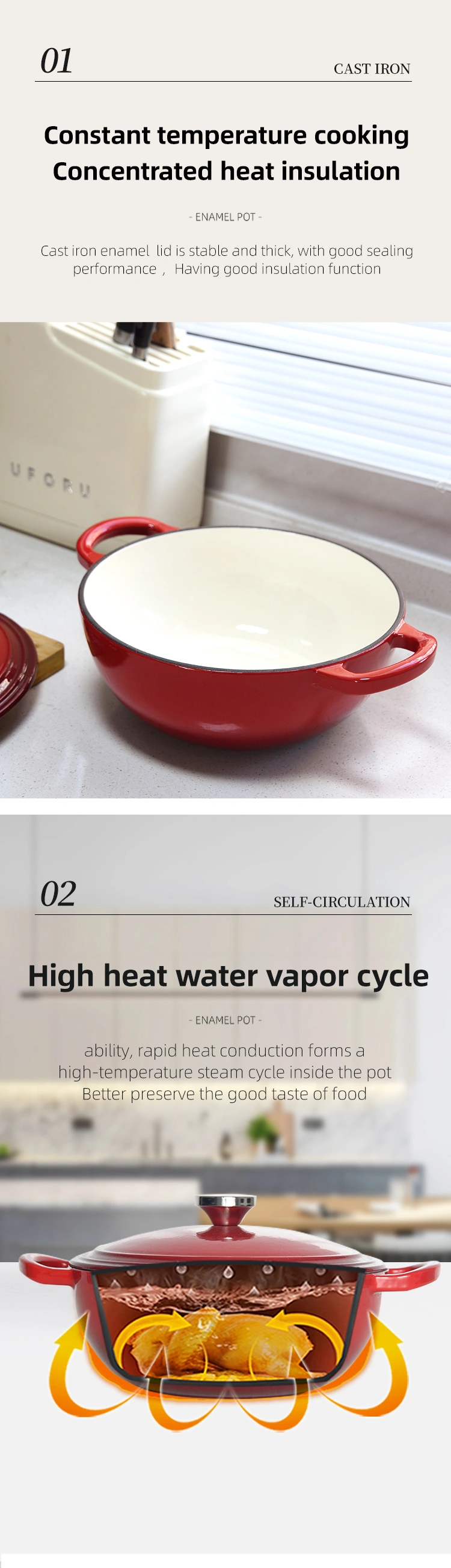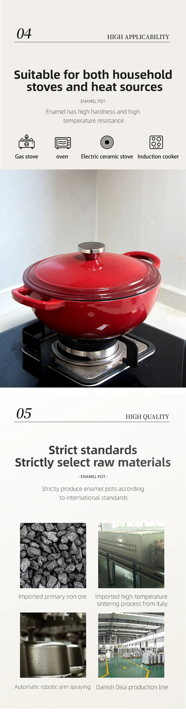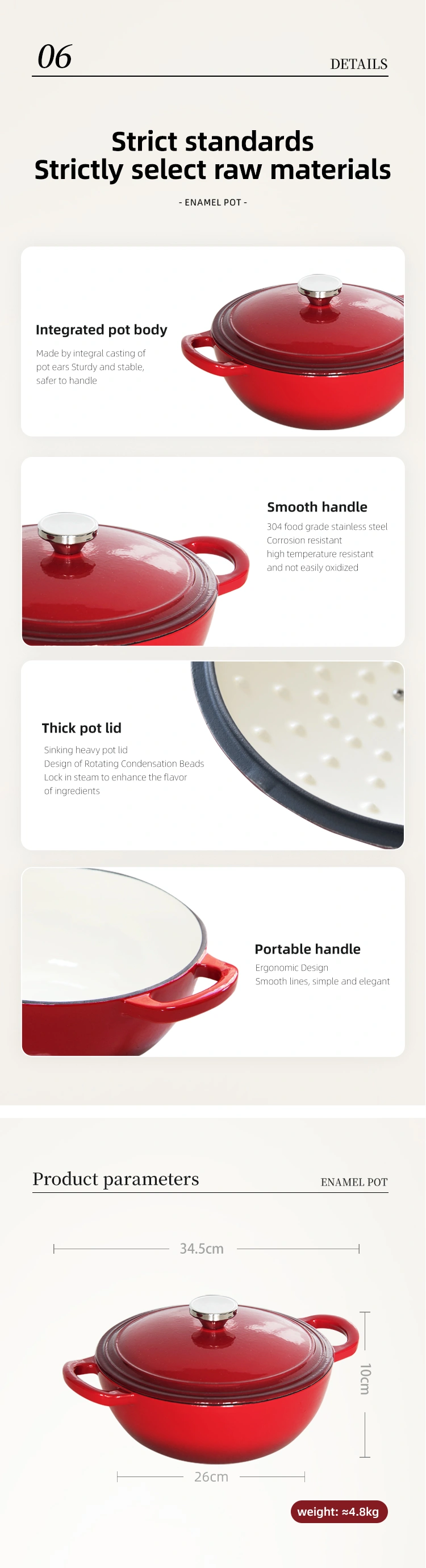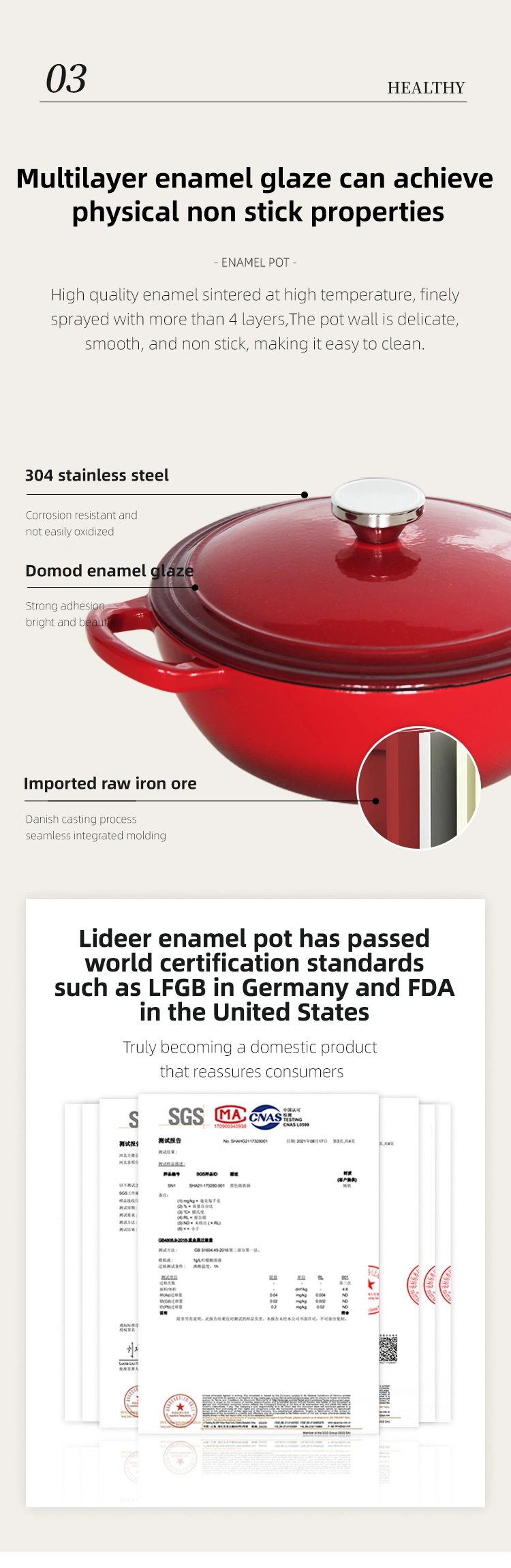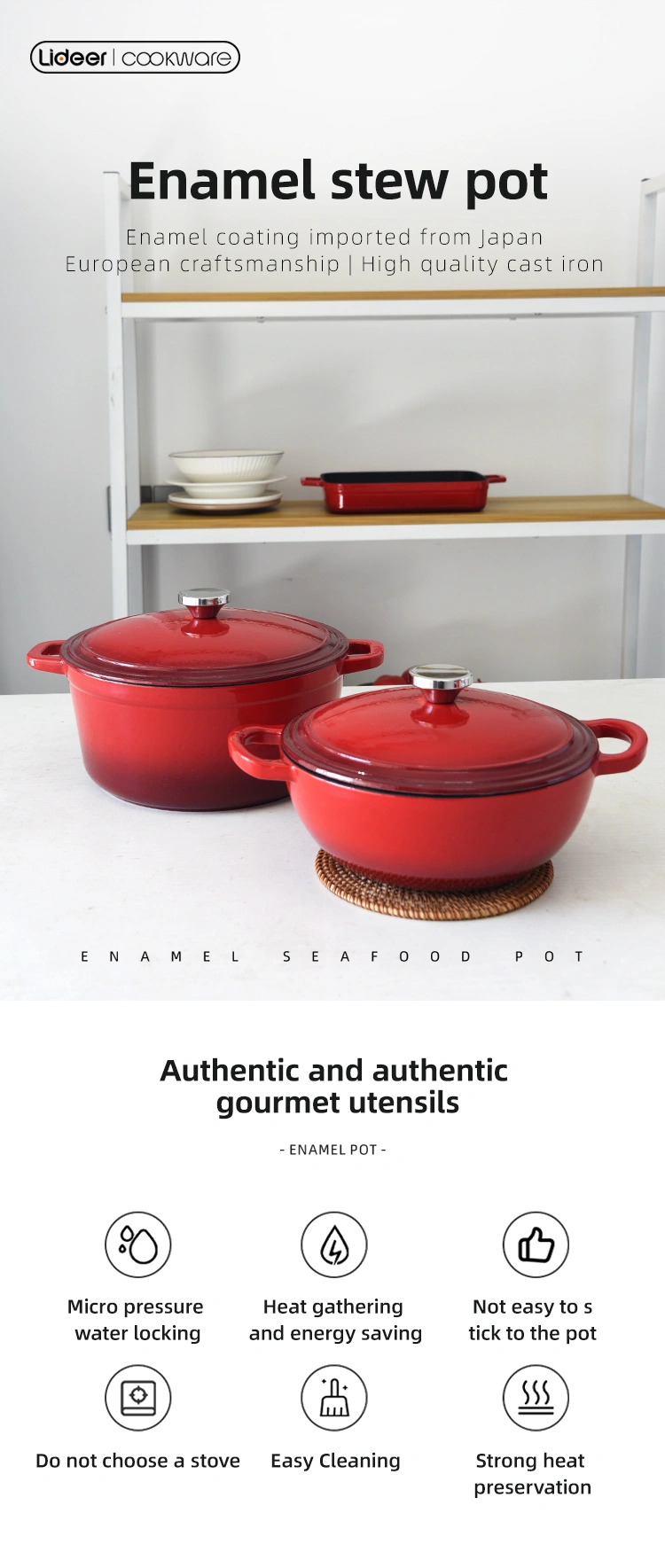 【样品预售】红色珐琅铸铁汤锅|26cm加厚底三层不粘釉|LFGB/FDA认证|电磁炉通用 lideer