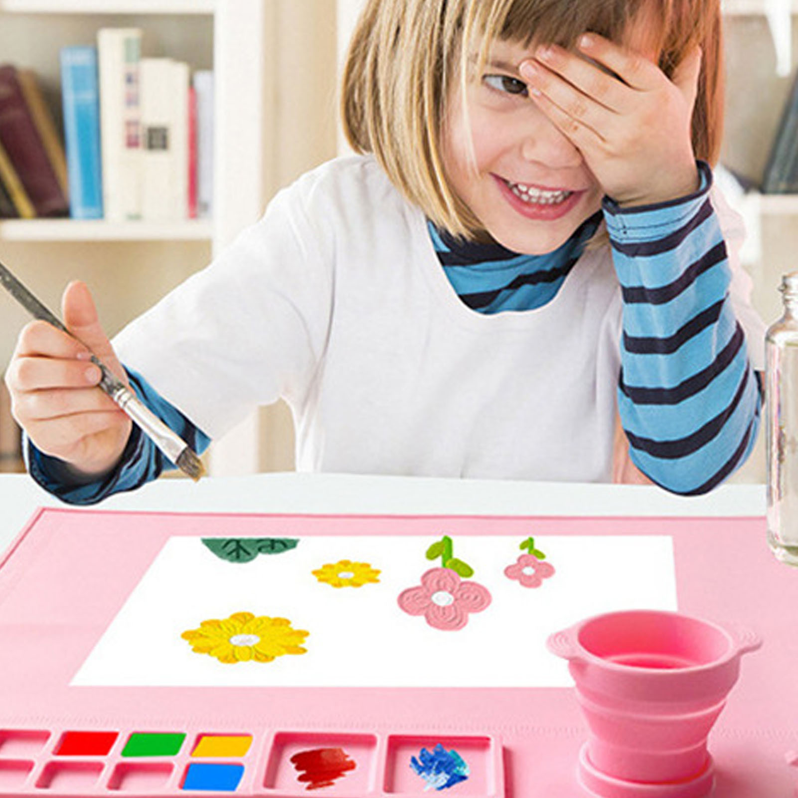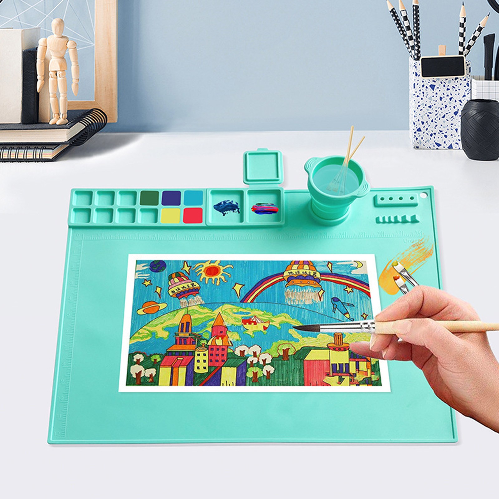 多功能涂鸦油画垫板儿童美术垫可擦水洗调色盘多功能硅胶画垫