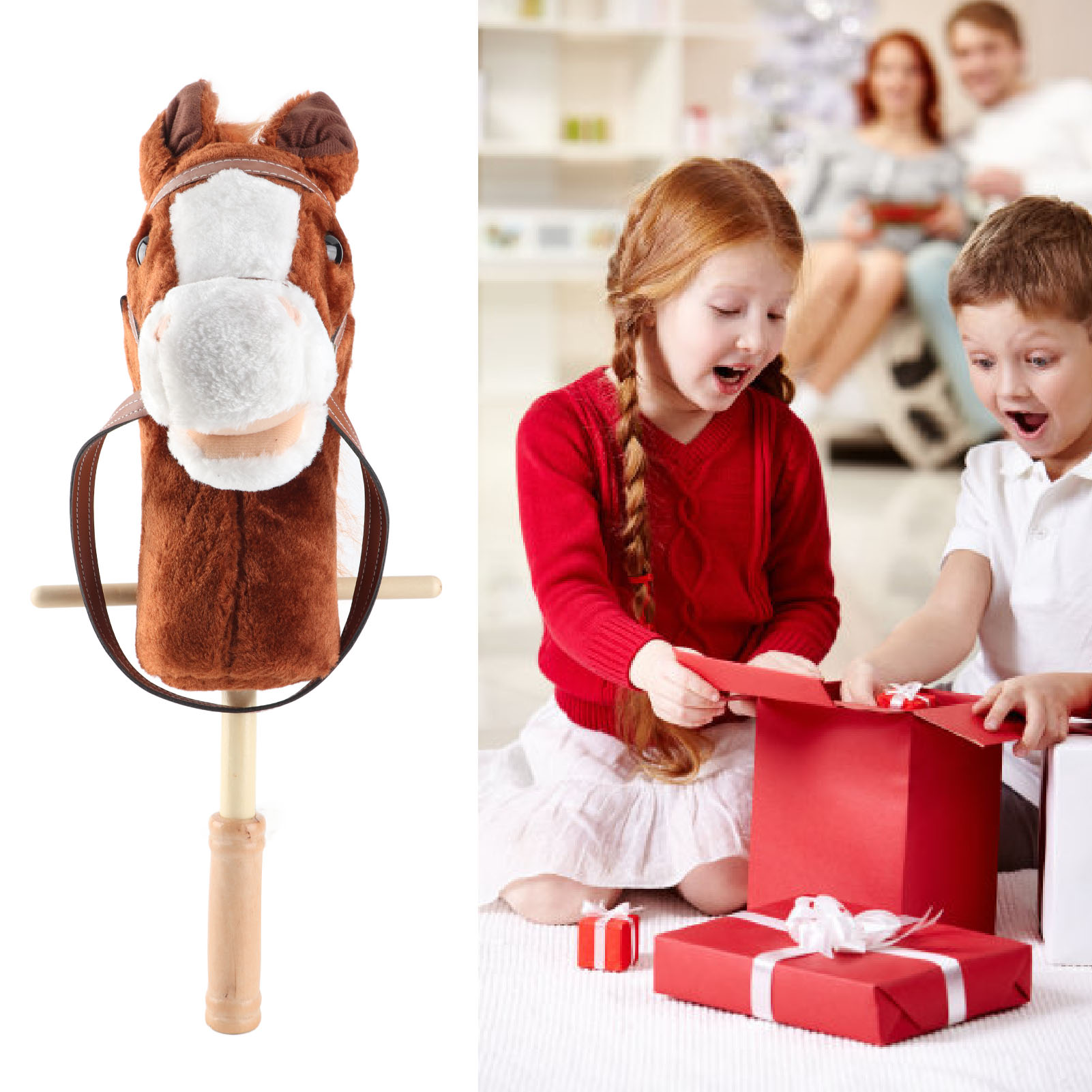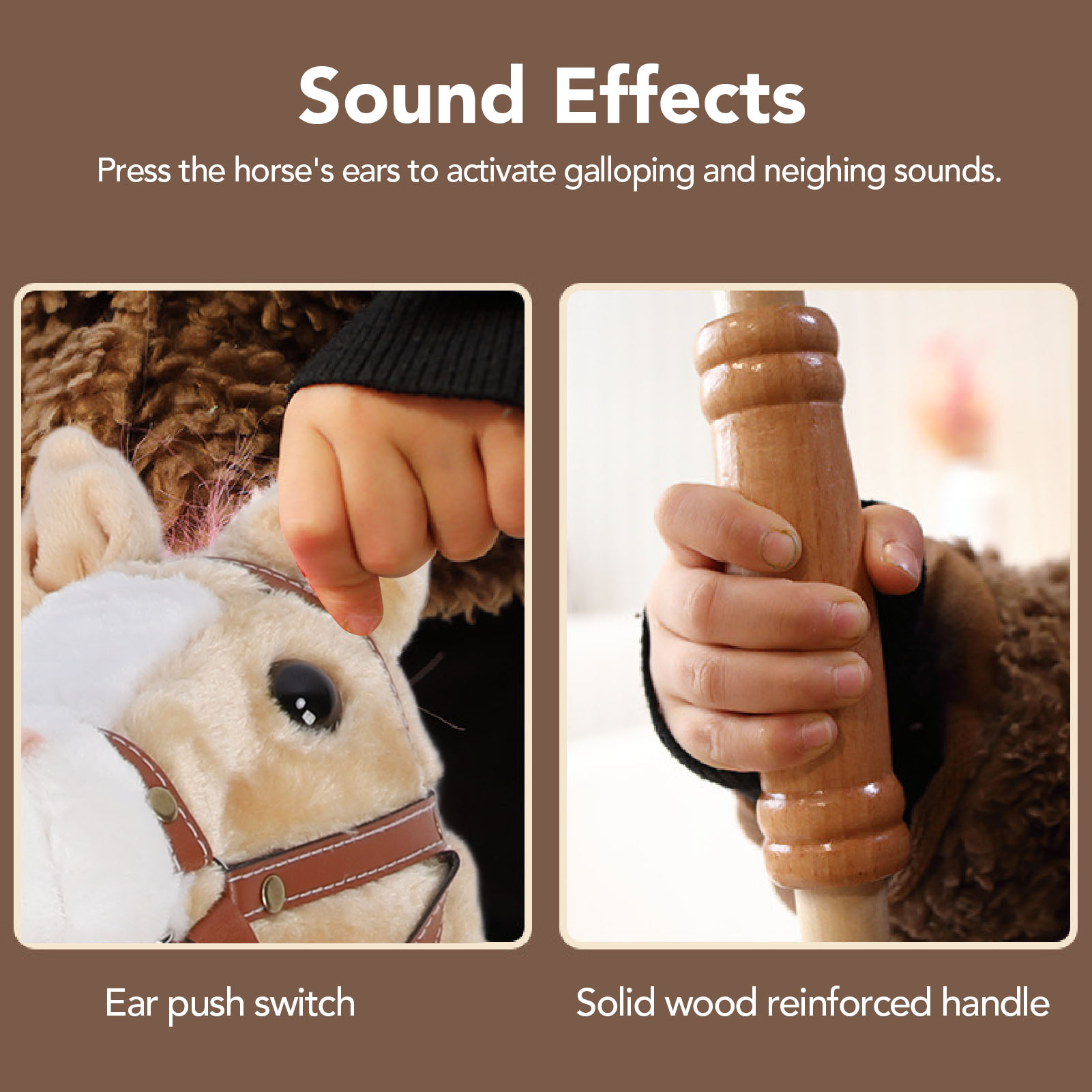 创意卡通儿童马头骑行棍 逼真音效木马棒马头棒毛绒玩具 卡通马头骑行棍仿真小马 带滚轮带加厚抓手马头玩具