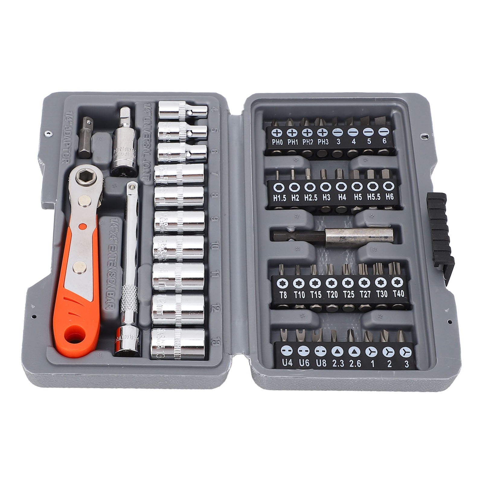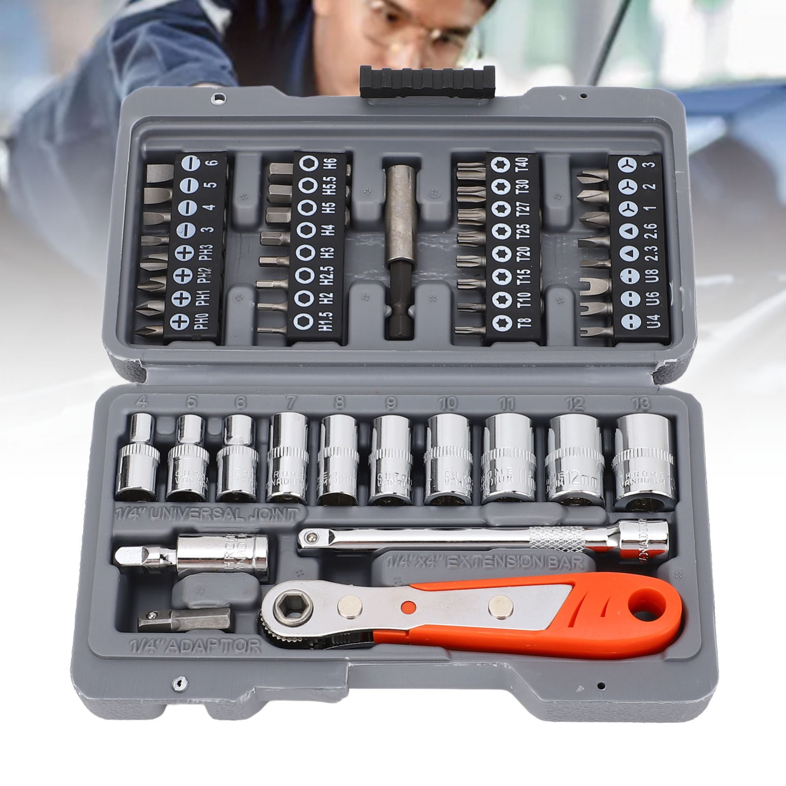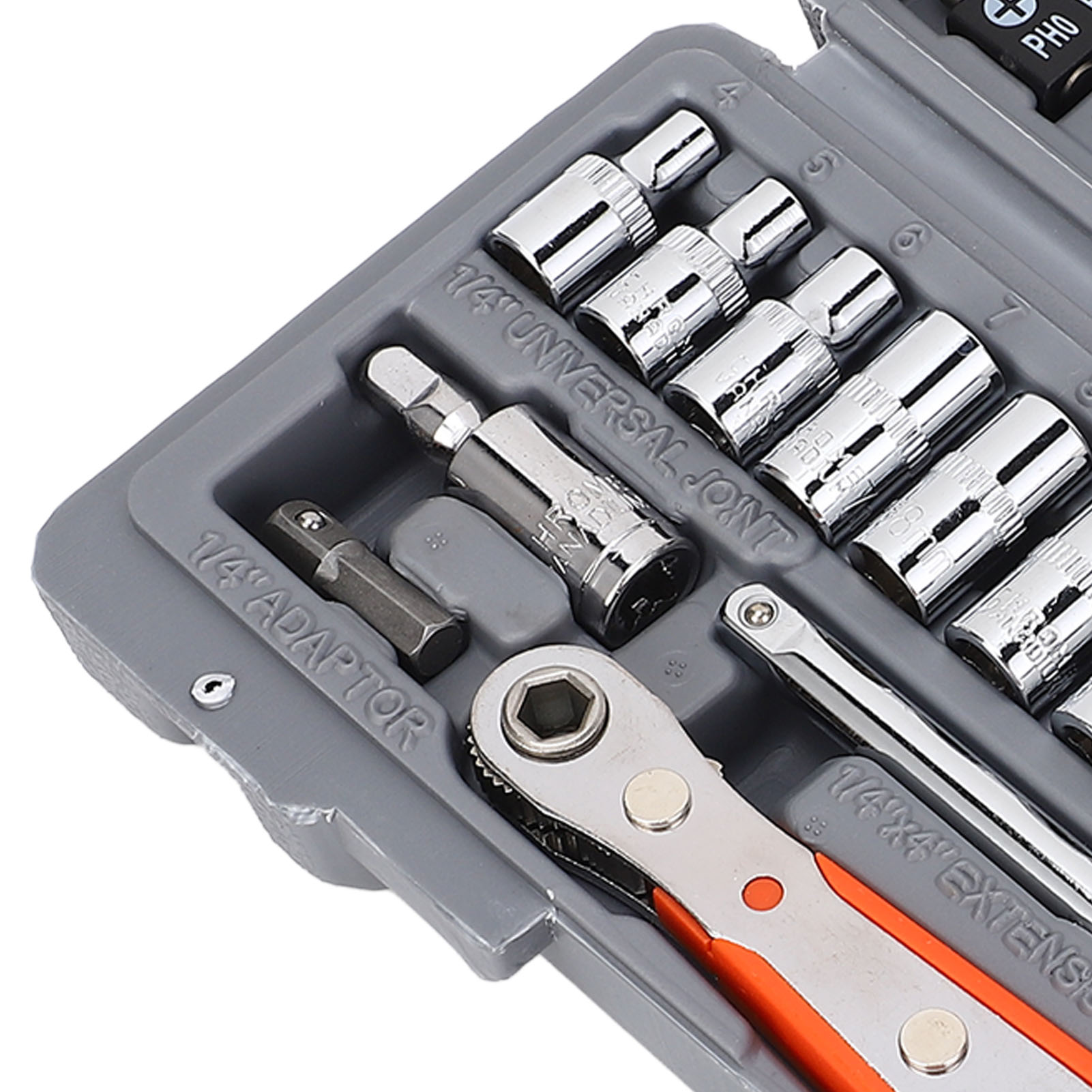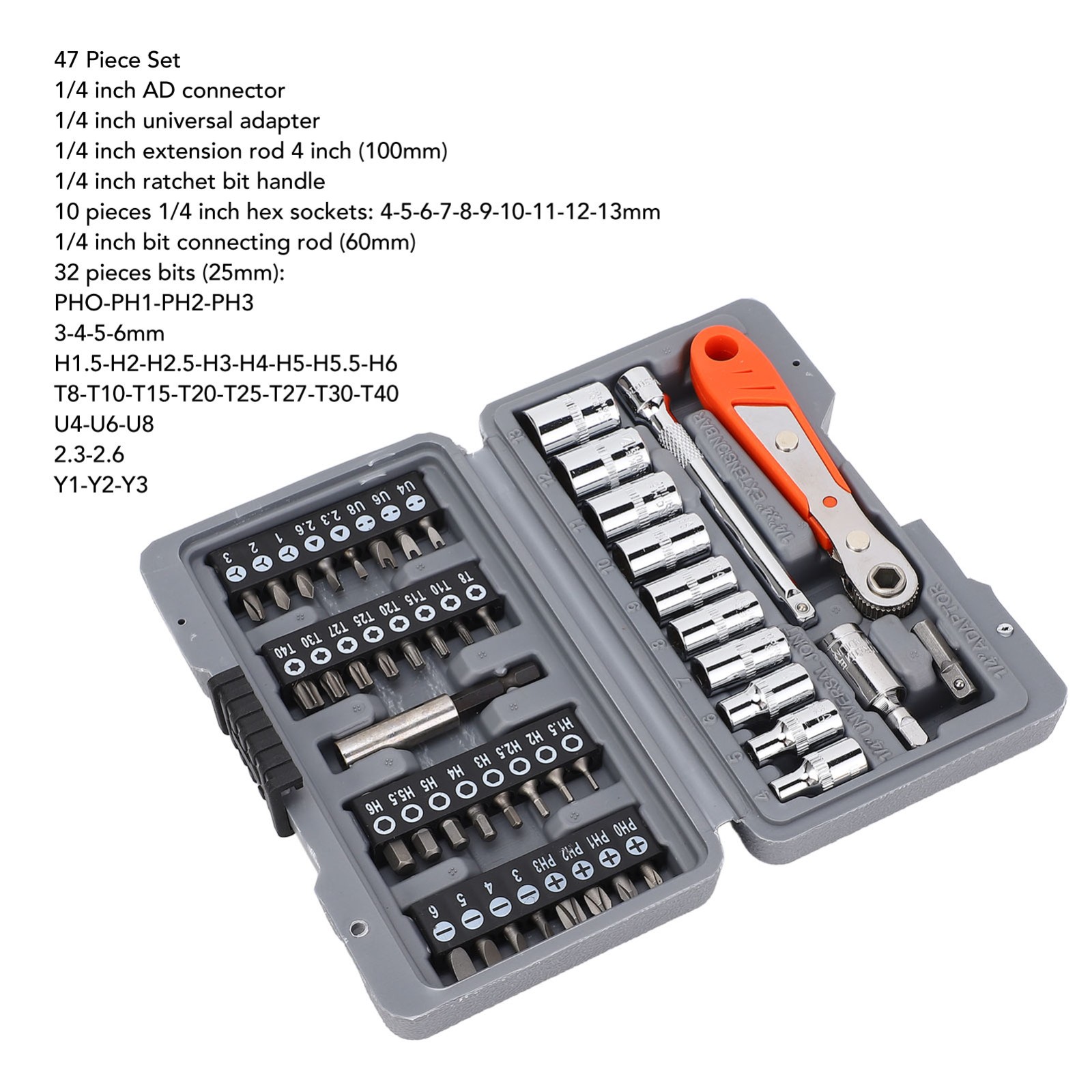 47件套小飞套筒批头快速棘轮手柄组合套装 1/4"套筒批头套装 一十字梅花螺丝批改锥起子工具 YM1011240281011 G