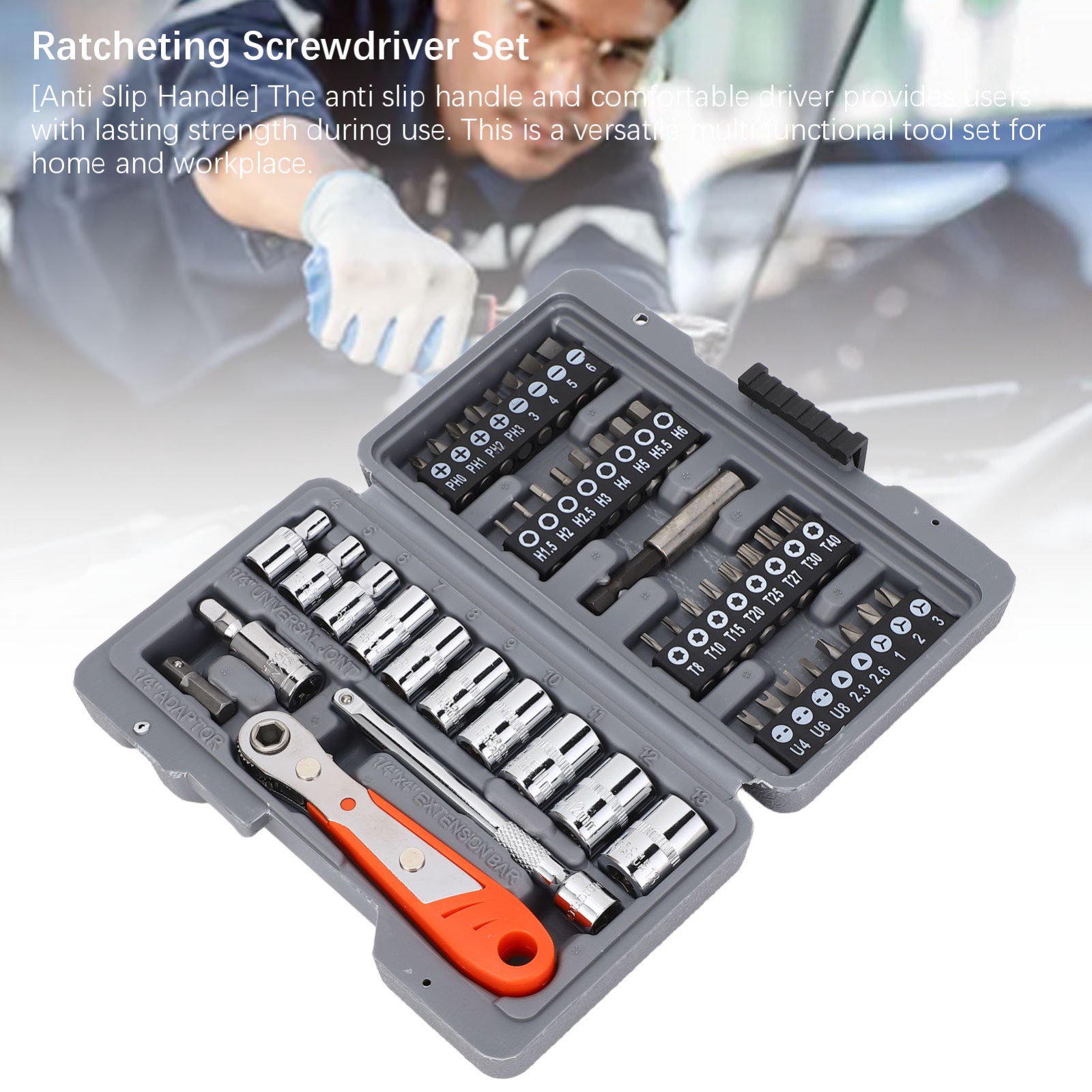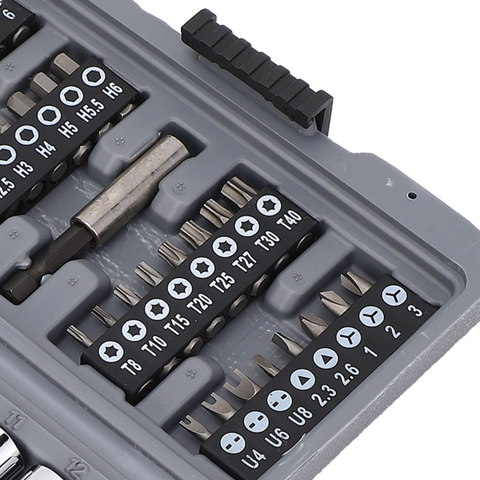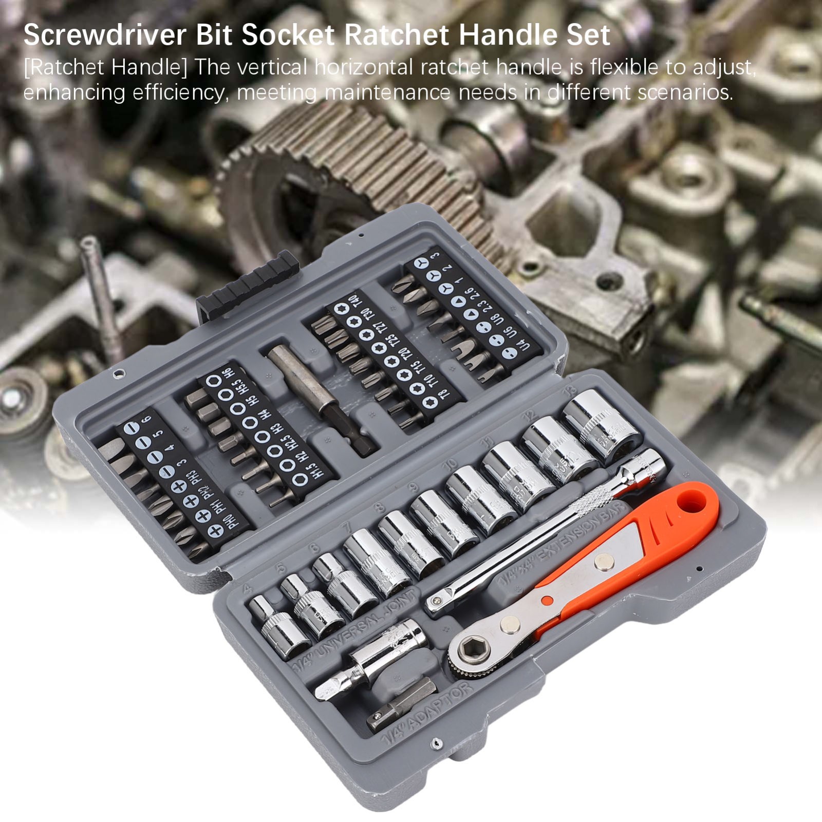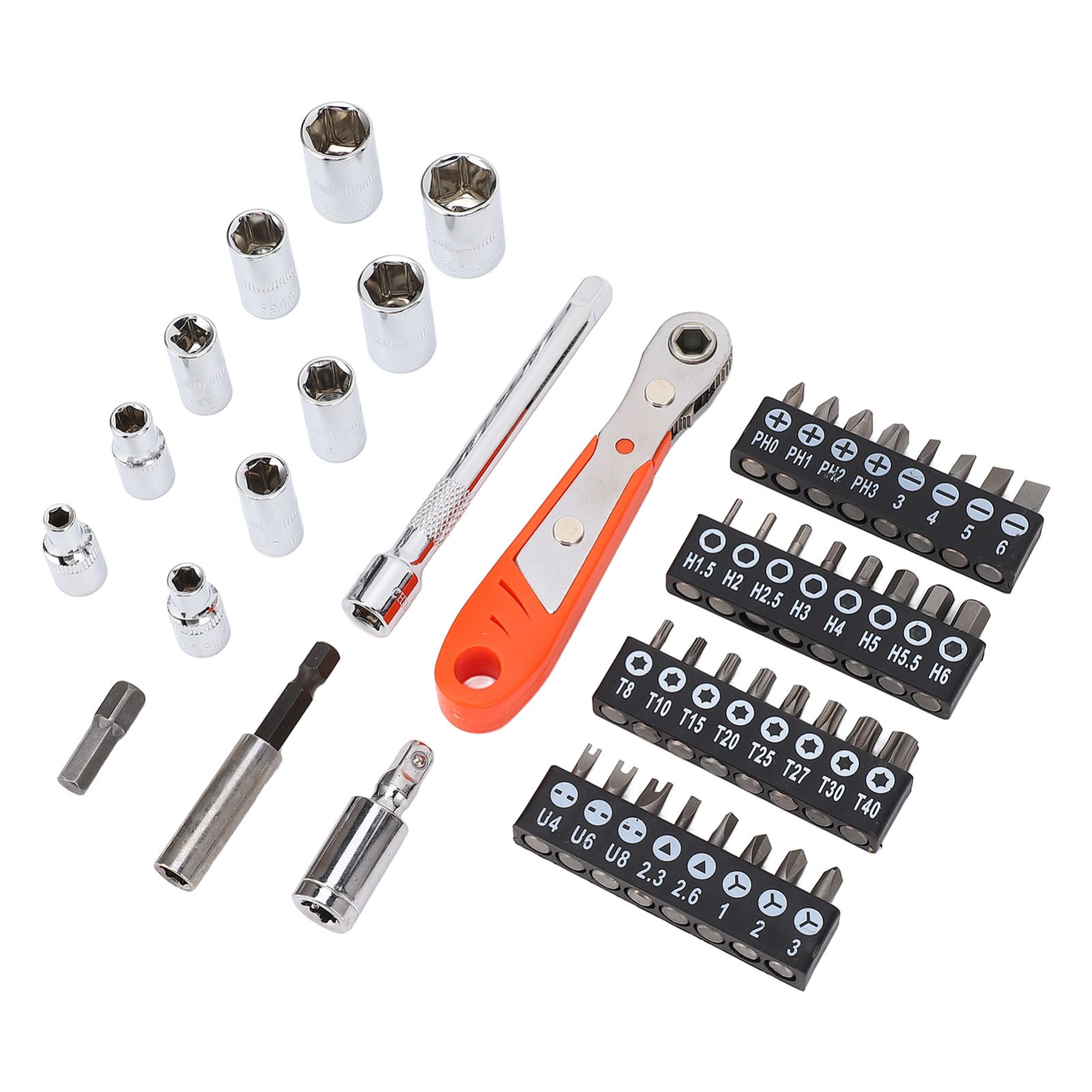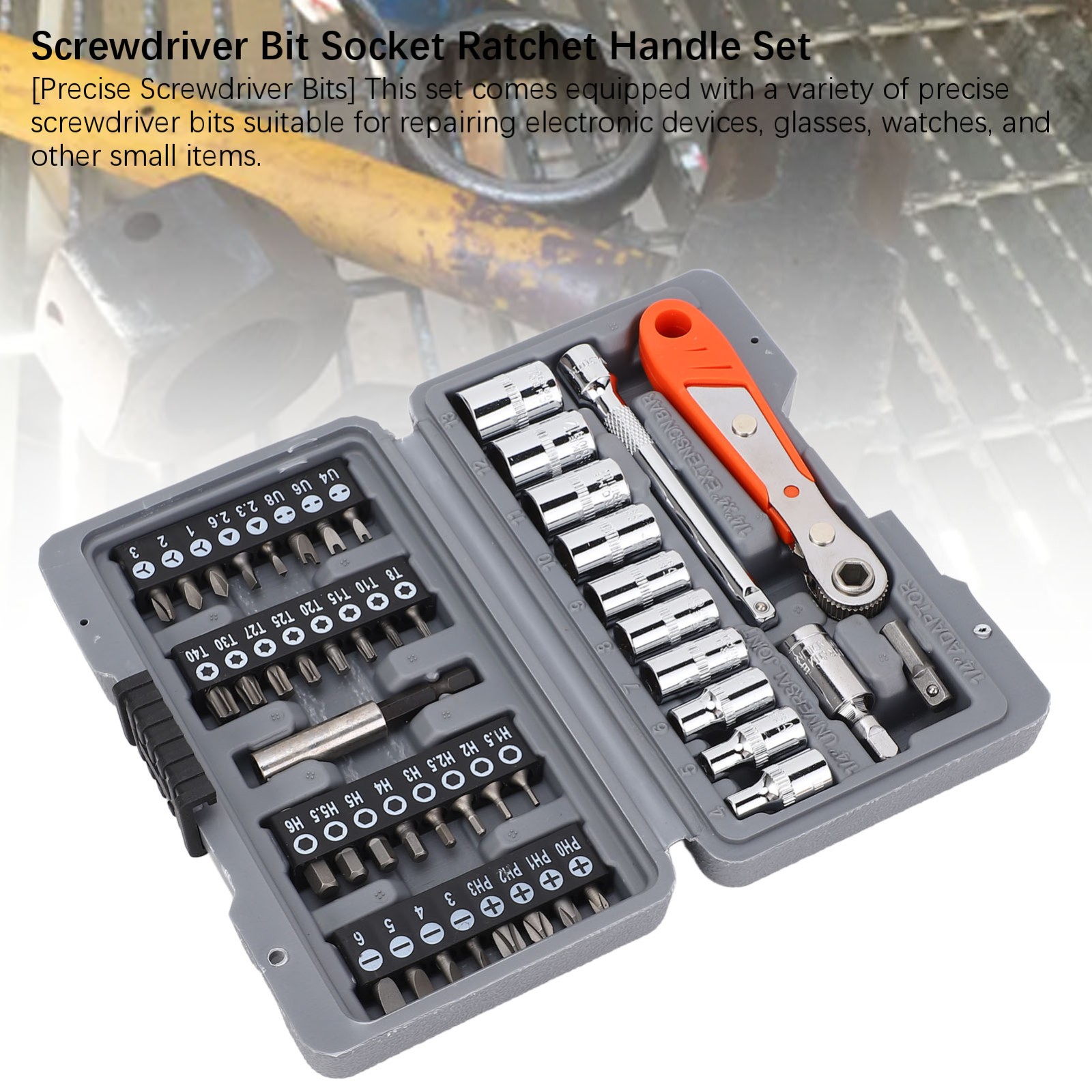 47件套小飞套筒批头快速棘轮手柄组合套装 1/4"套筒批头套装 一十字梅花螺丝批改锥起子工具 YM1011240281011 G