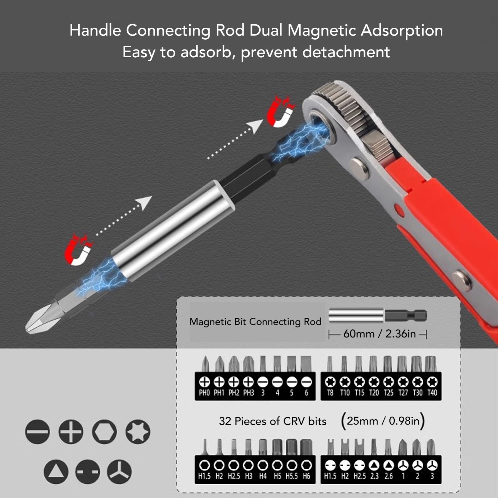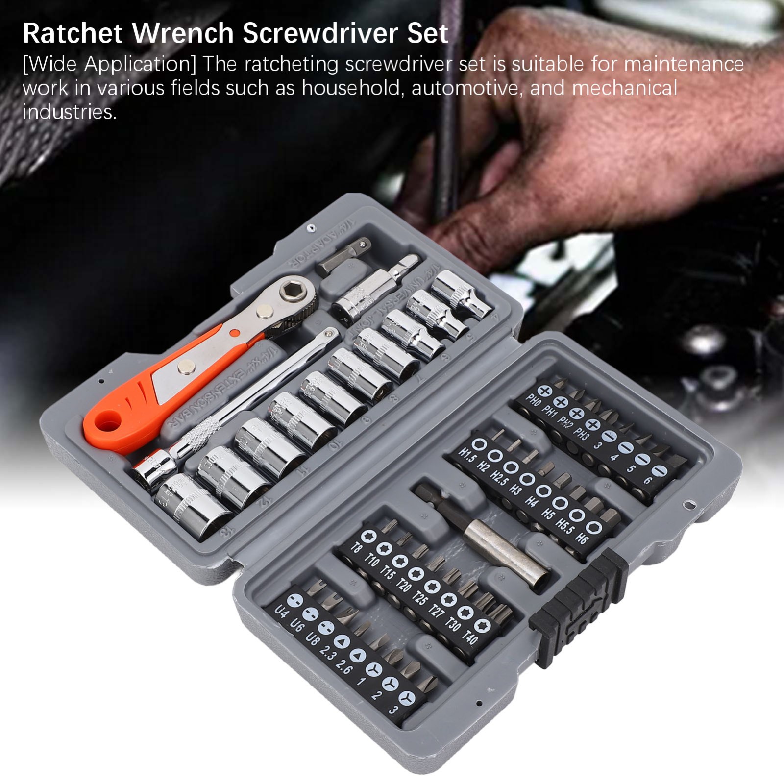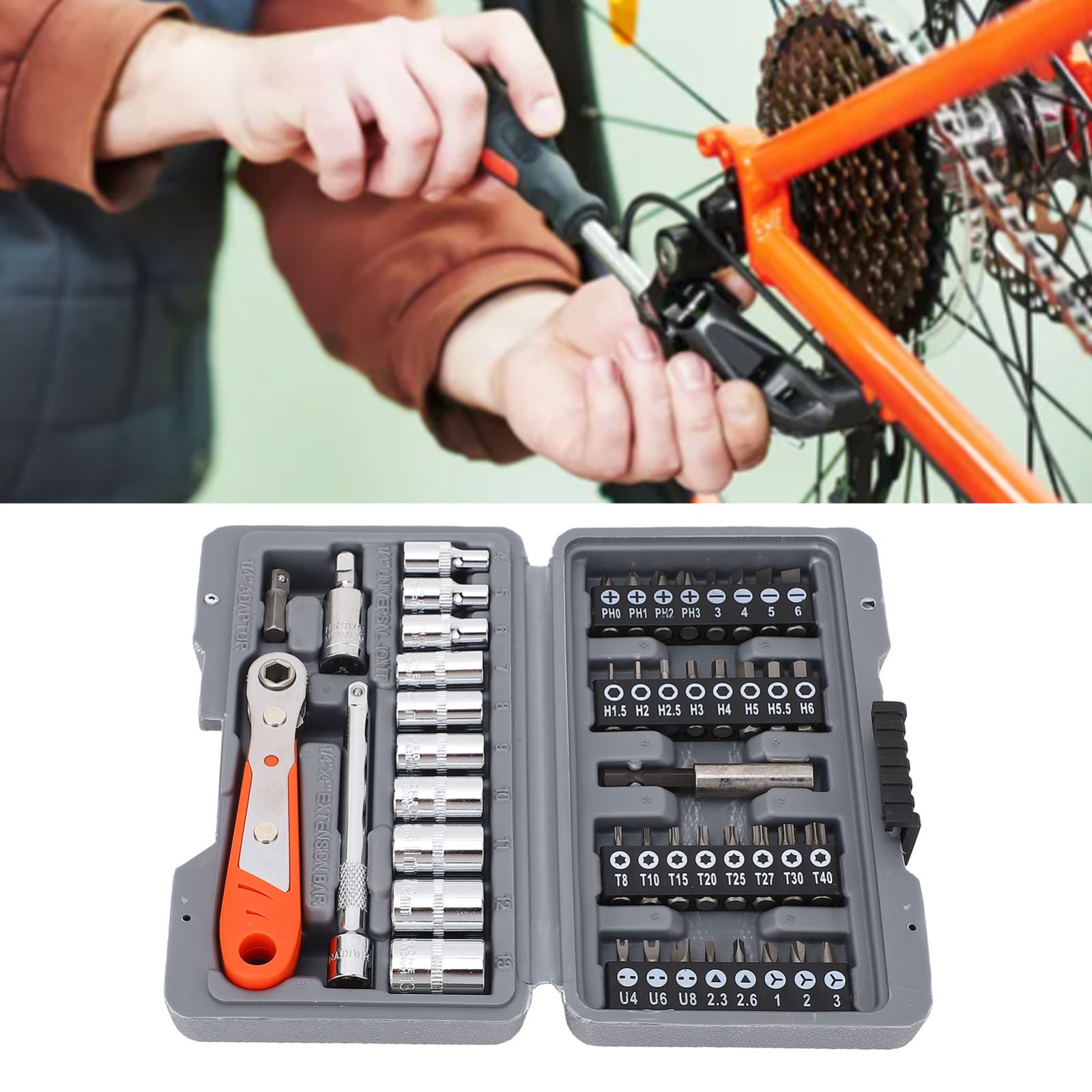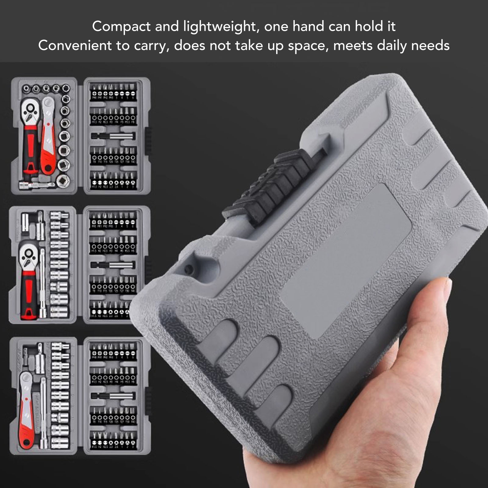 47件套小飞套筒批头快速棘轮手柄组合套装 1/4"套筒批头套装 一十字梅花螺丝批改锥起子工具 YM1011240281011 G