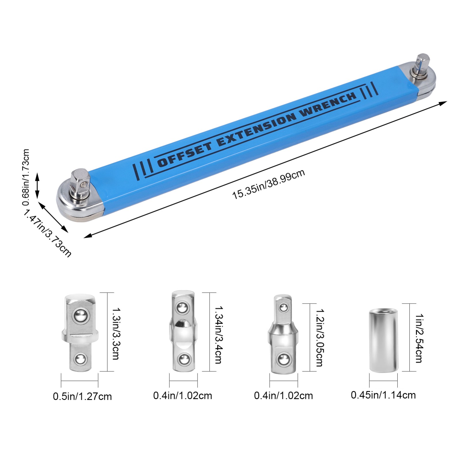 多功能延长扳手棘轮延长扳手两用扳手 带1/2”、1/4”和3/8”传动适配器的多功能加长扳手 YM1011240195711 K