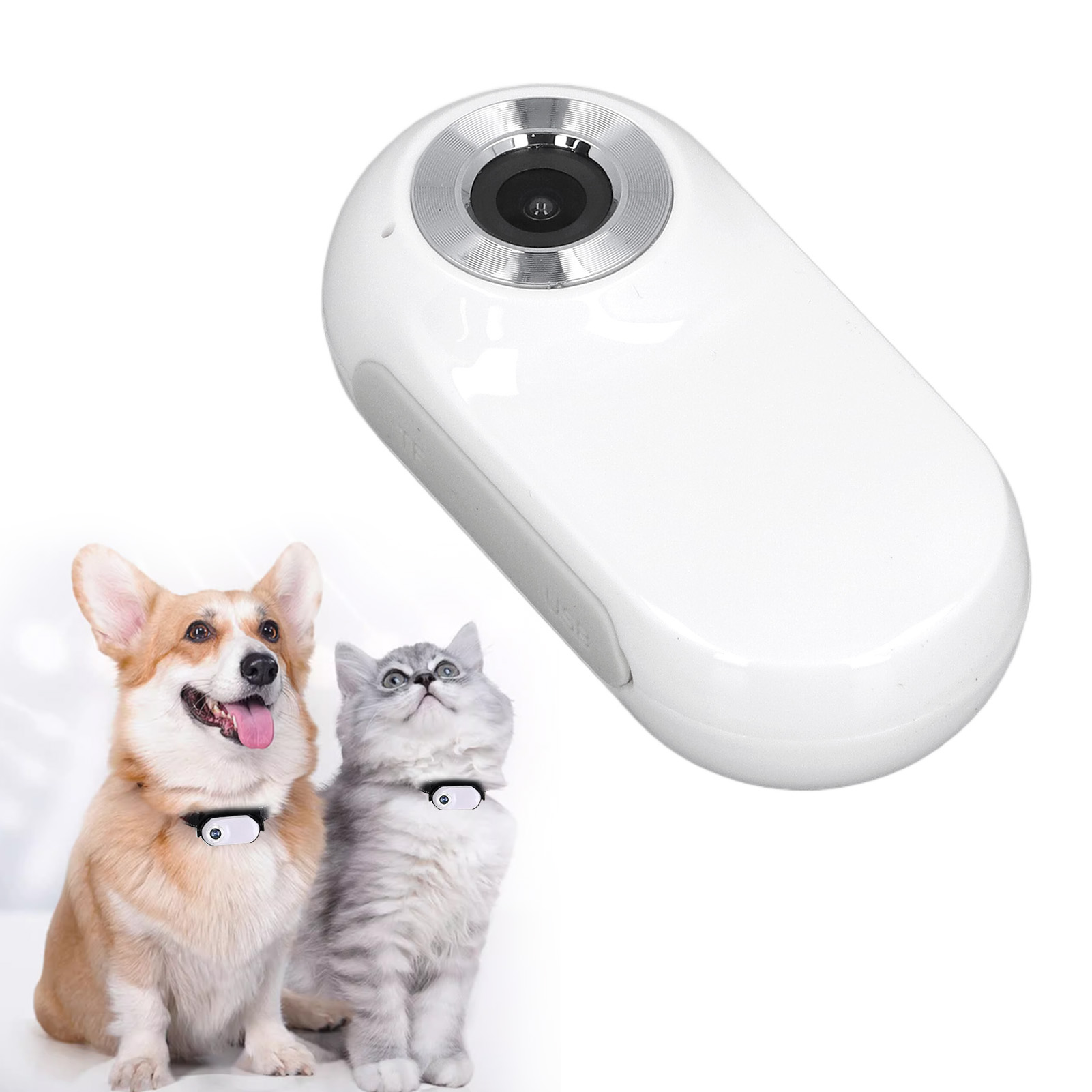 宠物项圈摄像头 室内/室外宠物摄像头 项圈宠物相机运动记录仪 高清磁吸拇指运动相机 户外骑行摄像机(带内置电池发货)(不带TF卡) 白色