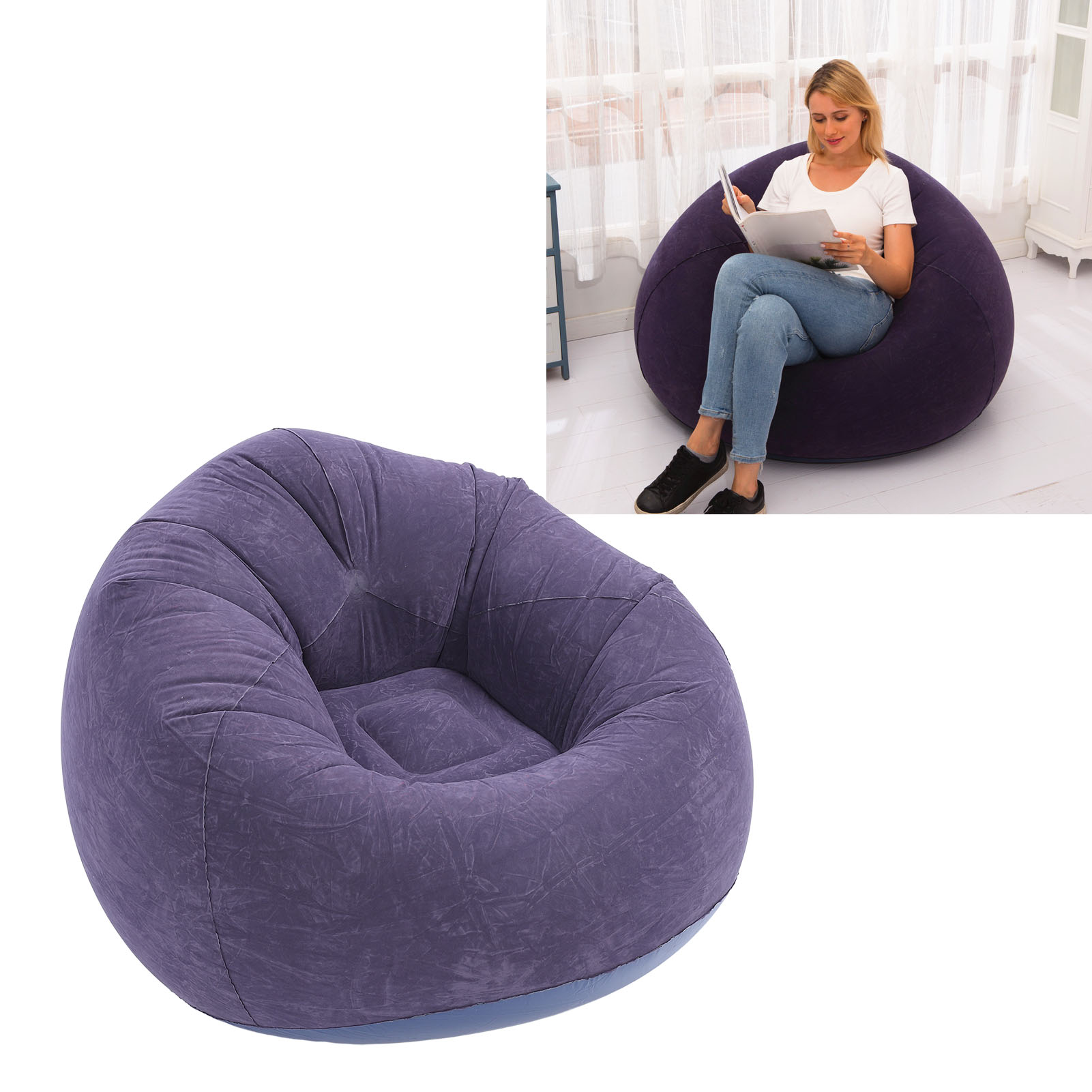 充气懒人植绒沙发简约沙发 室内客厅卧室躺椅沙发躺椅 深蓝色-单人植绒充气沙发 YM3116240012411 G